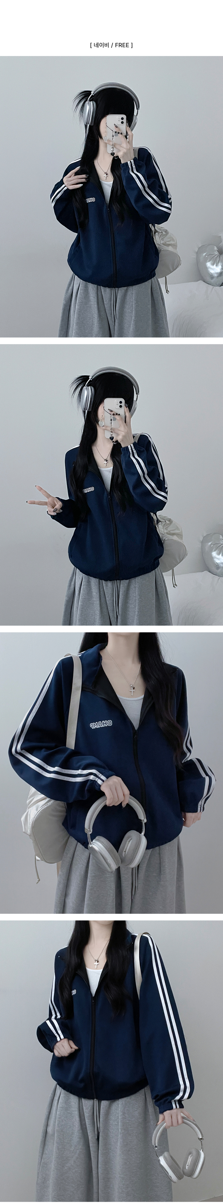 SJP17719 챔프레터링라인트랙밴딩져지집업자켓