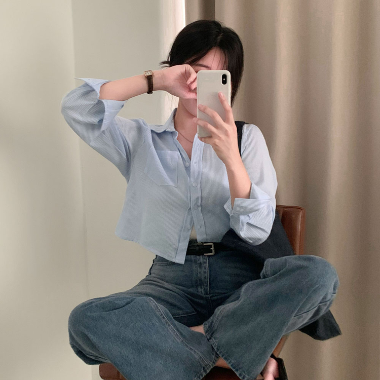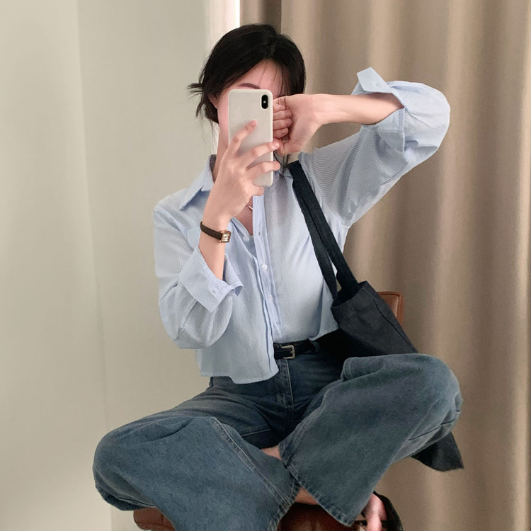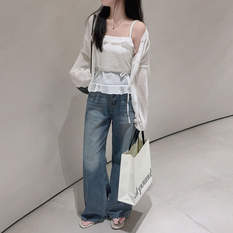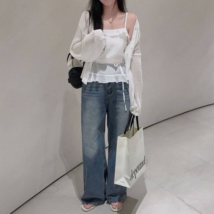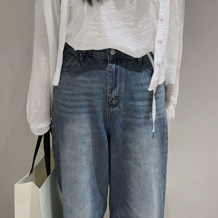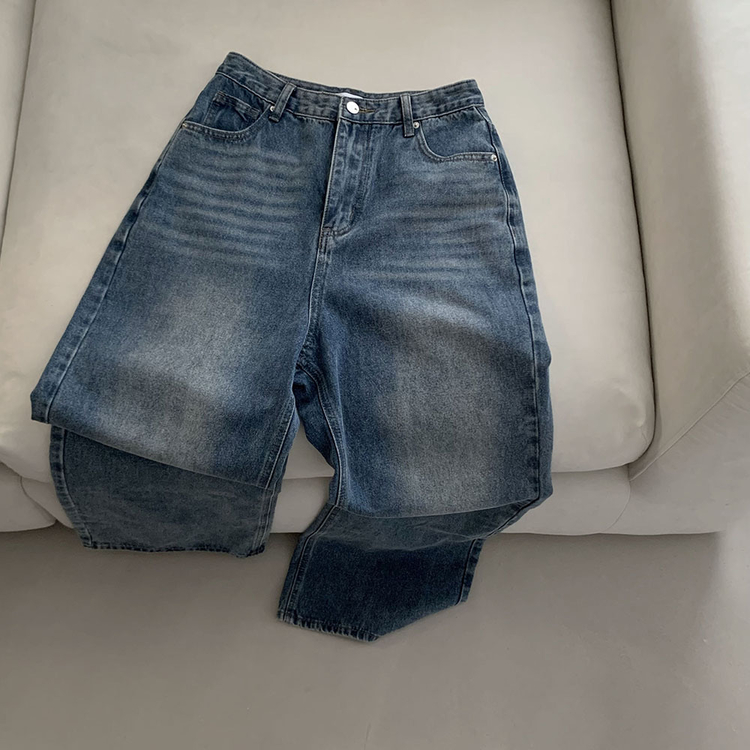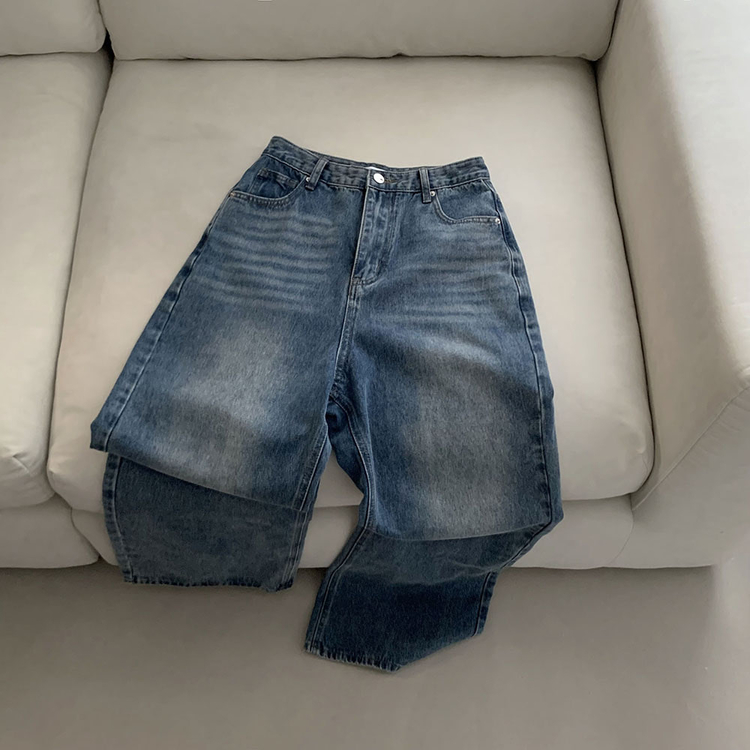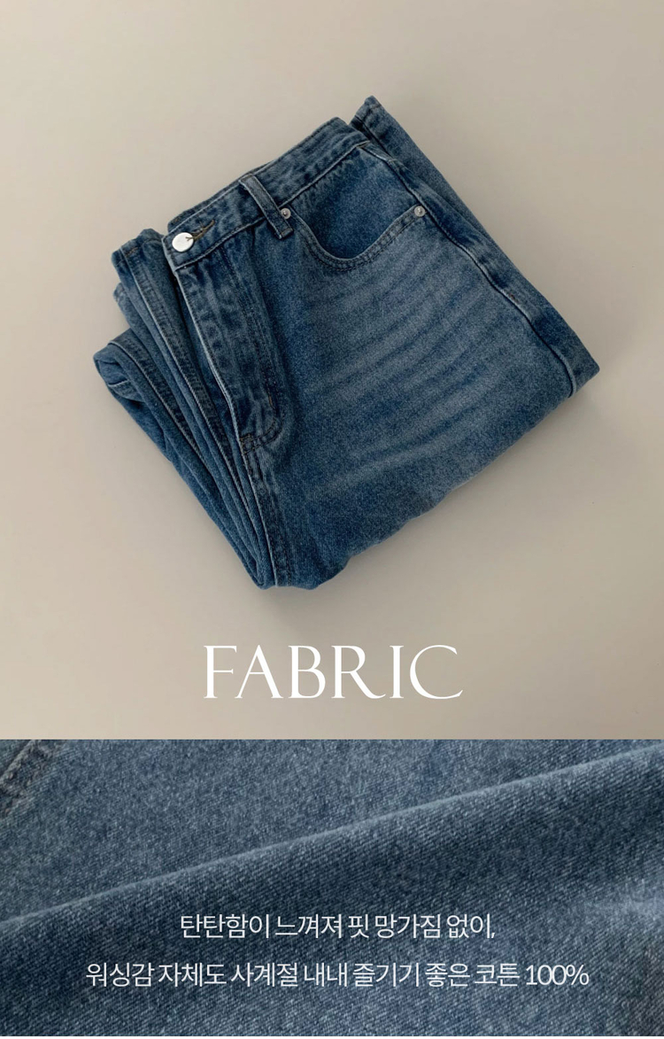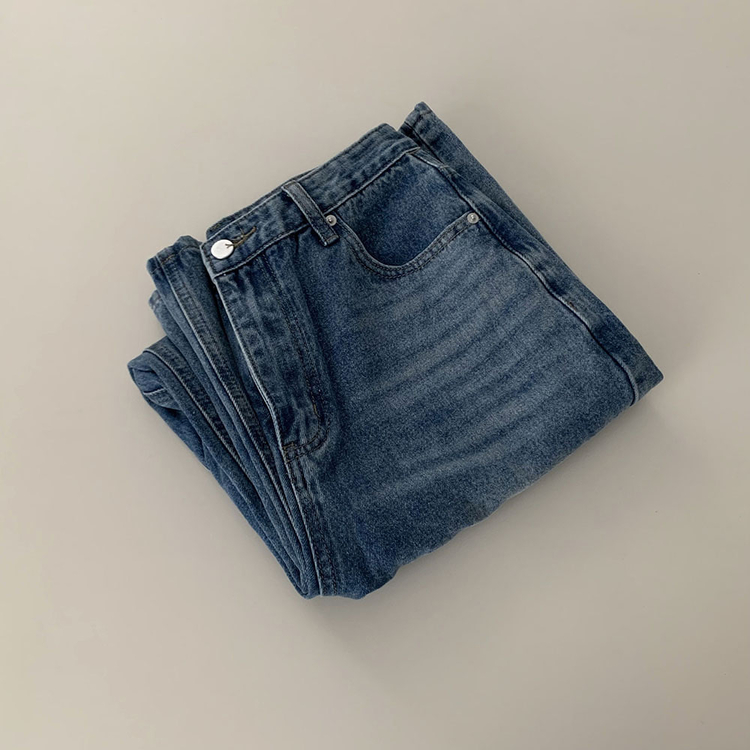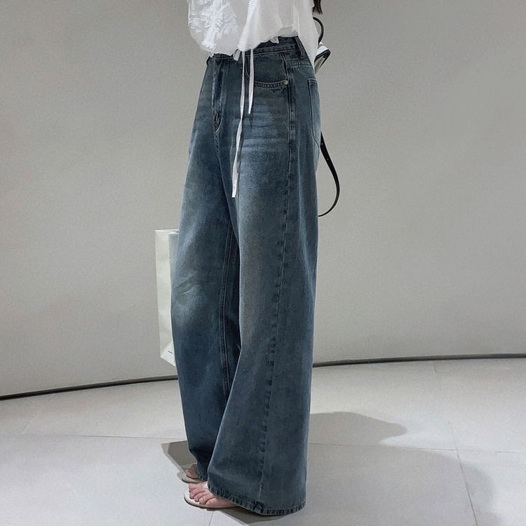 SJE12971 진정성 있는 데님캣워싱 중청 하이웨이스트 롱 와이드 데님팬츠