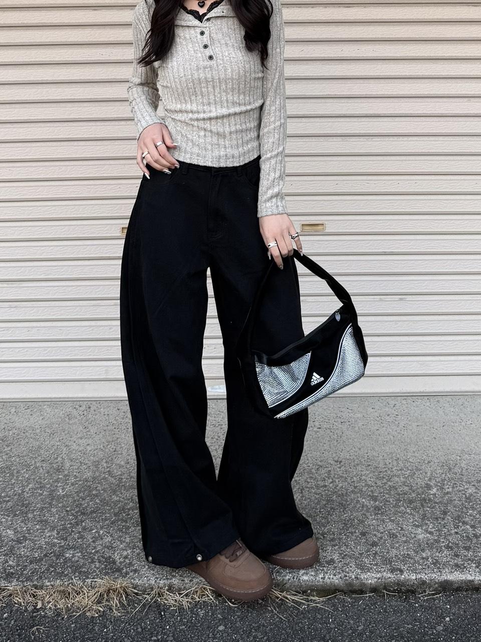 SPS36582 【기장별♥벌룬핏】밑단스냅 핀턱 와이드 코튼팬츠