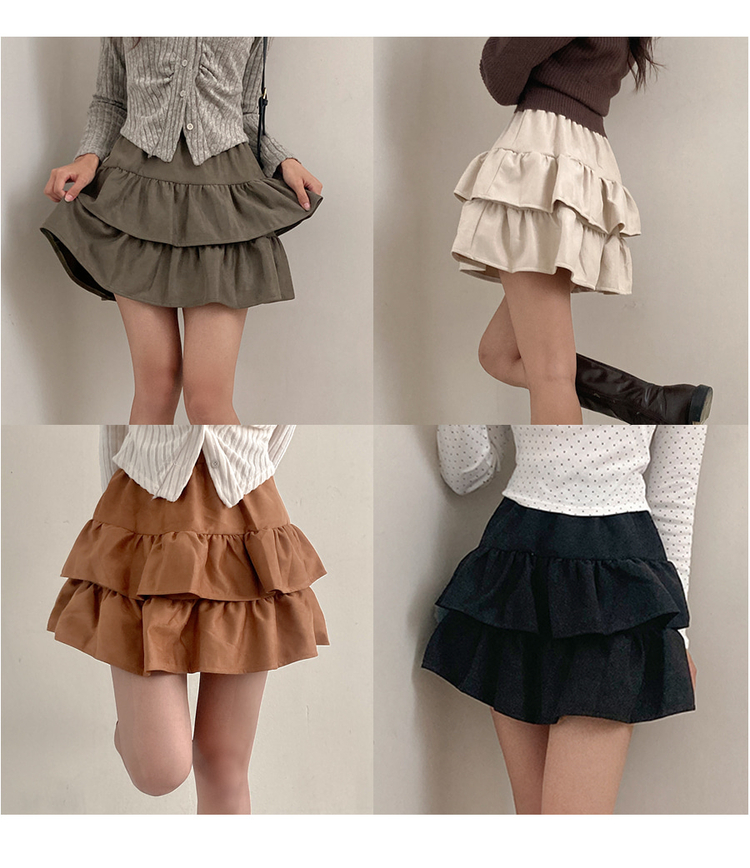 SSK24381 제인 스웨이드 캉캉 밴딩 미니 스커트
