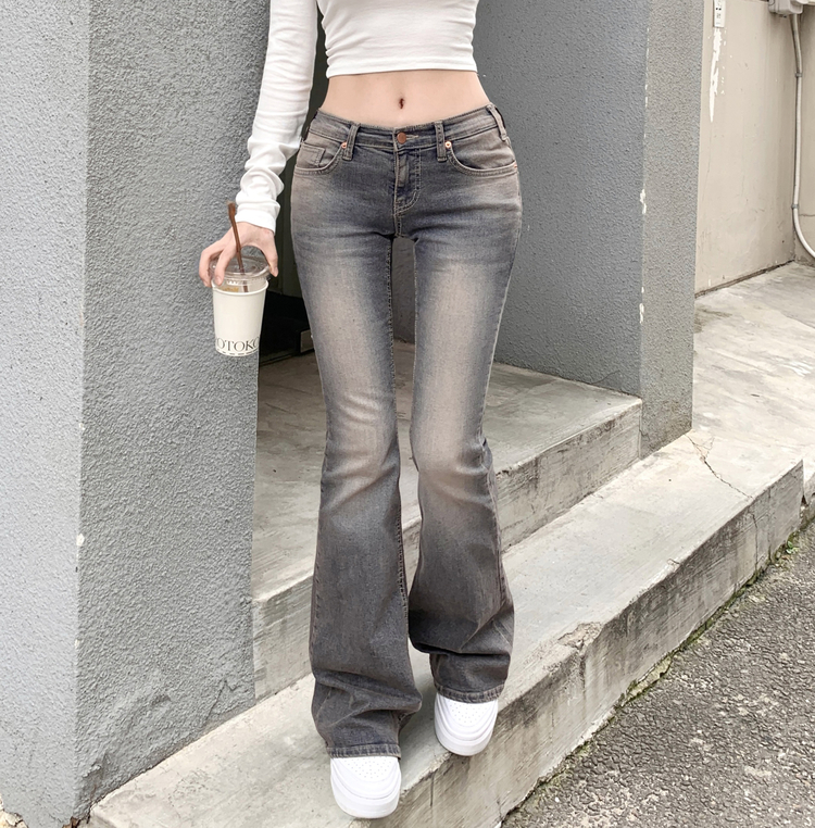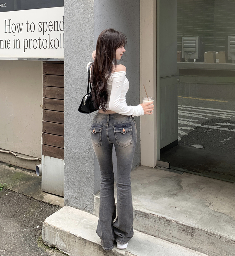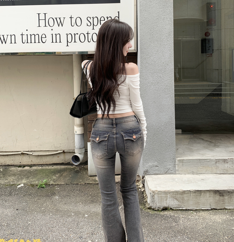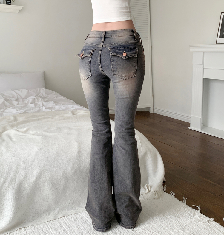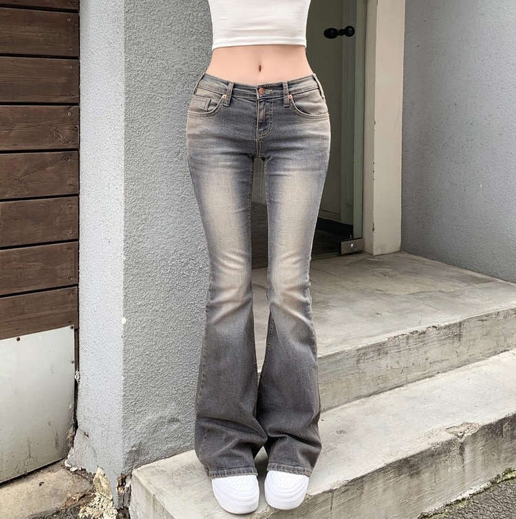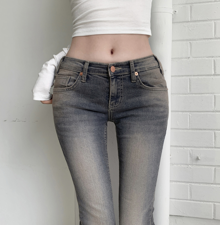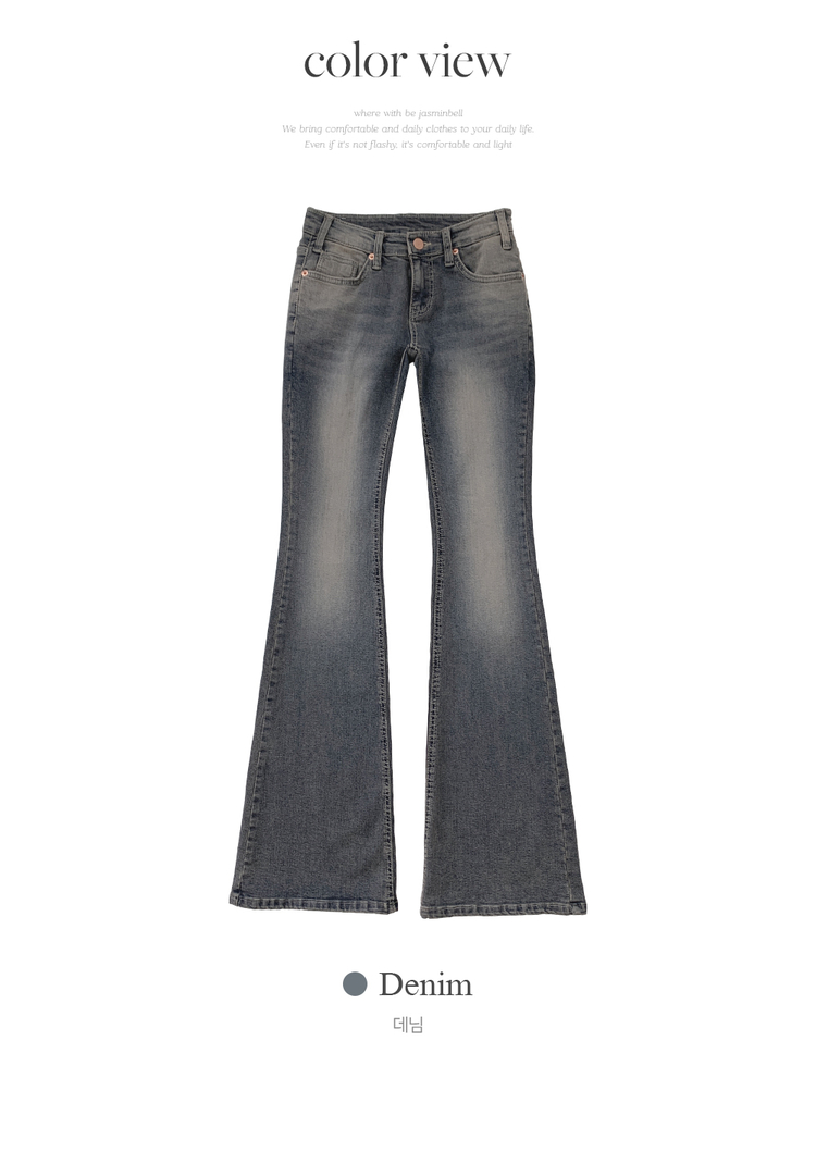 SJE12998 닉트 옐로우 워싱 스판 백포켓 로우라이즈 부츠컷 데님 팬츠