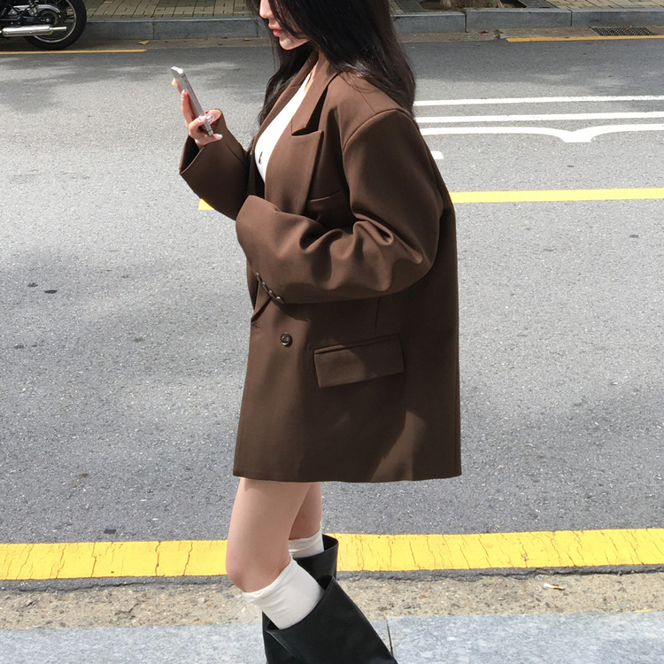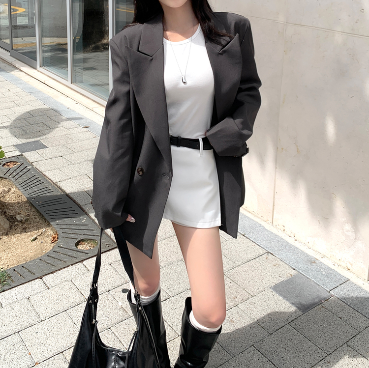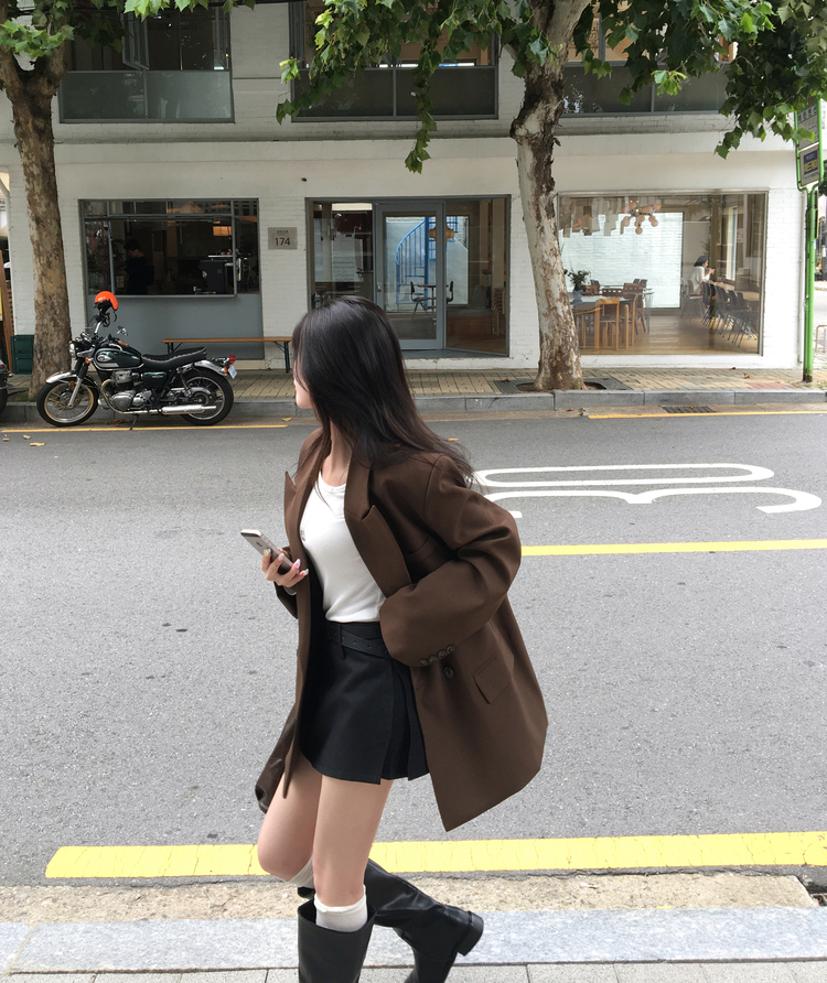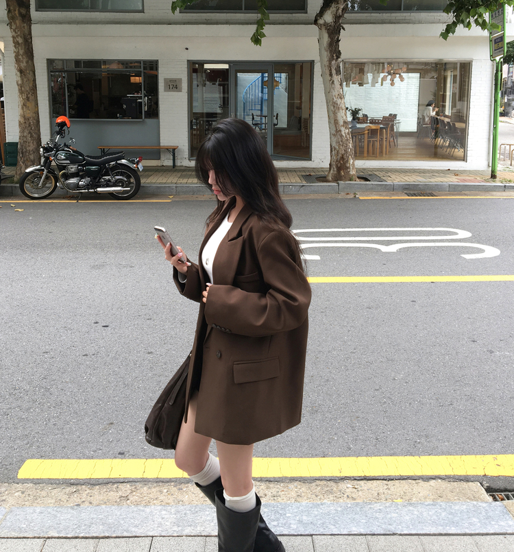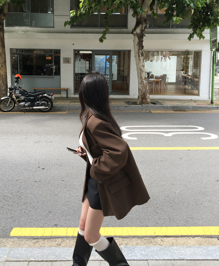 SJK14406 퍼팅 카라 오버핏 뒷트임 어깨패트 블레이저 자켓