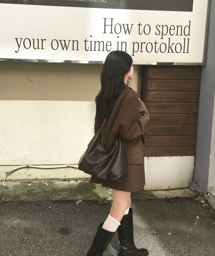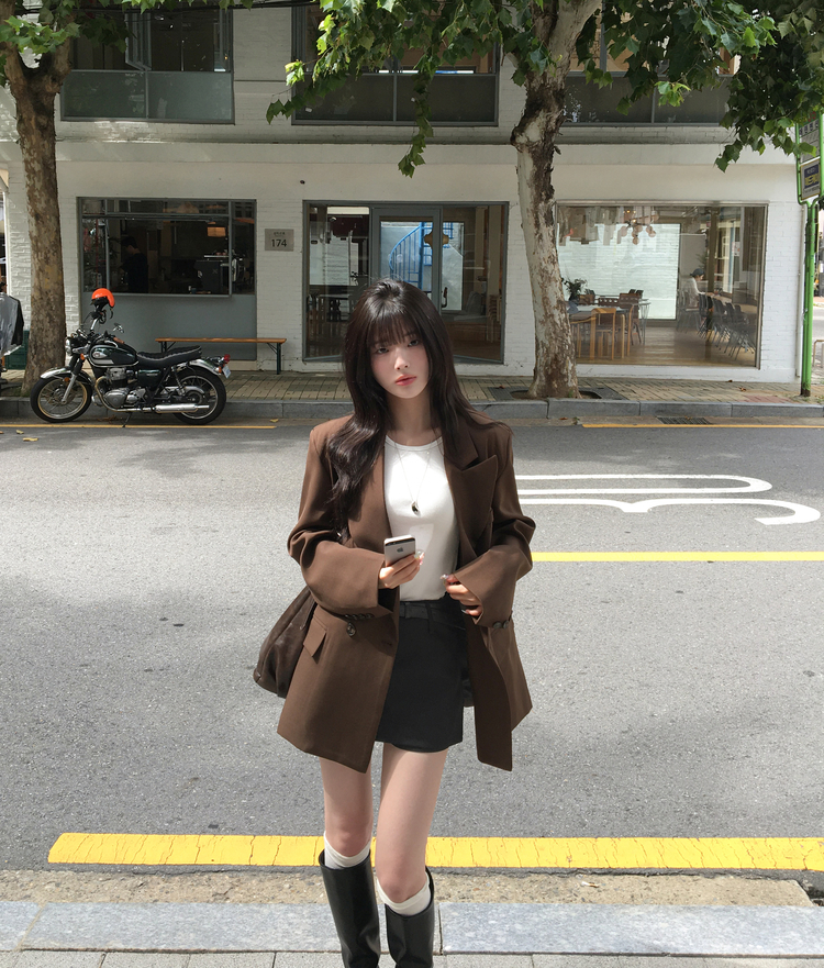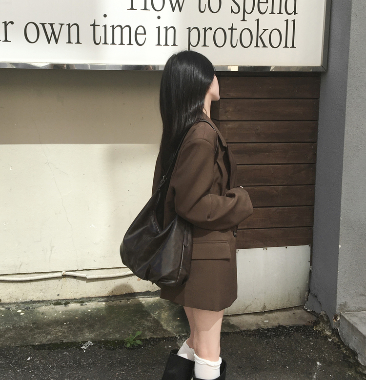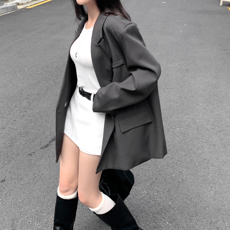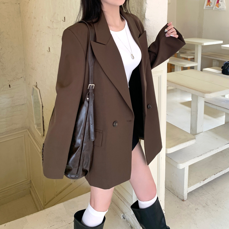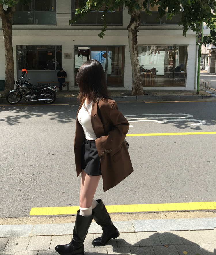 SJK14406 퍼팅 카라 오버핏 뒷트임 어깨패트 블레이저 자켓
