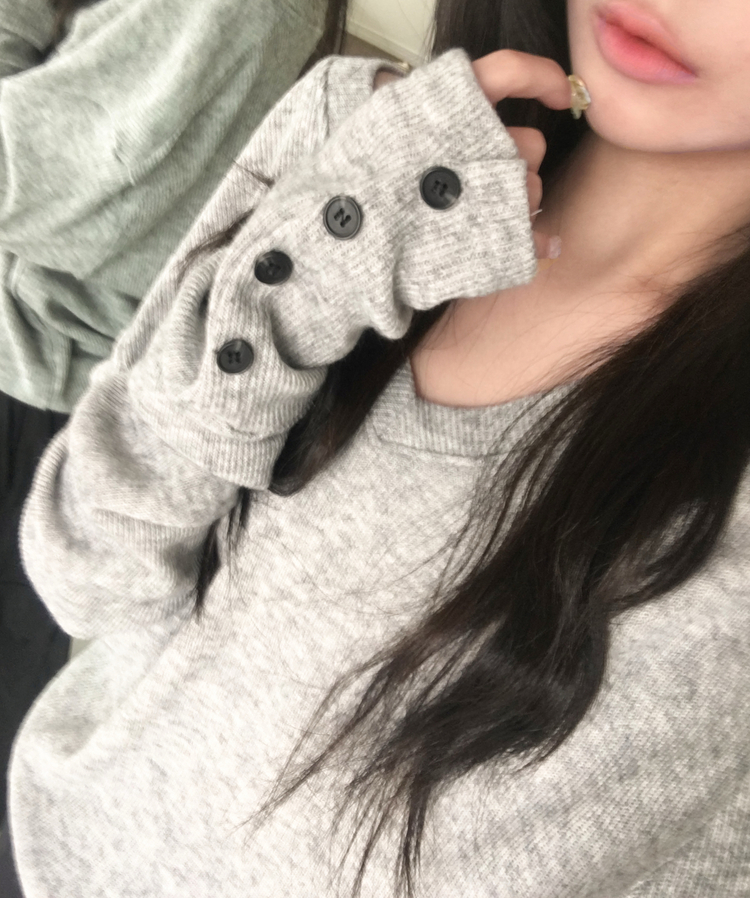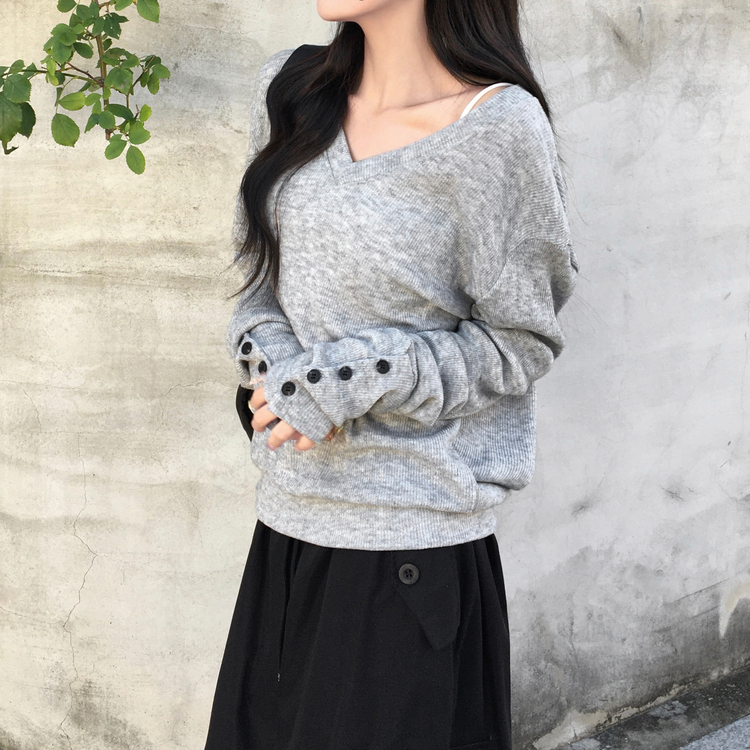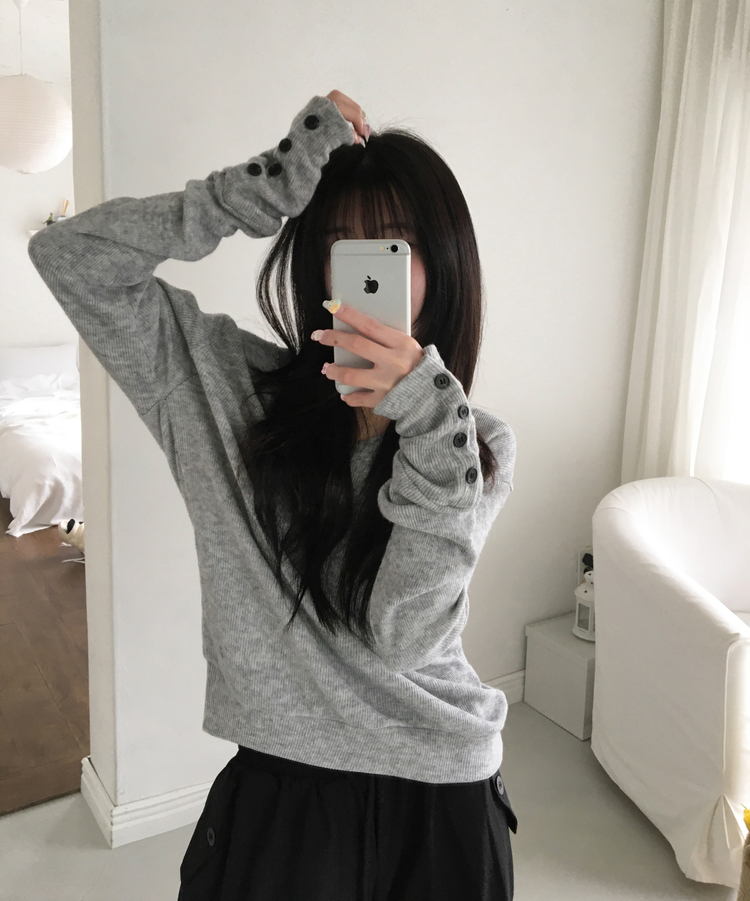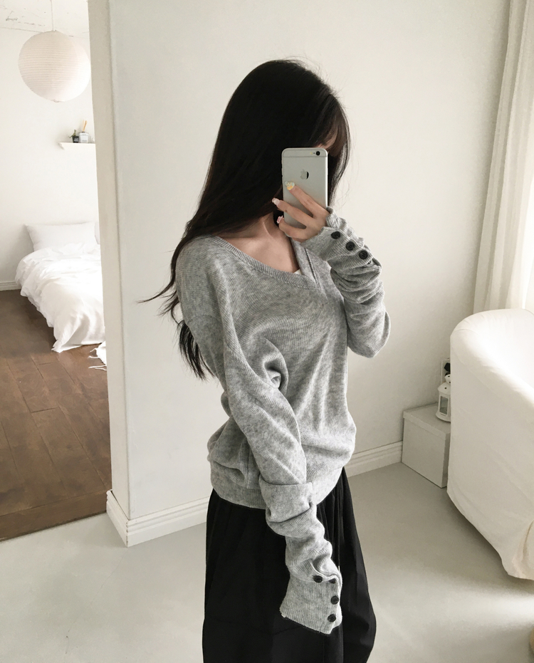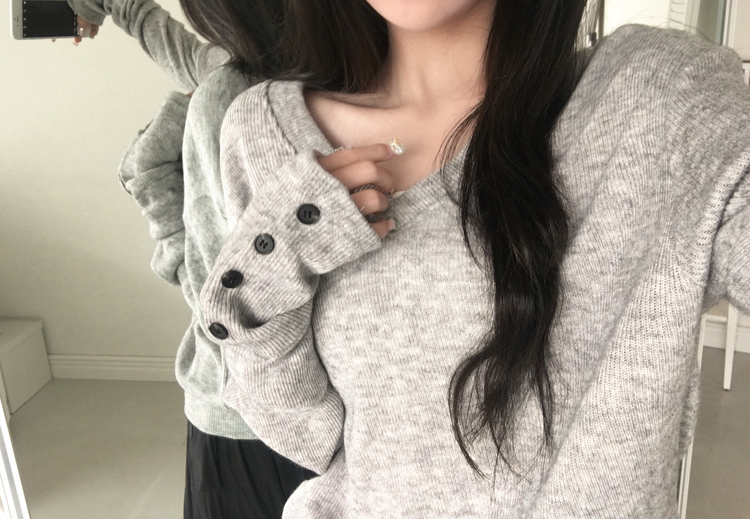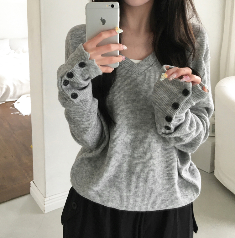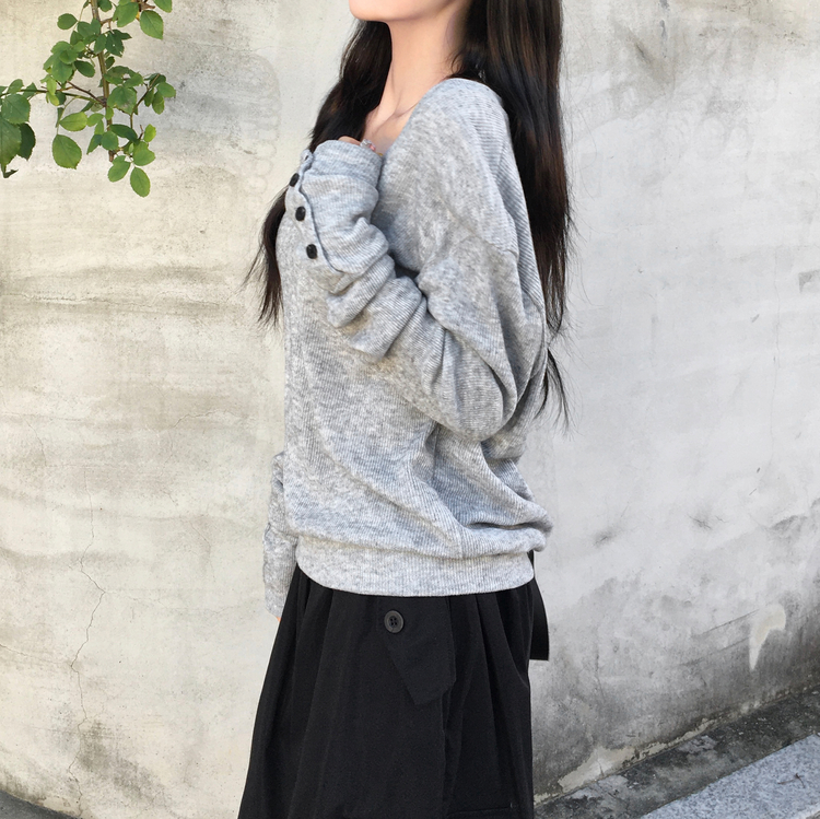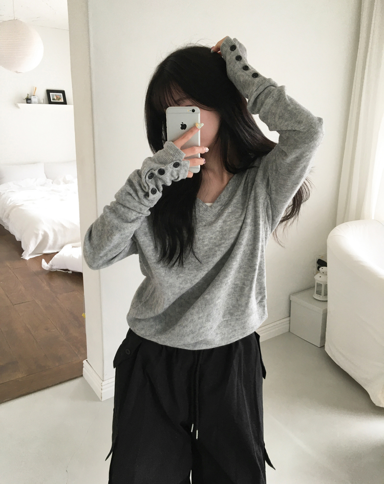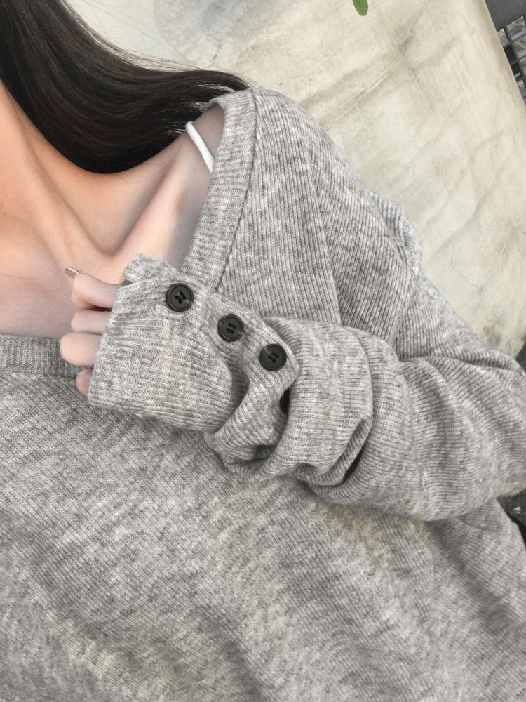 SNT32258 레히 울 브이넥 소매버튼 단추 루즈핏 오버핏 레이어드 니트