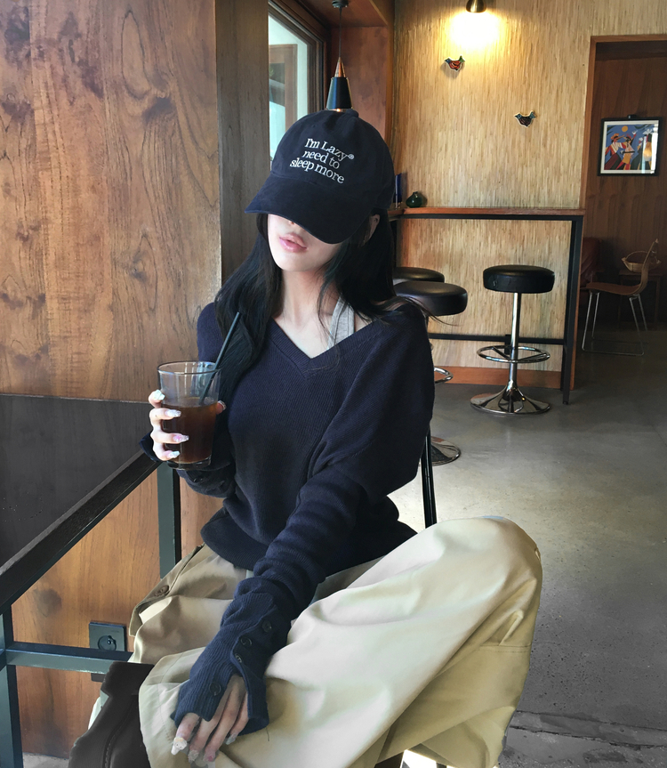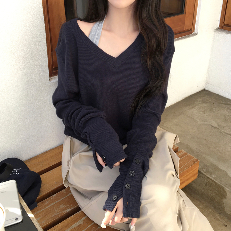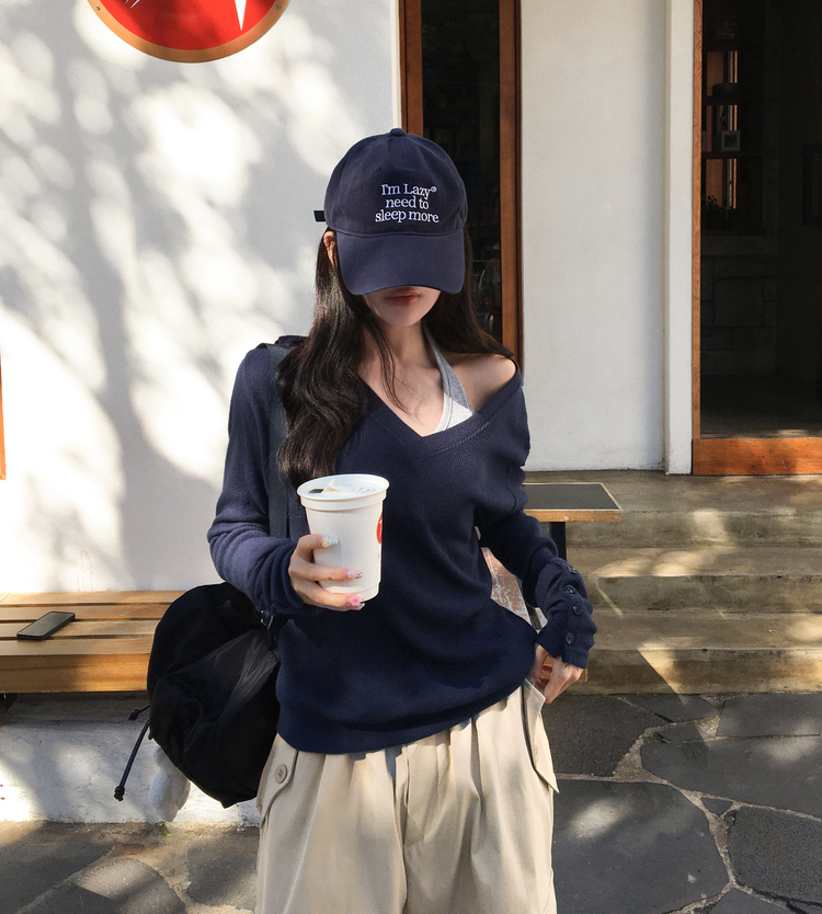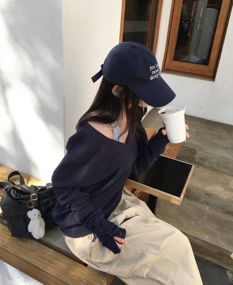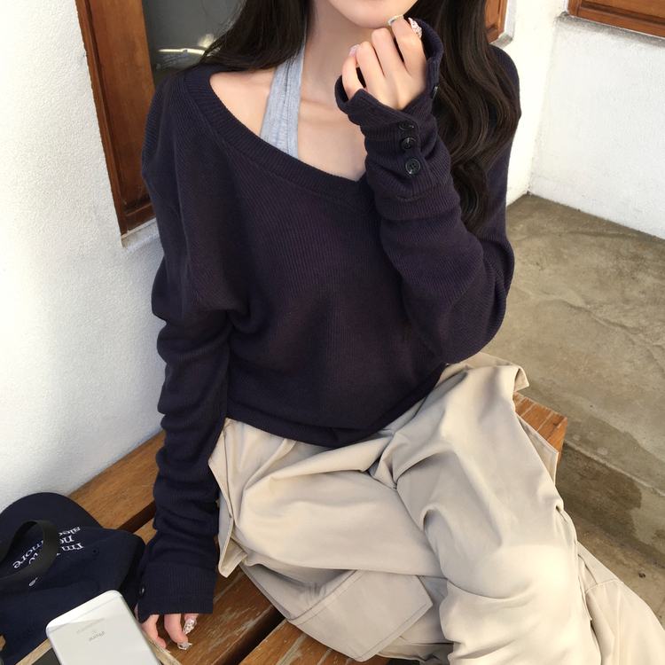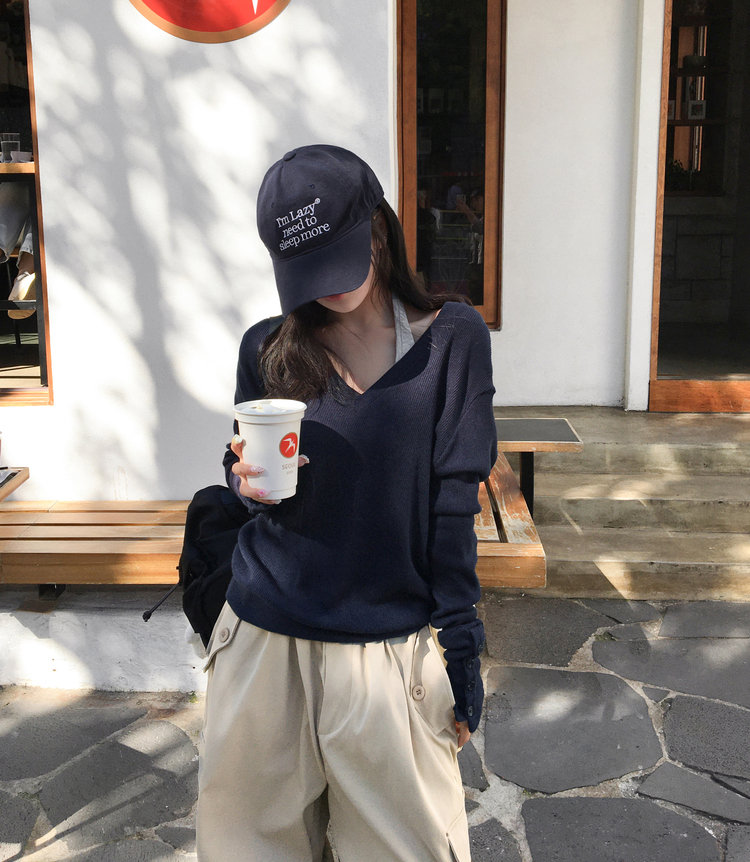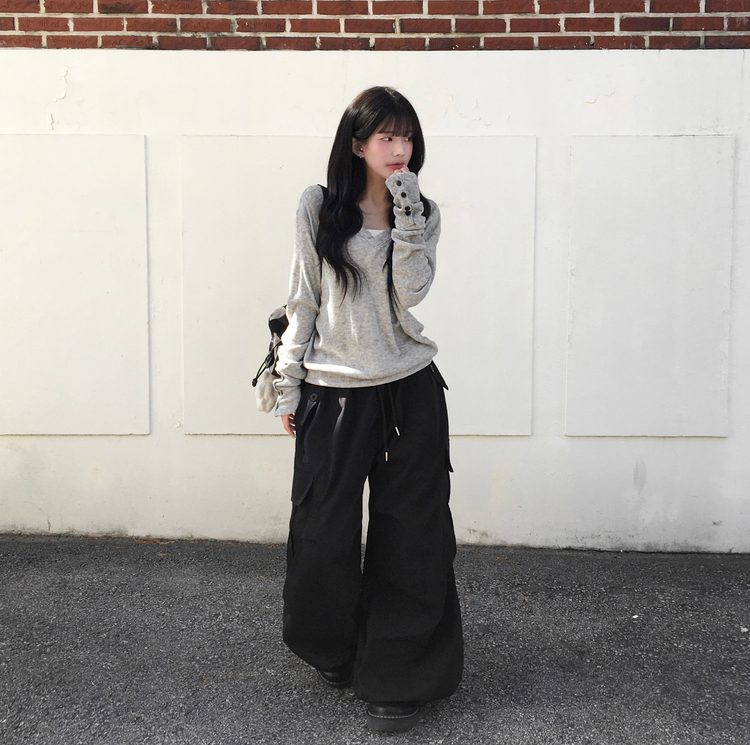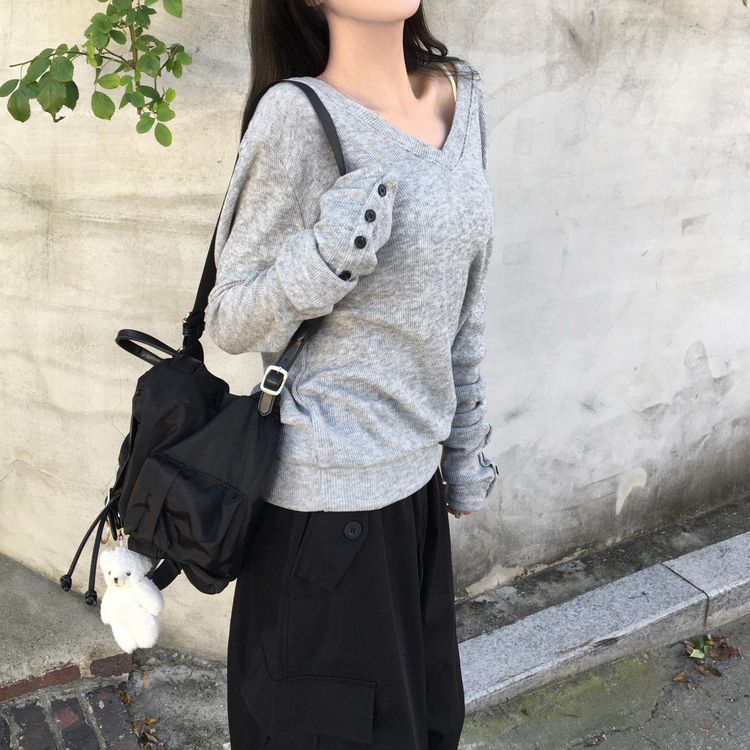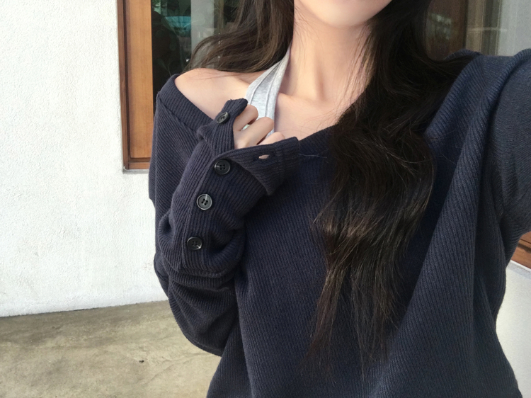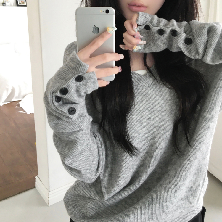 SNT32258 레히 울 브이넥 소매버튼 단추 루즈핏 오버핏 레이어드 니트
