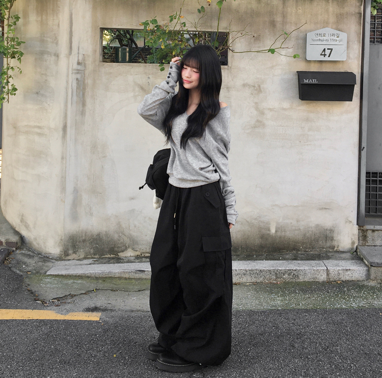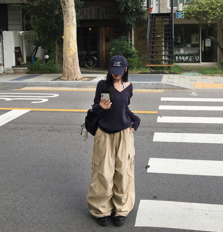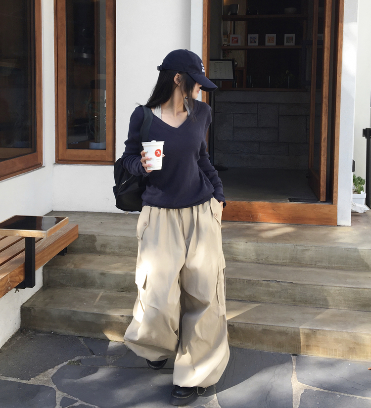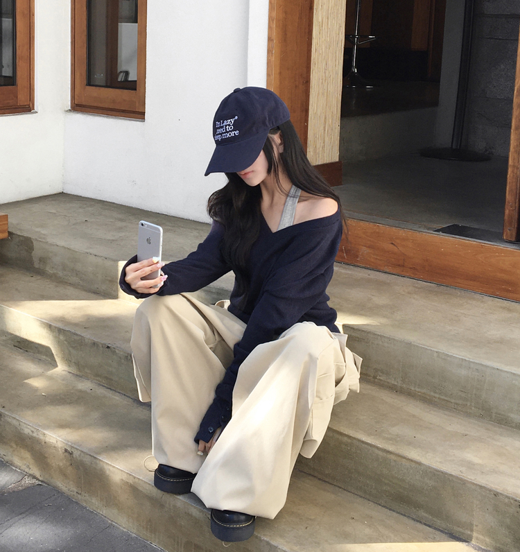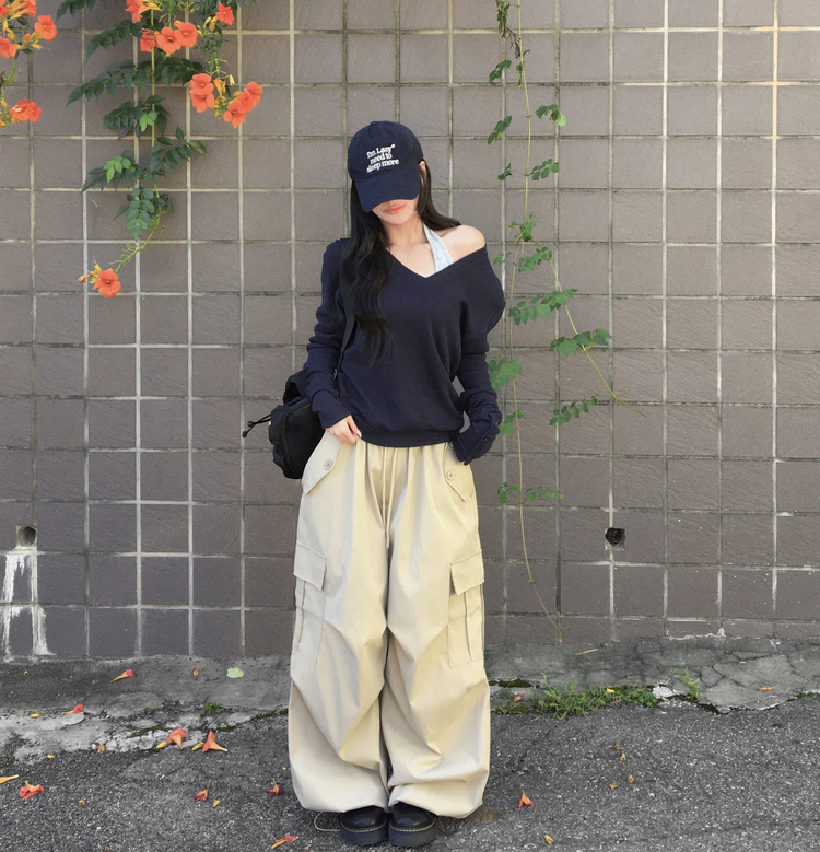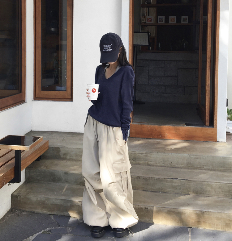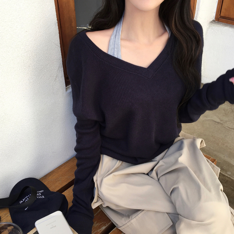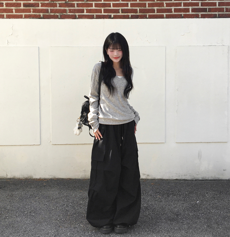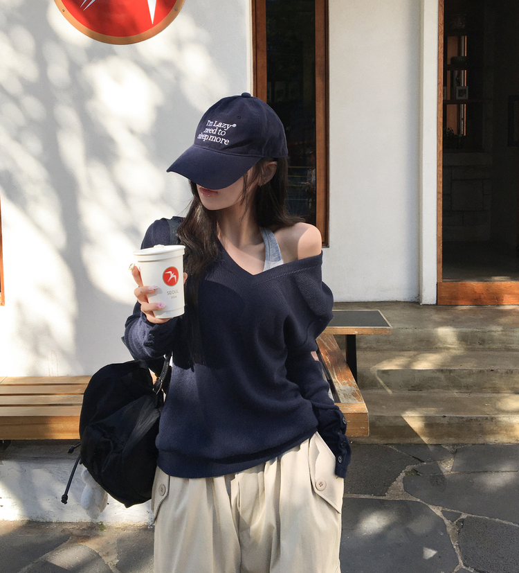 SNT32258 레히 울 브이넥 소매버튼 단추 루즈핏 오버핏 레이어드 니트