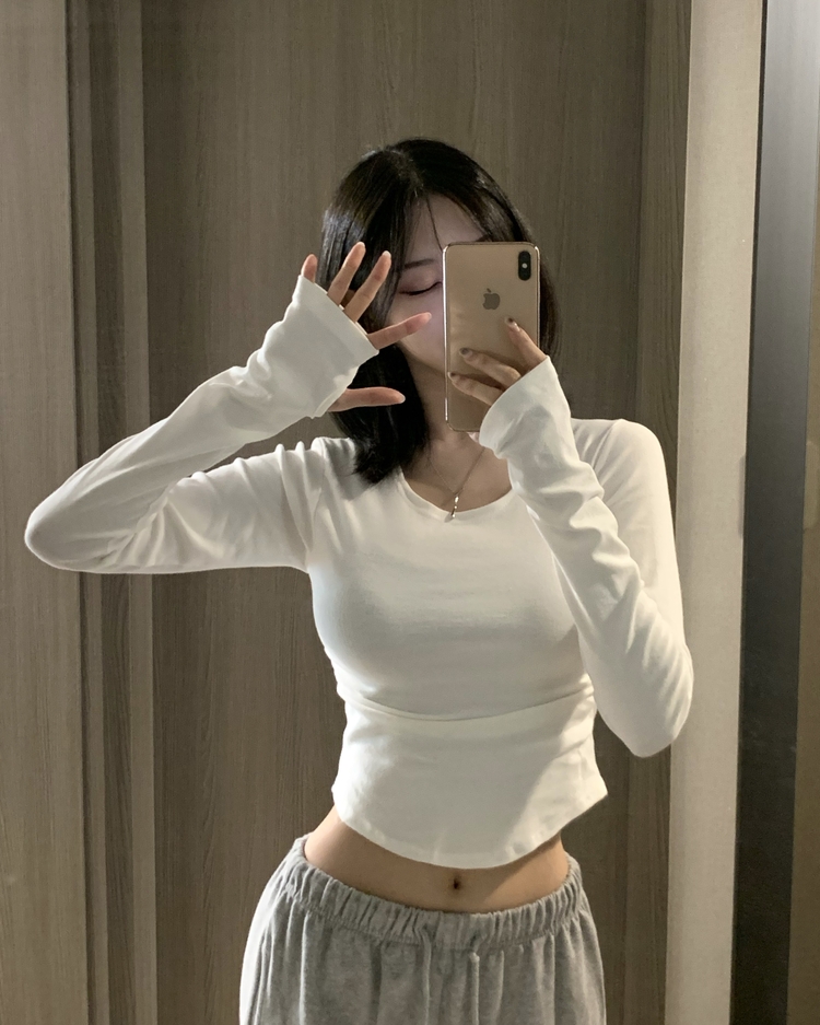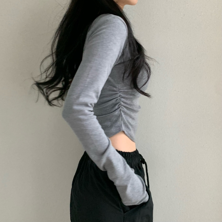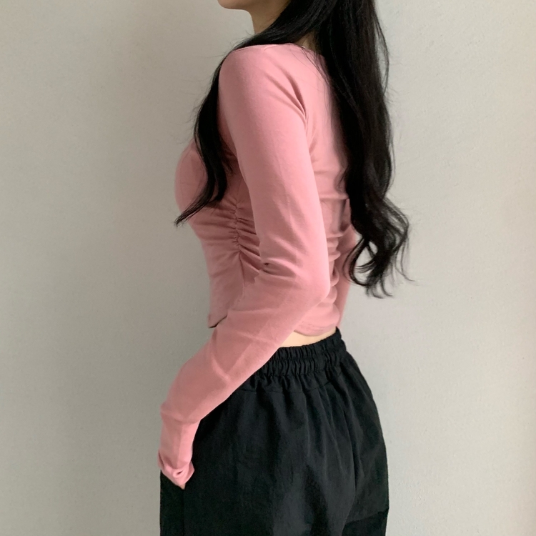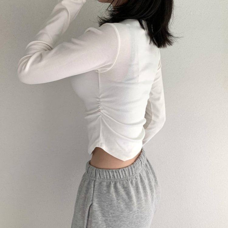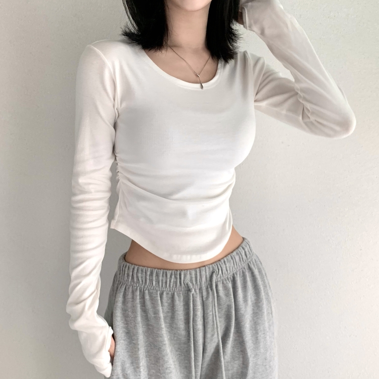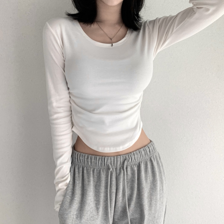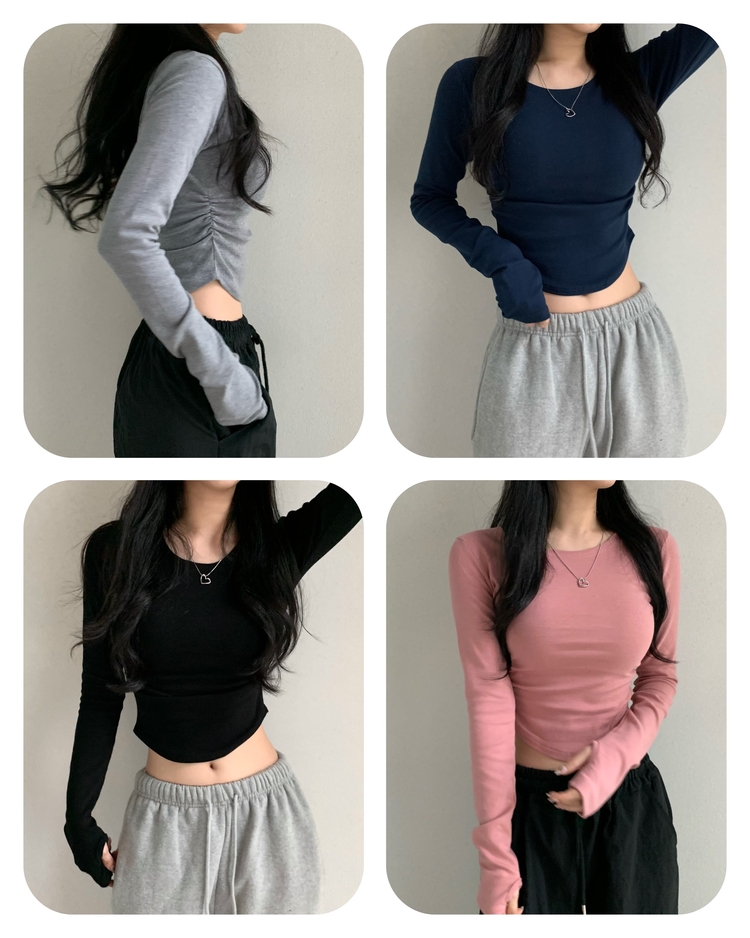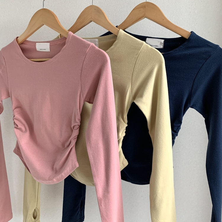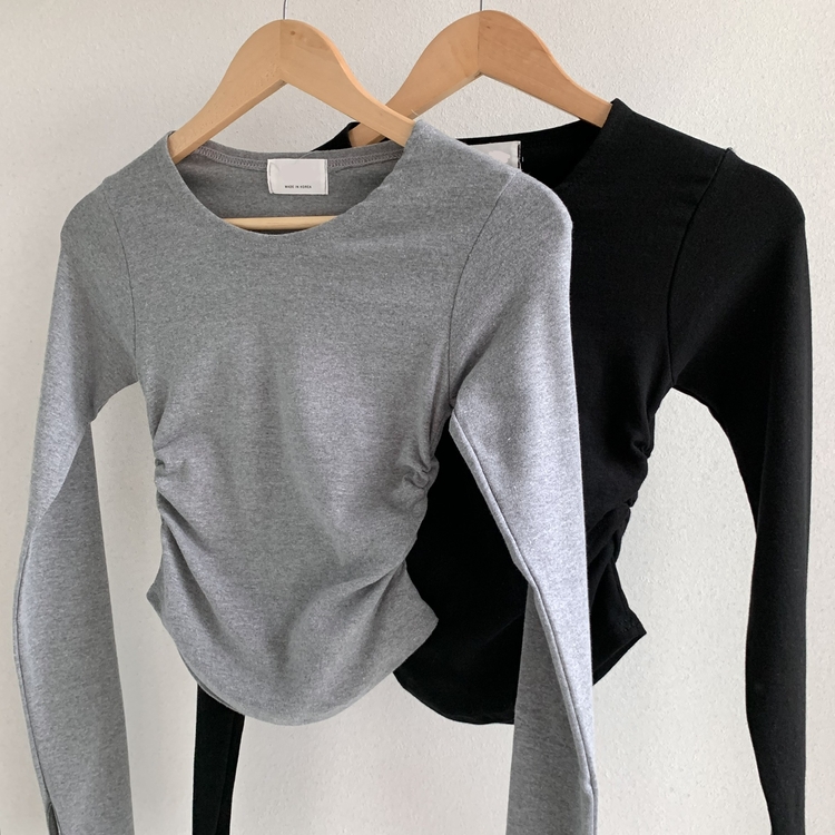 STS72360 워머 옆셔링 무지 라운드 긴팔 티셔츠