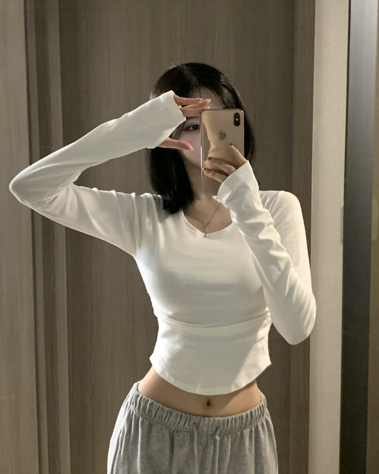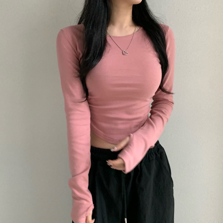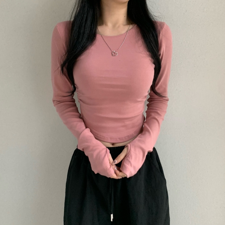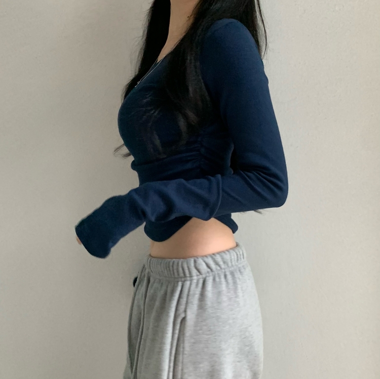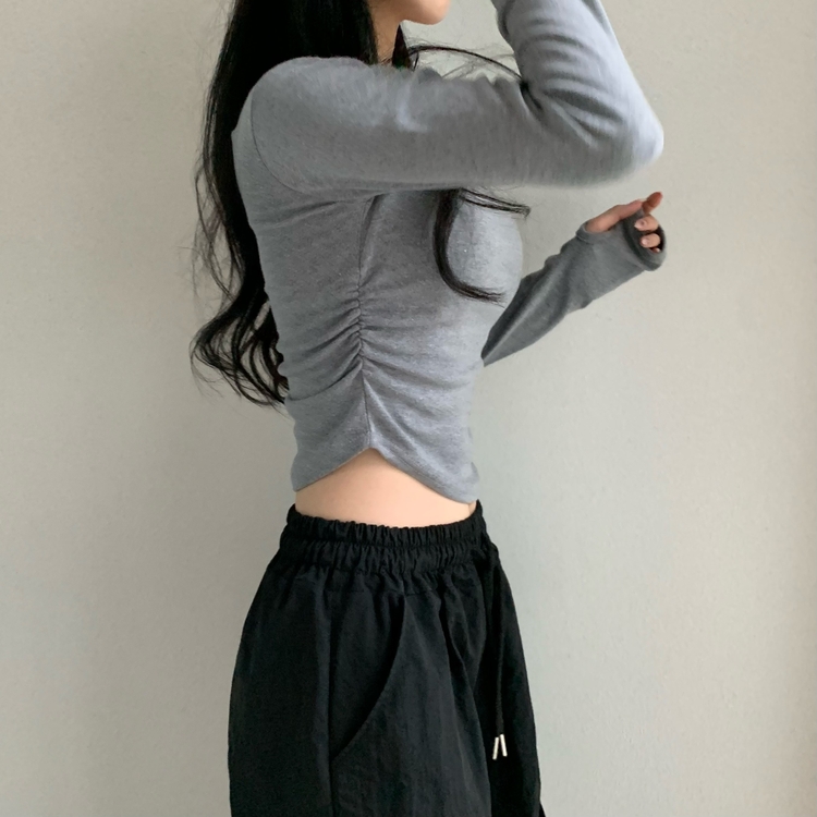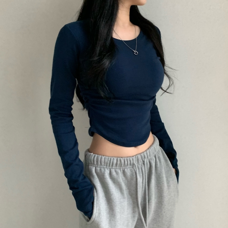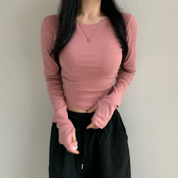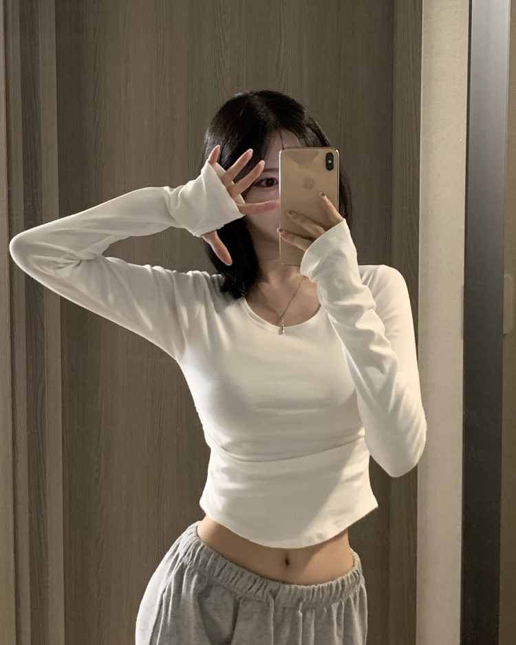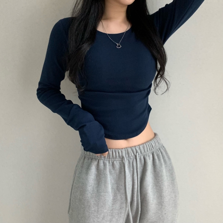 STS72360 워머 옆셔링 무지 라운드 긴팔 티셔츠