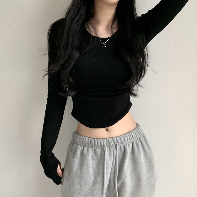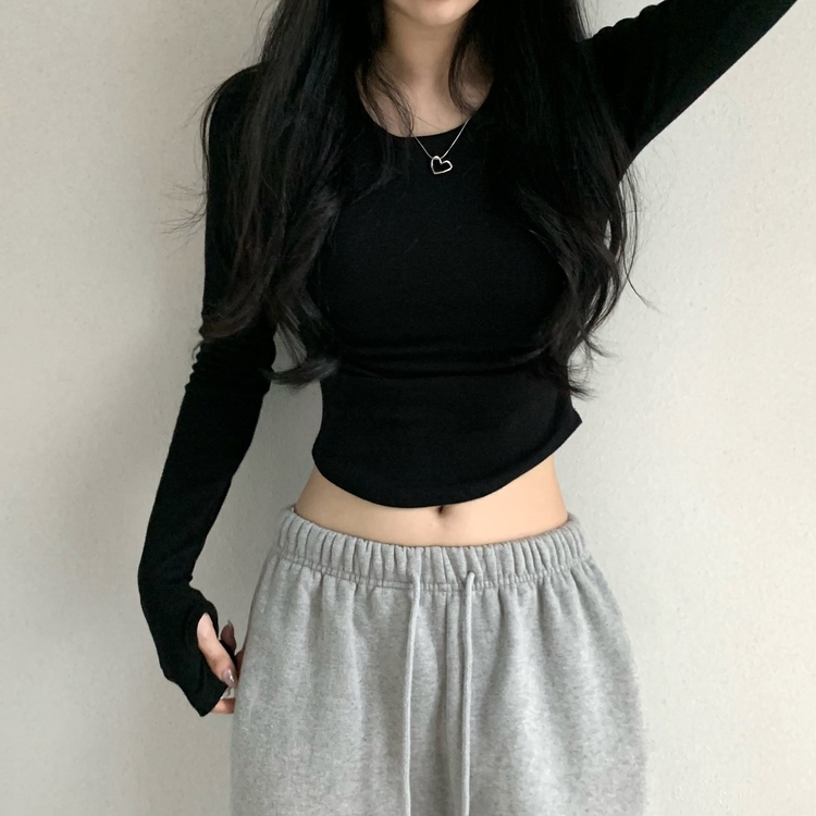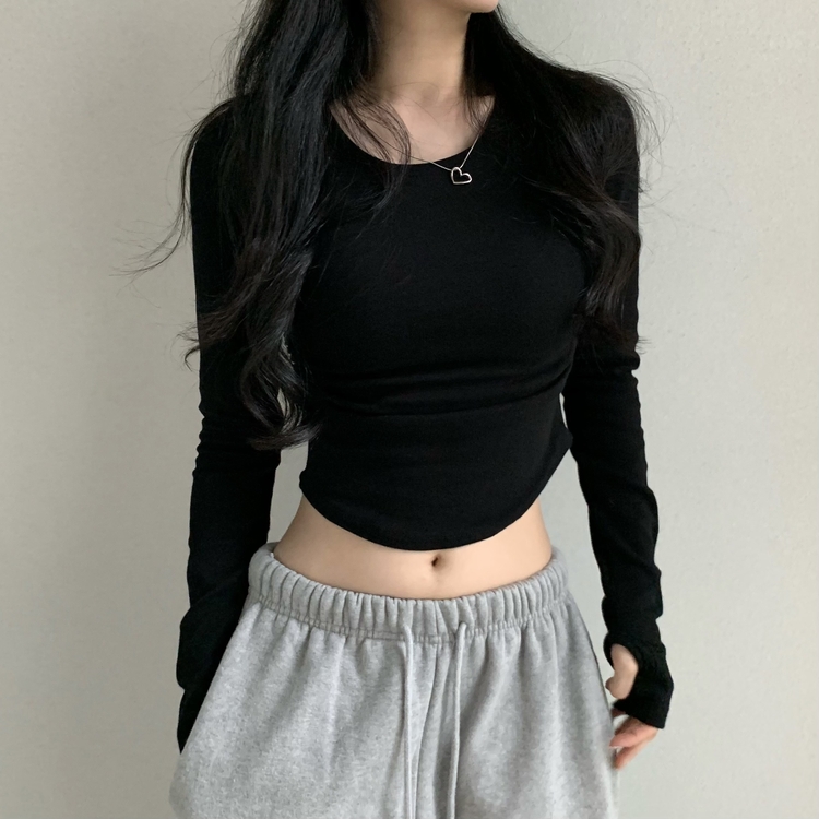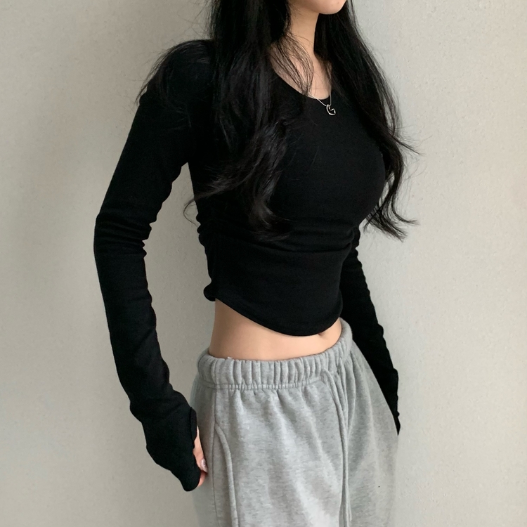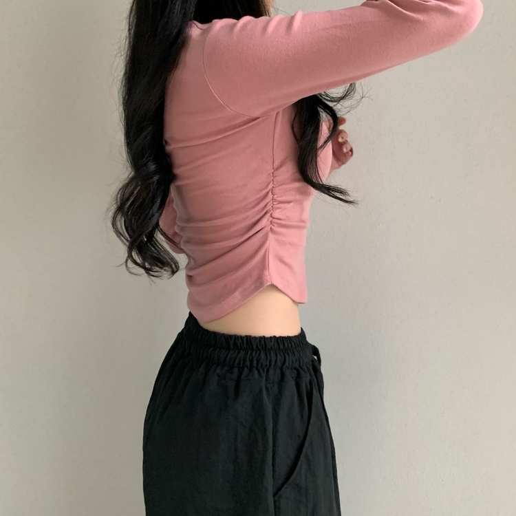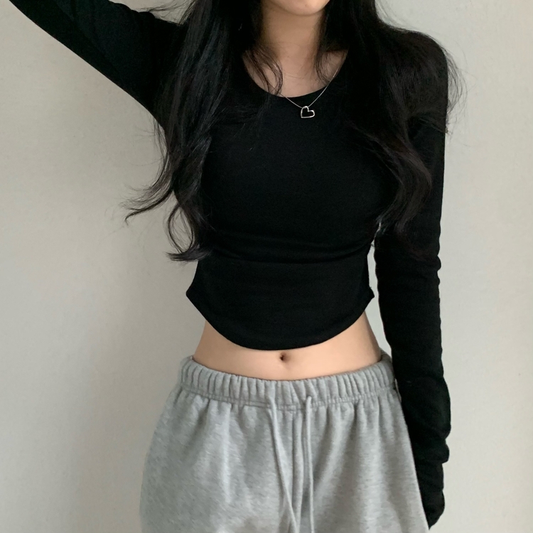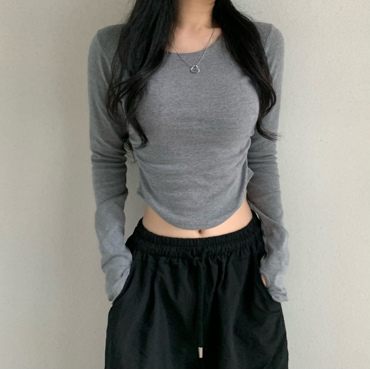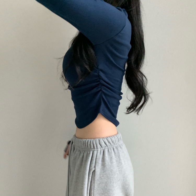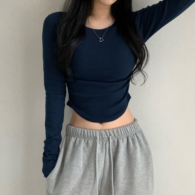 STS72360 워머 옆셔링 무지 라운드 긴팔 티셔츠