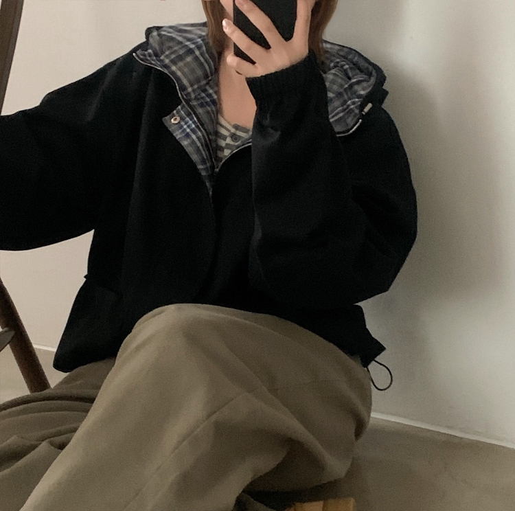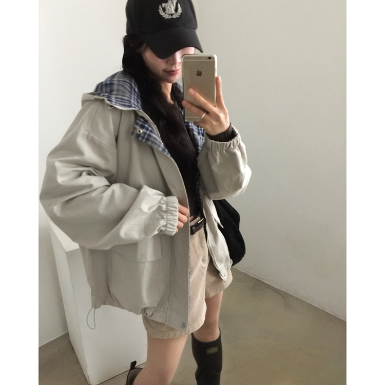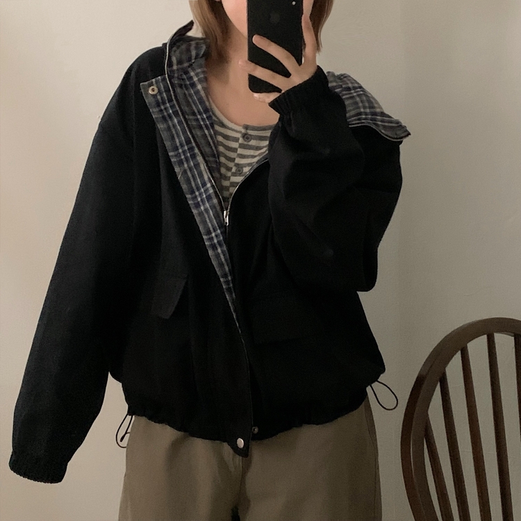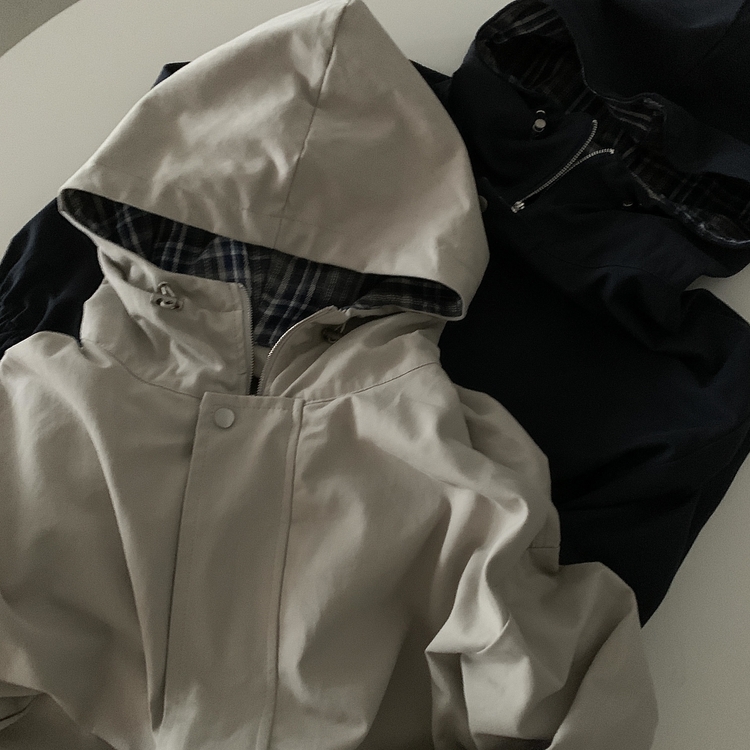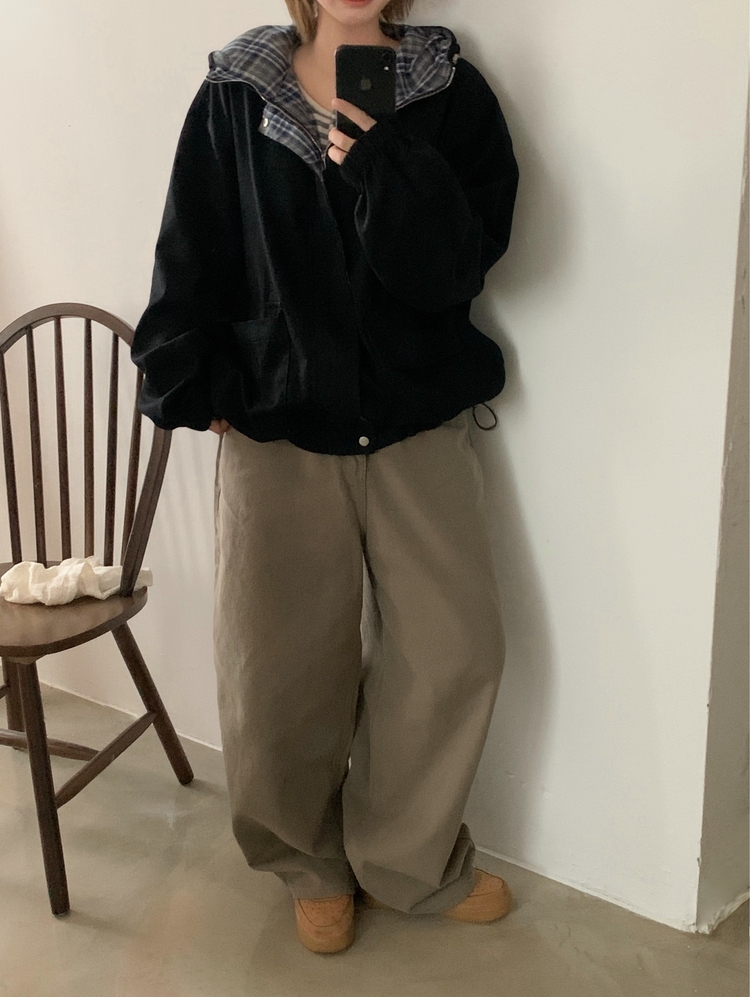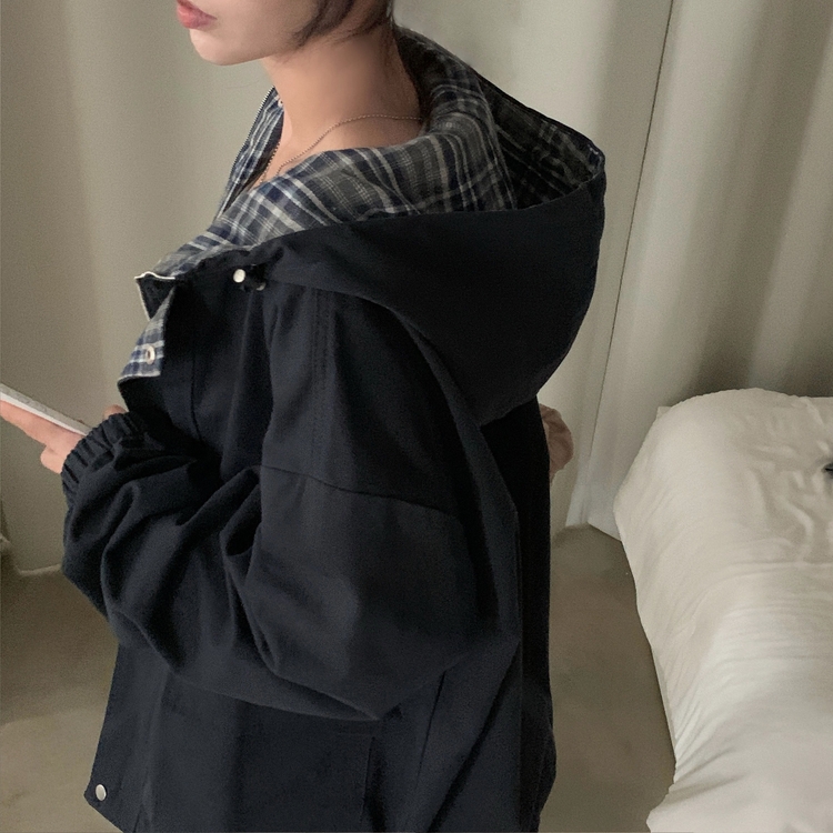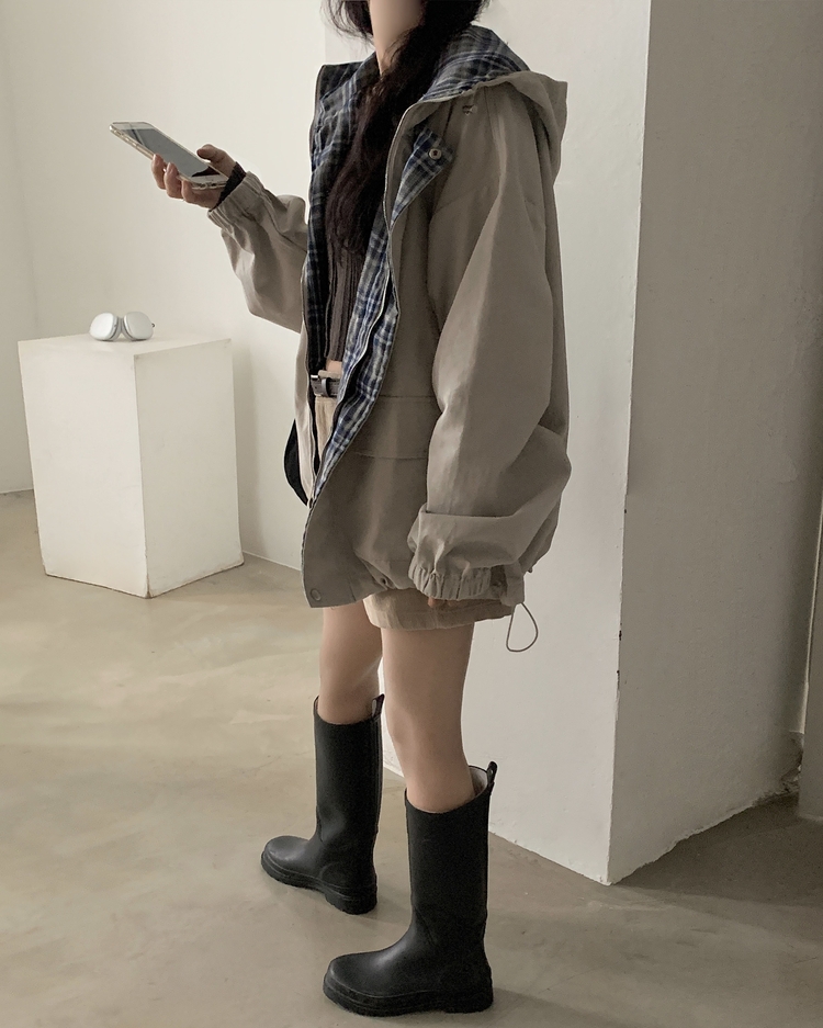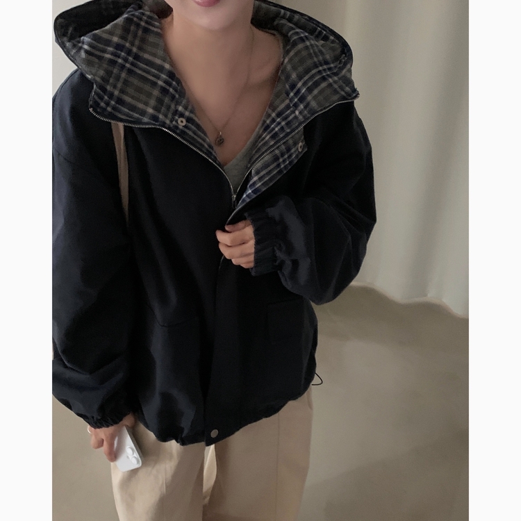 SJP17803 캠브리지 체크 배색 스트링 후드야상 집업점퍼
