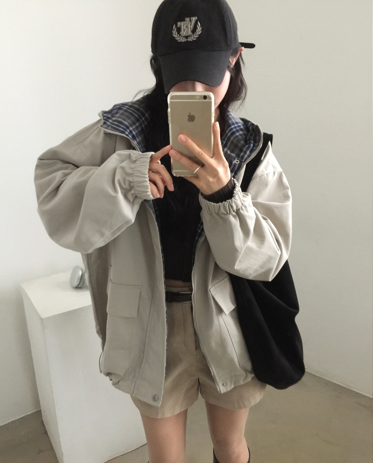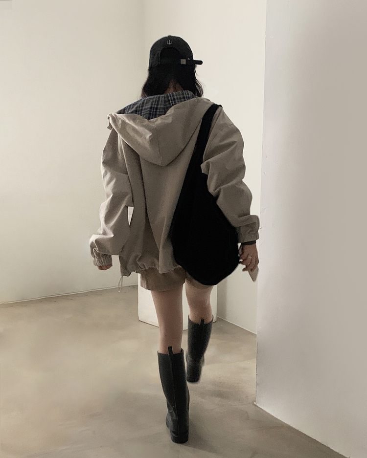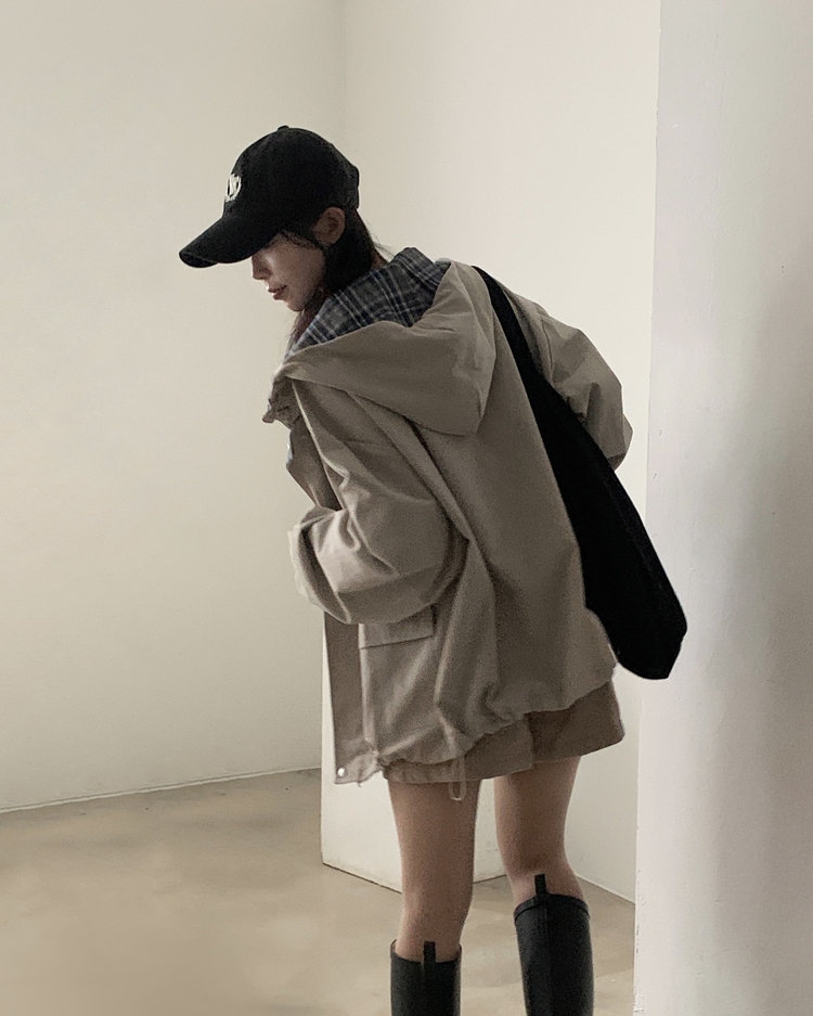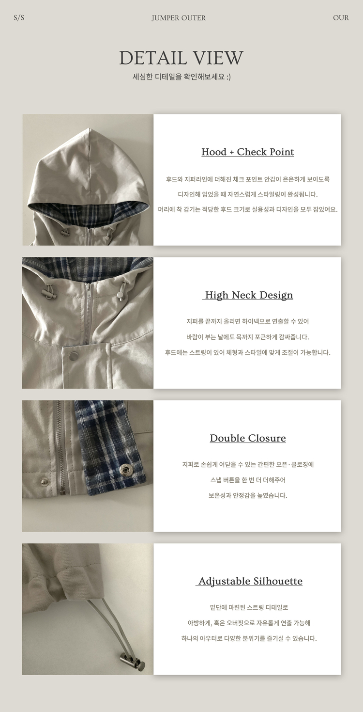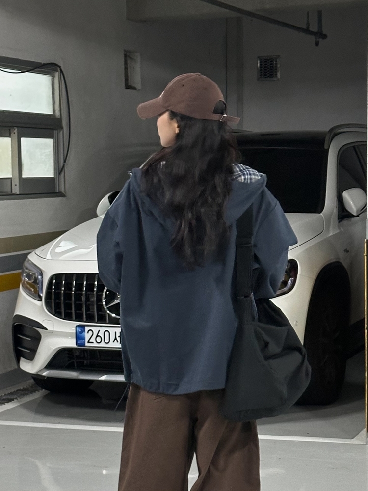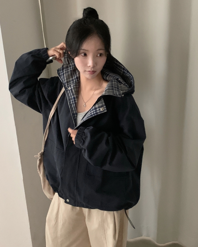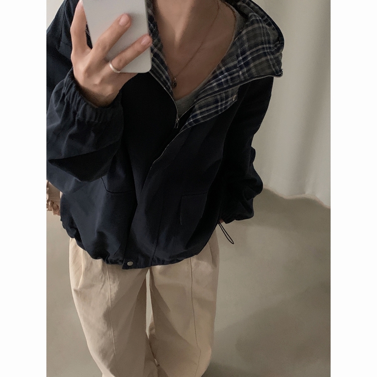 SJP17803 캠브리지 체크 배색 스트링 후드야상 집업점퍼