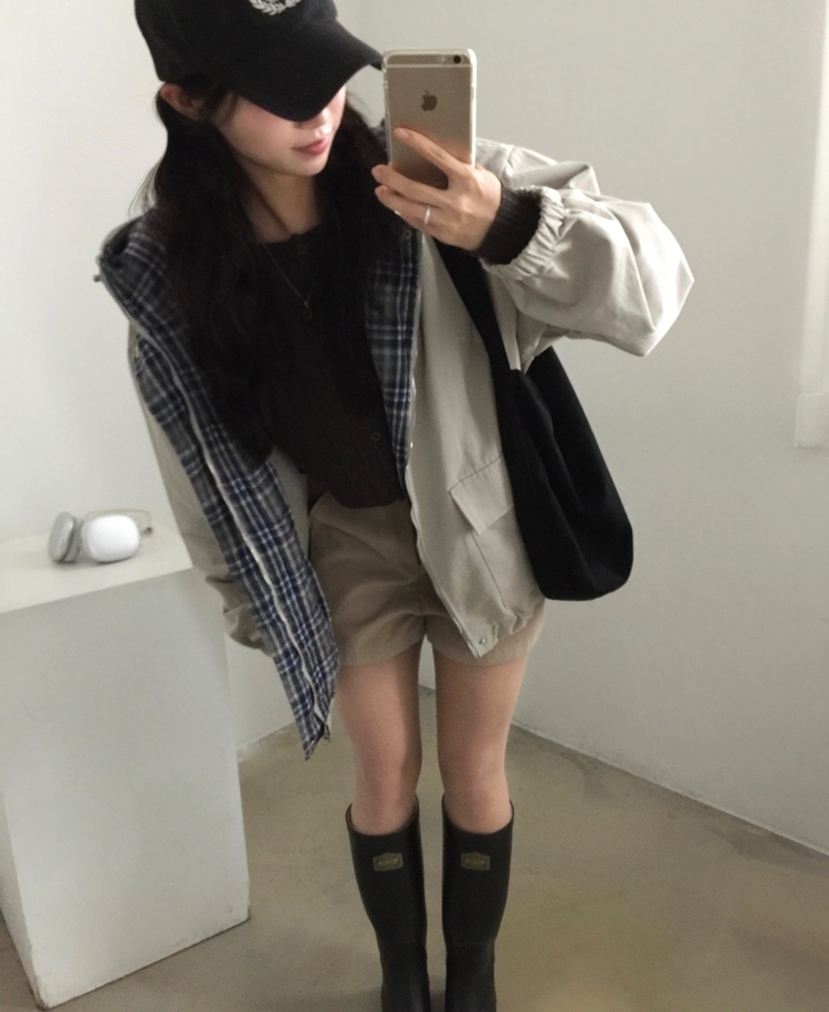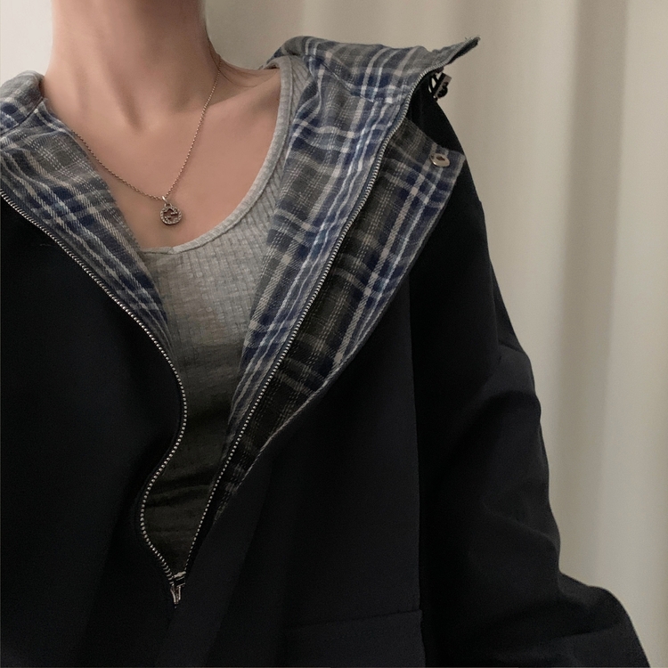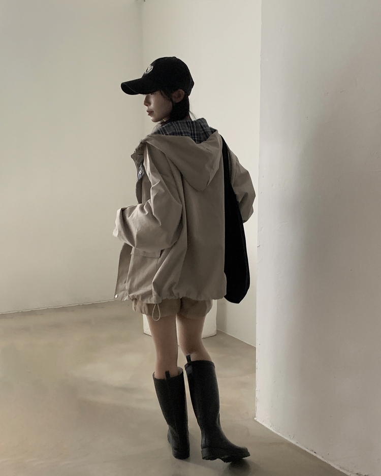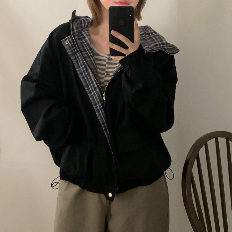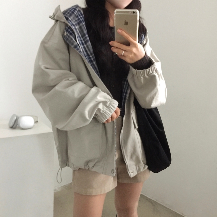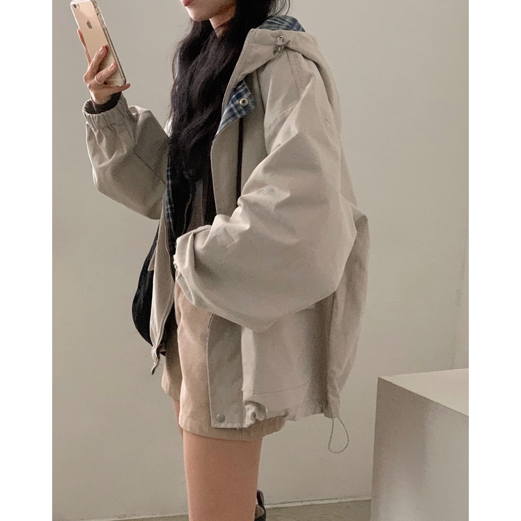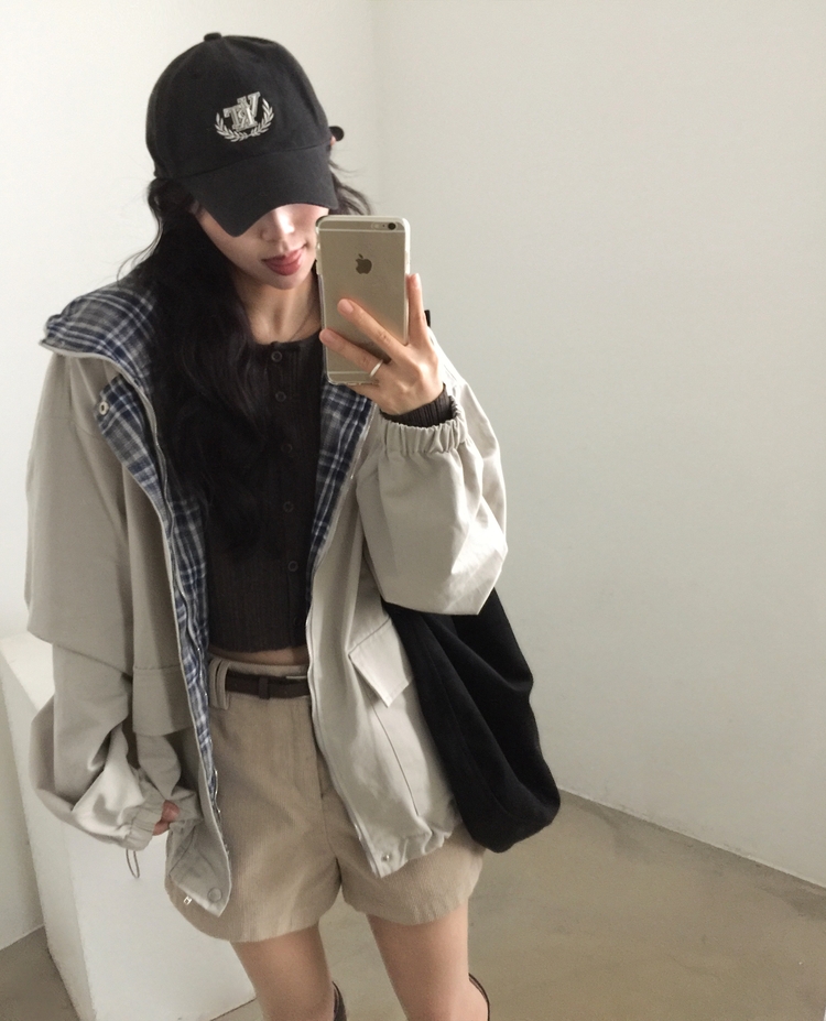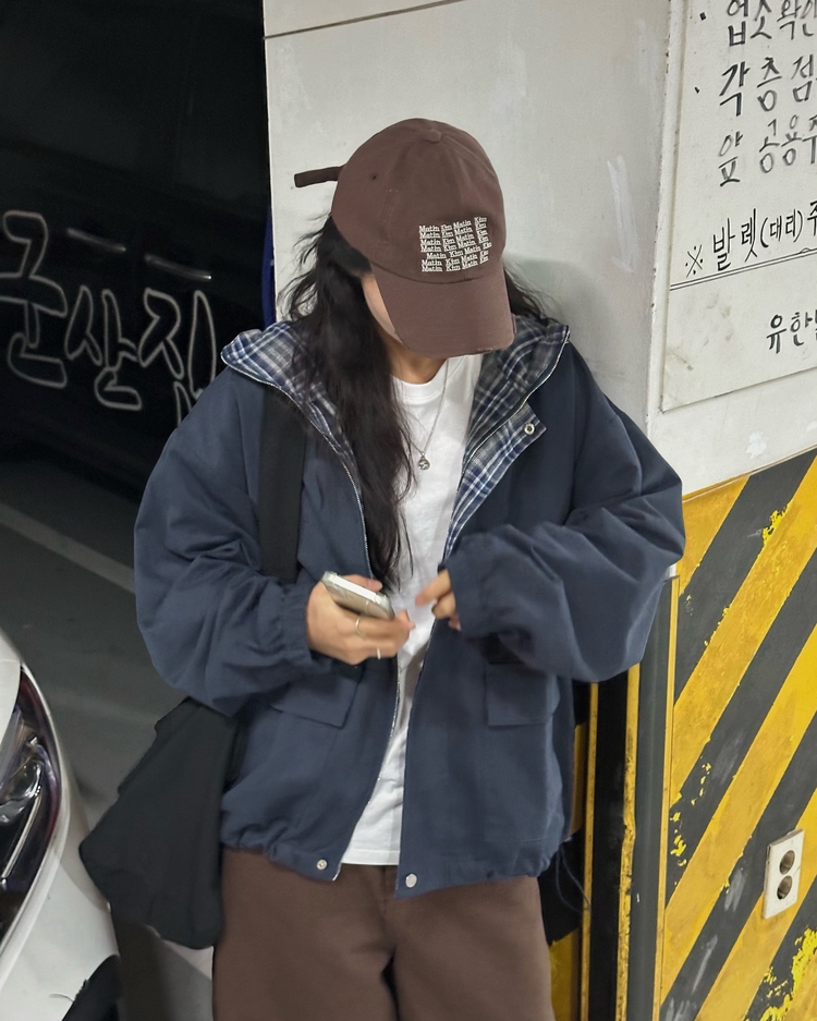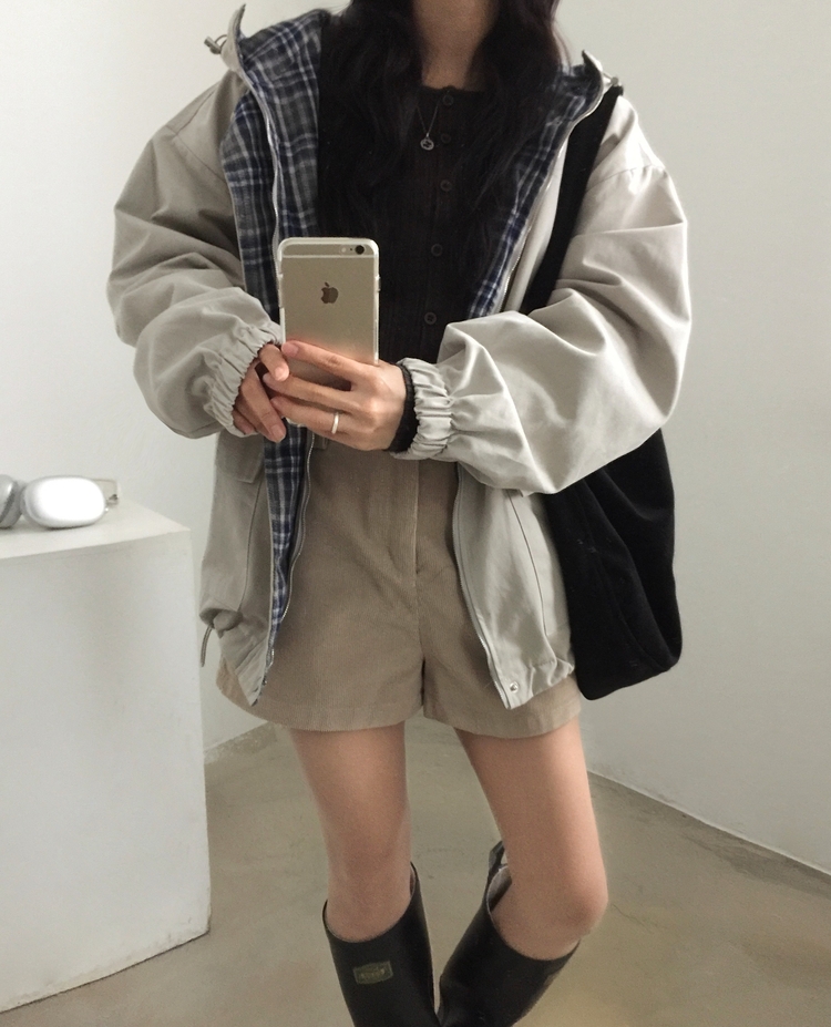 SJP17803 캠브리지 체크 배색 스트링 후드야상 집업점퍼