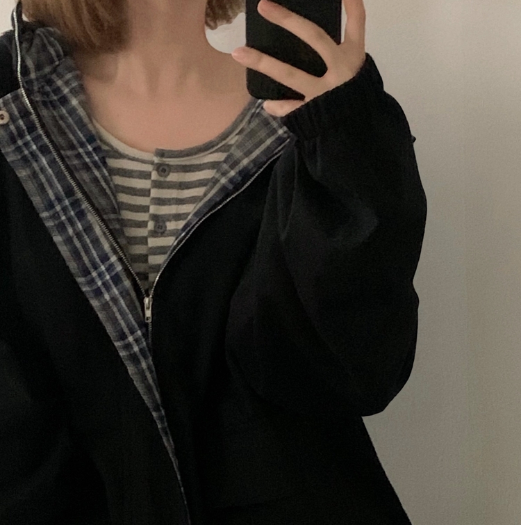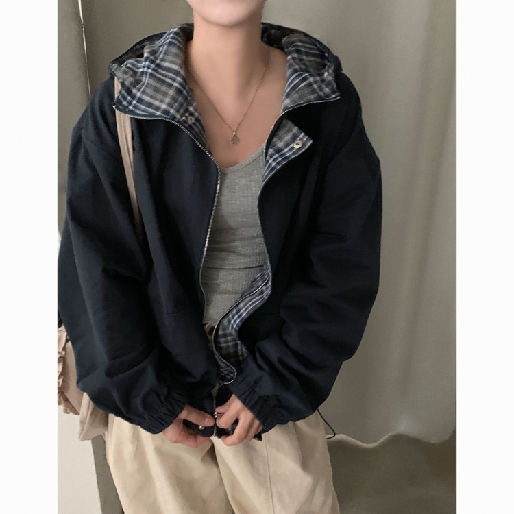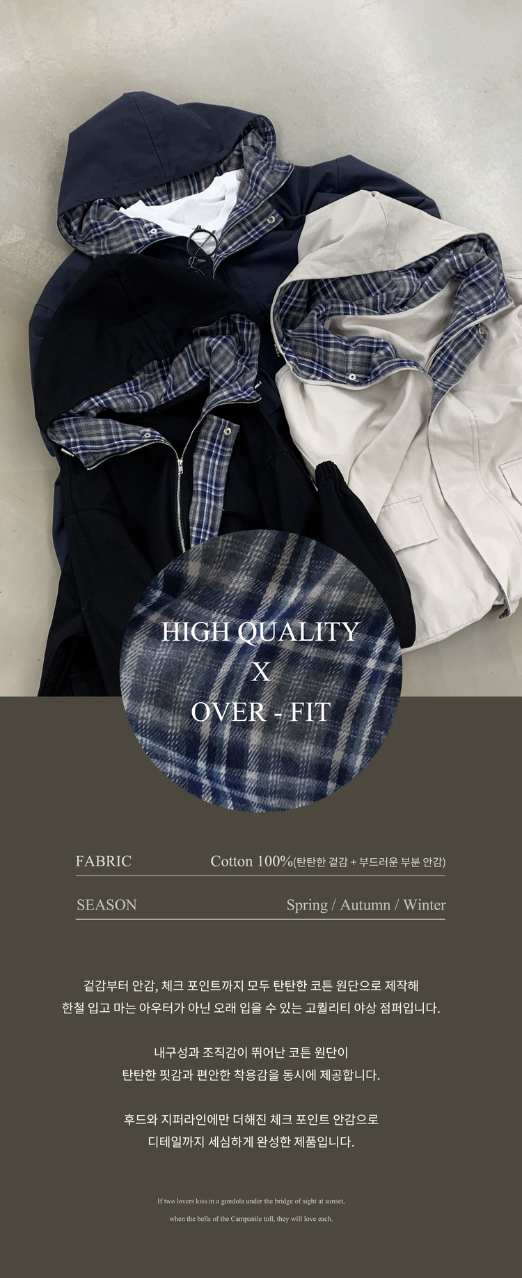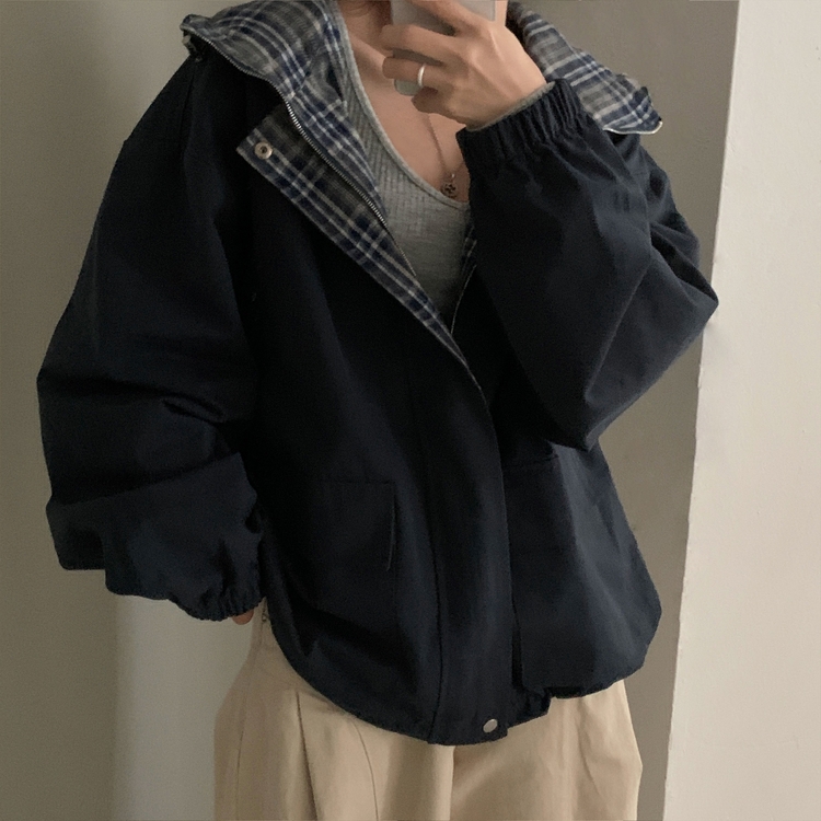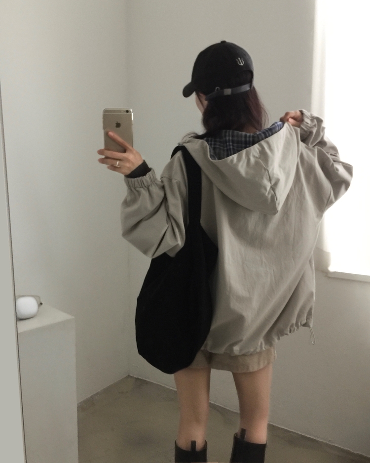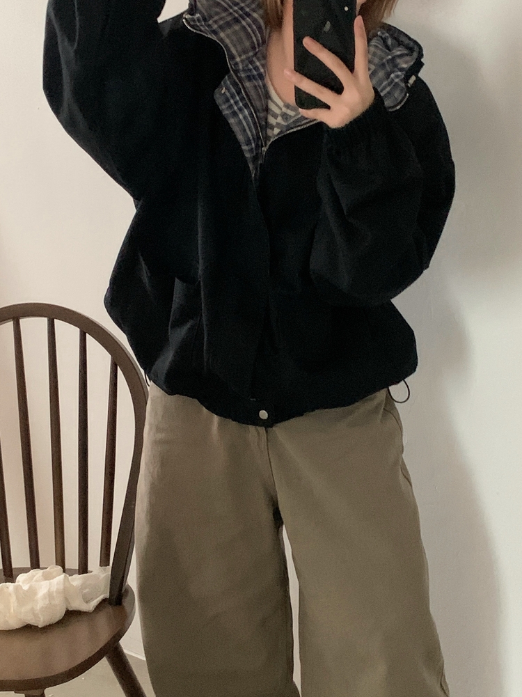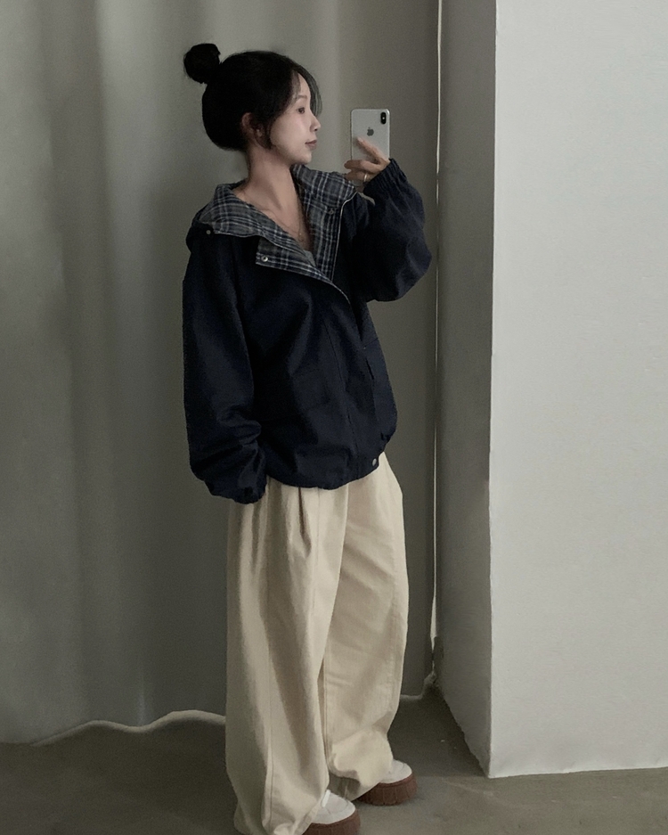SJP17803 캠브리지 체크 배색 스트링 후드야상 집업점퍼
