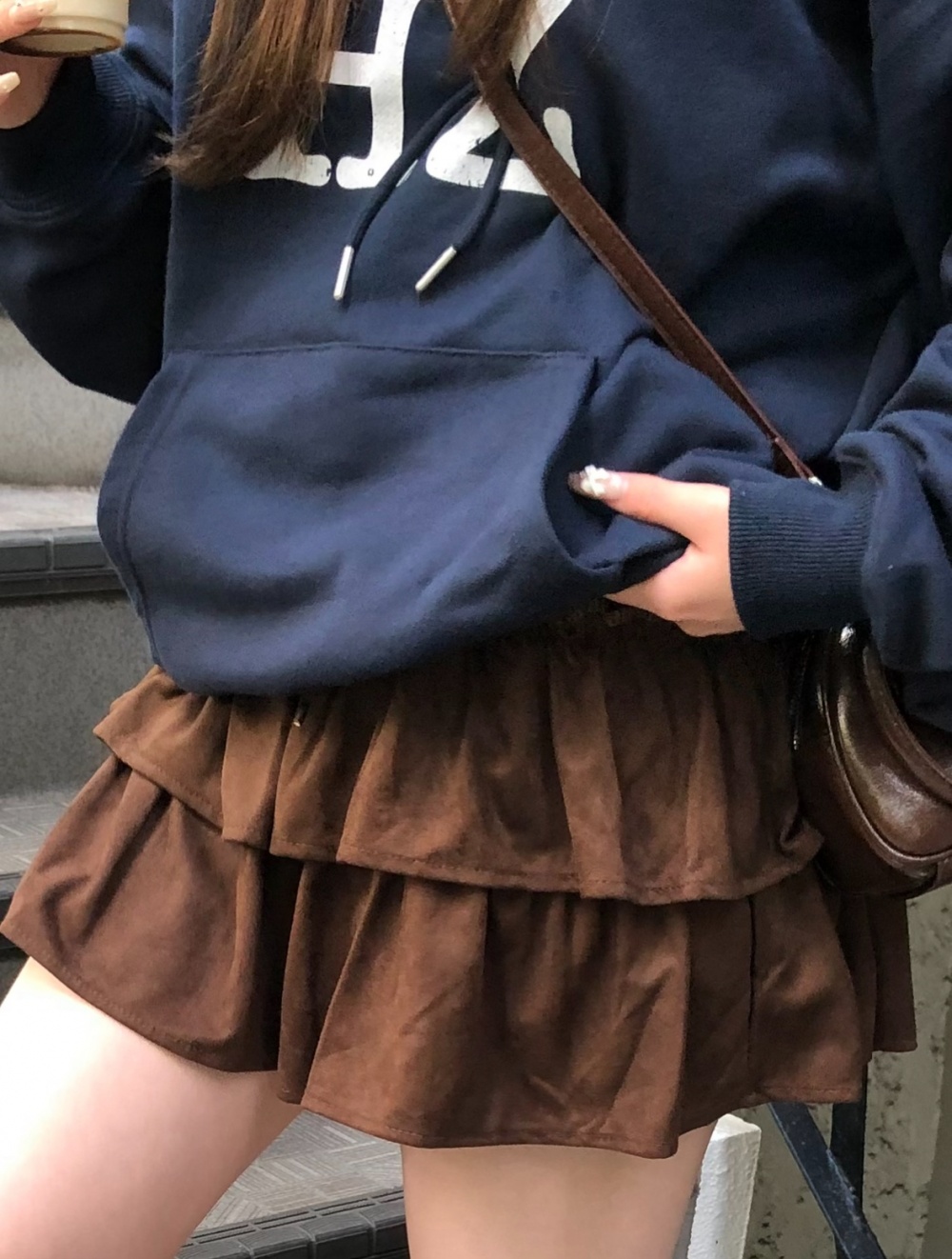 SSK24444 스웨이드 캉캉 프릴 미니 스커트