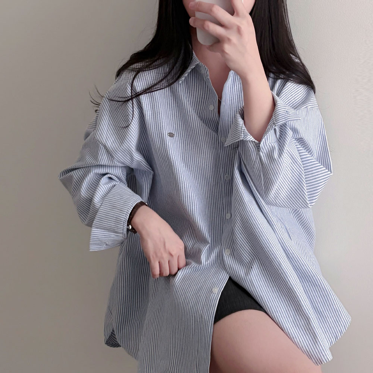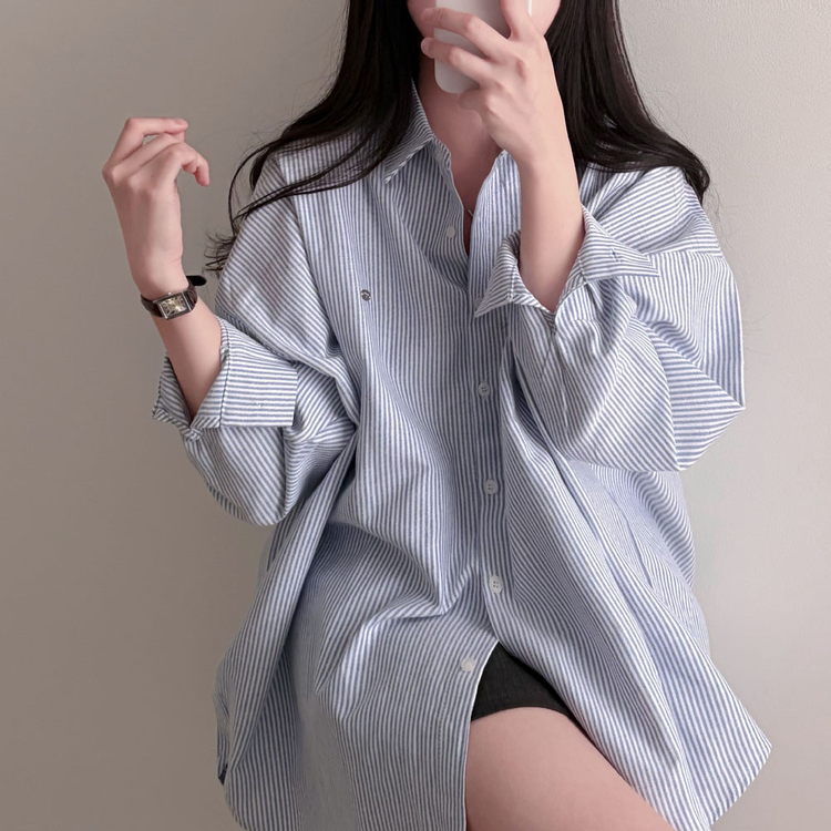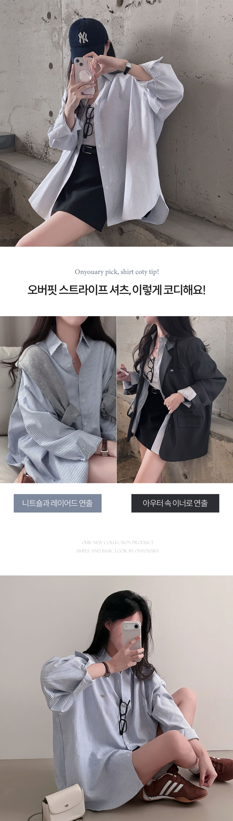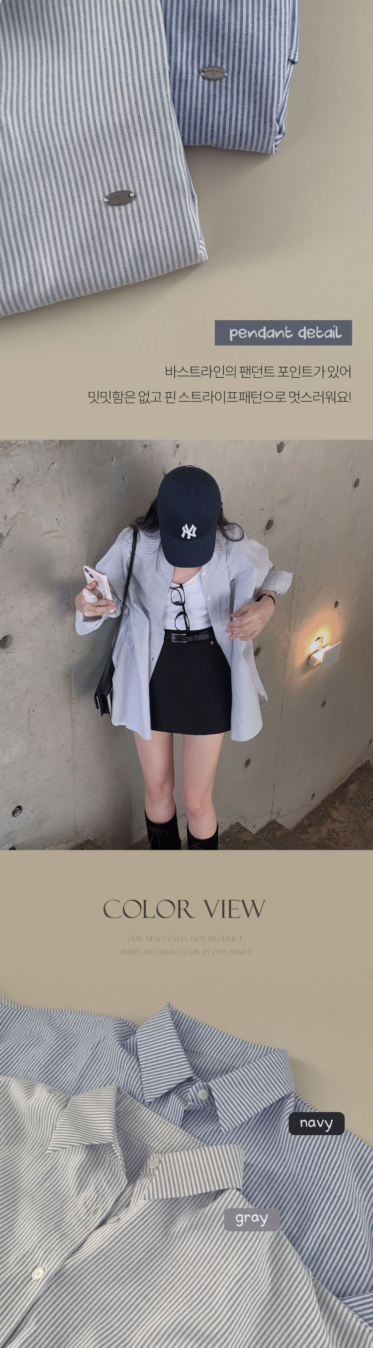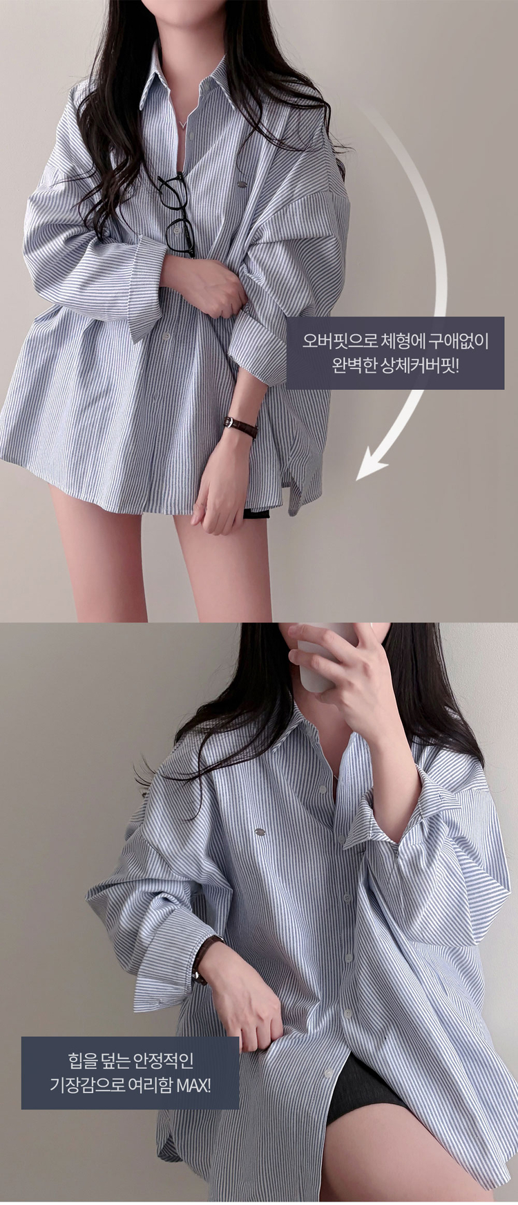 SBS29988 옥스포드 소재로 탄탄한스트라이프 왕오버핏 팬던트 셔츠 남방
