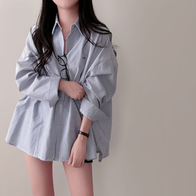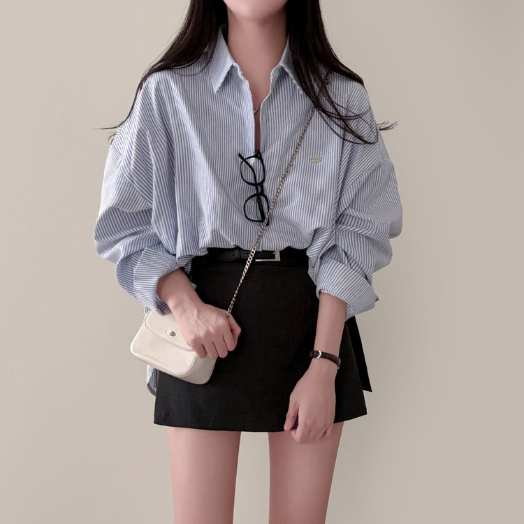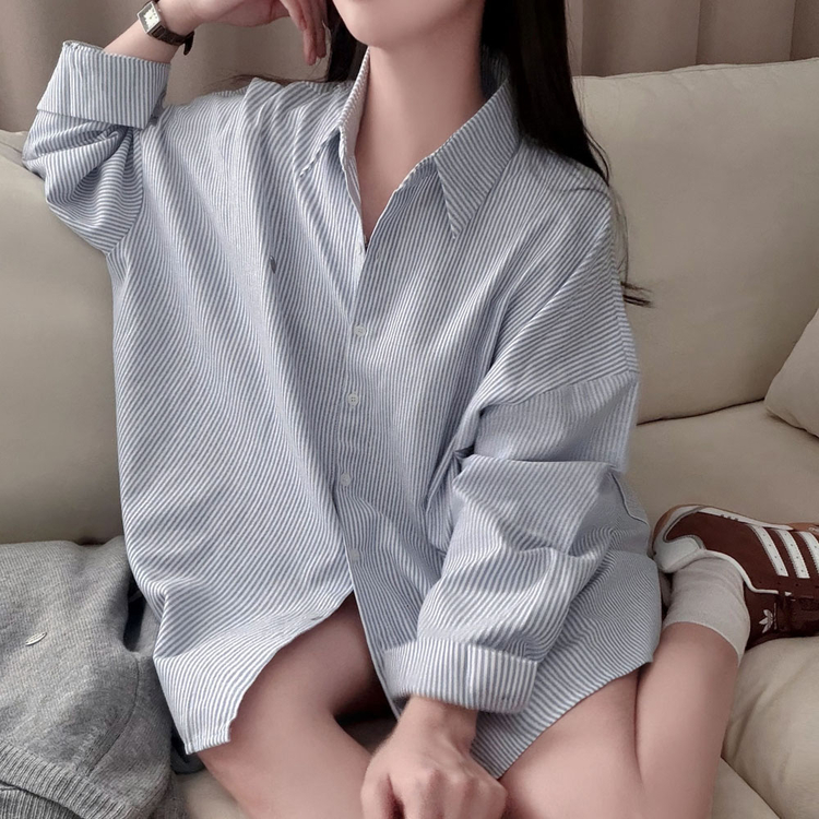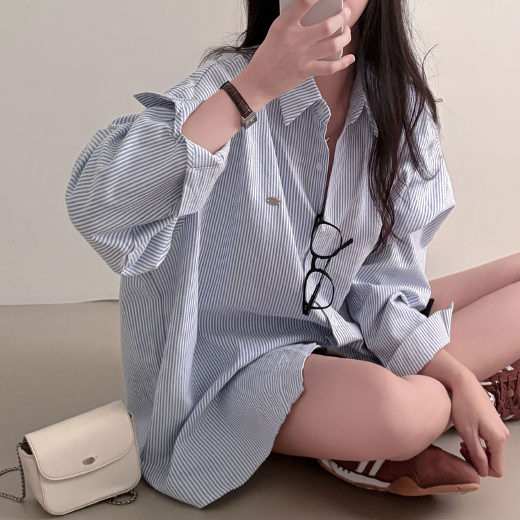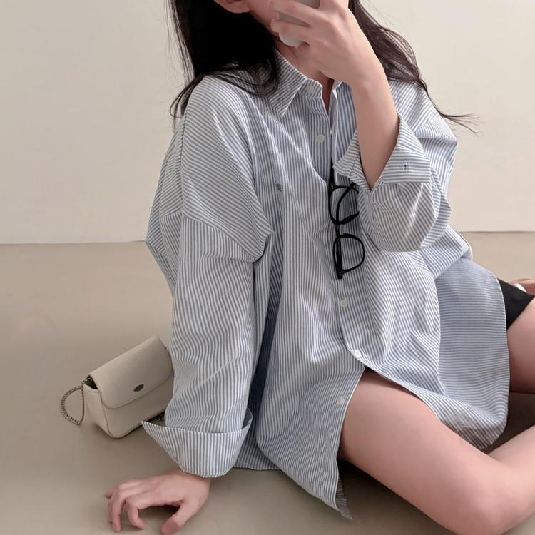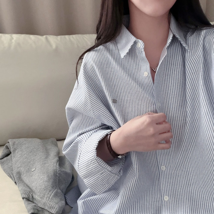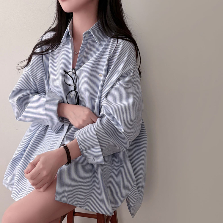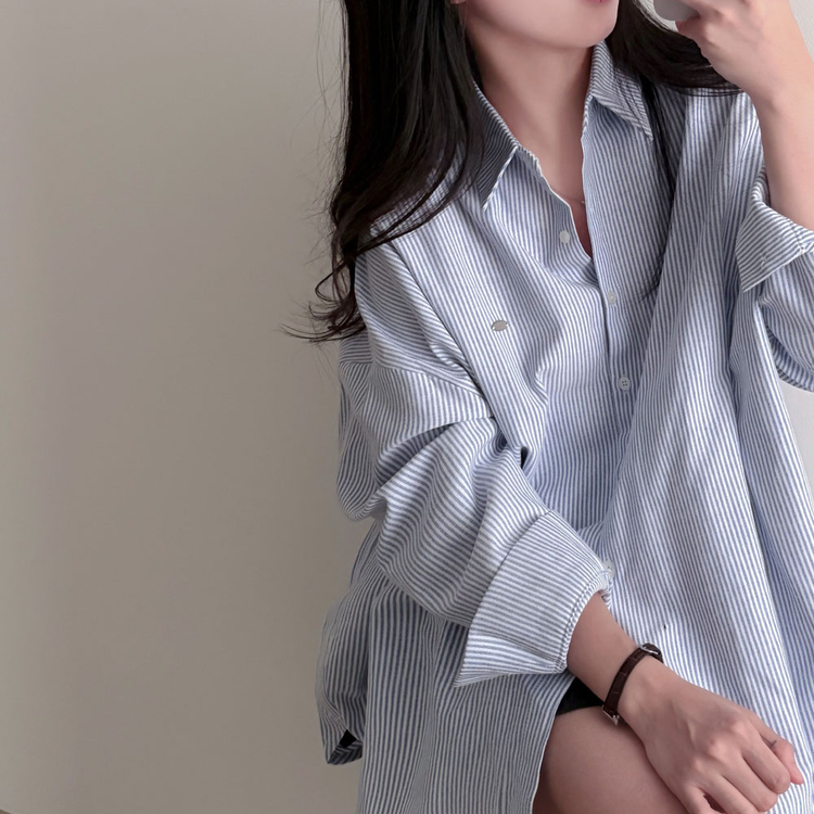 SBS29988 옥스포드 소재로 탄탄한스트라이프 왕오버핏 팬던트 셔츠 남방