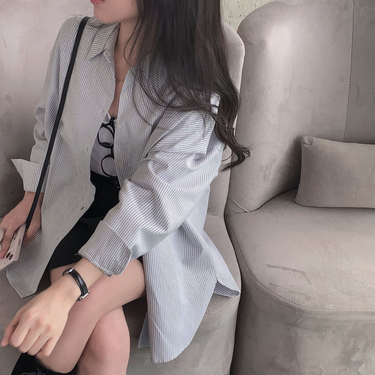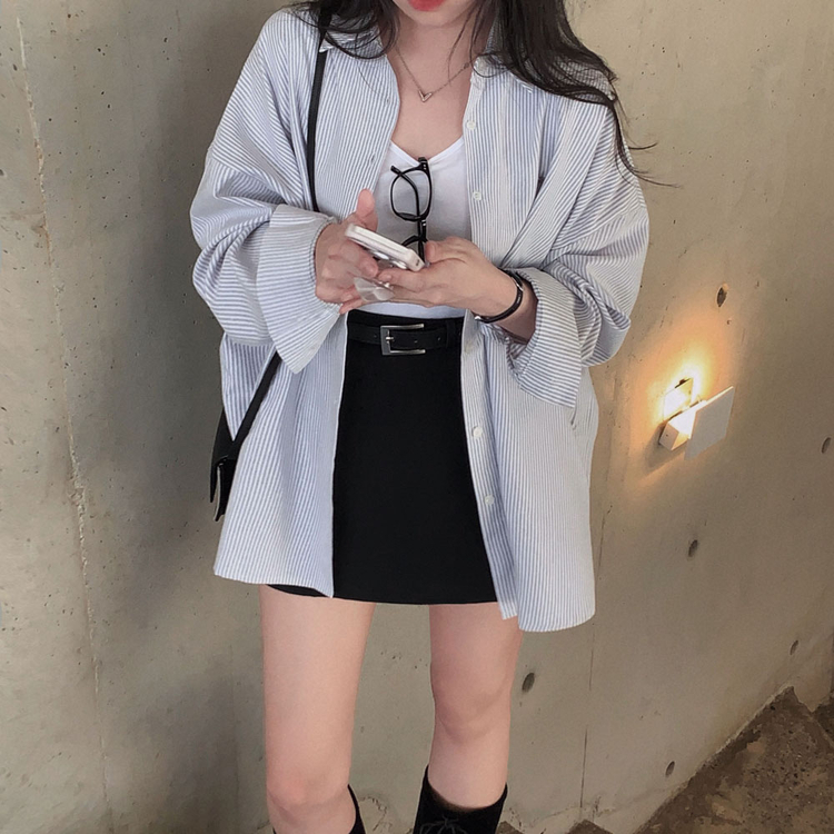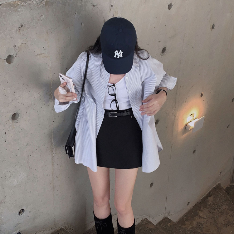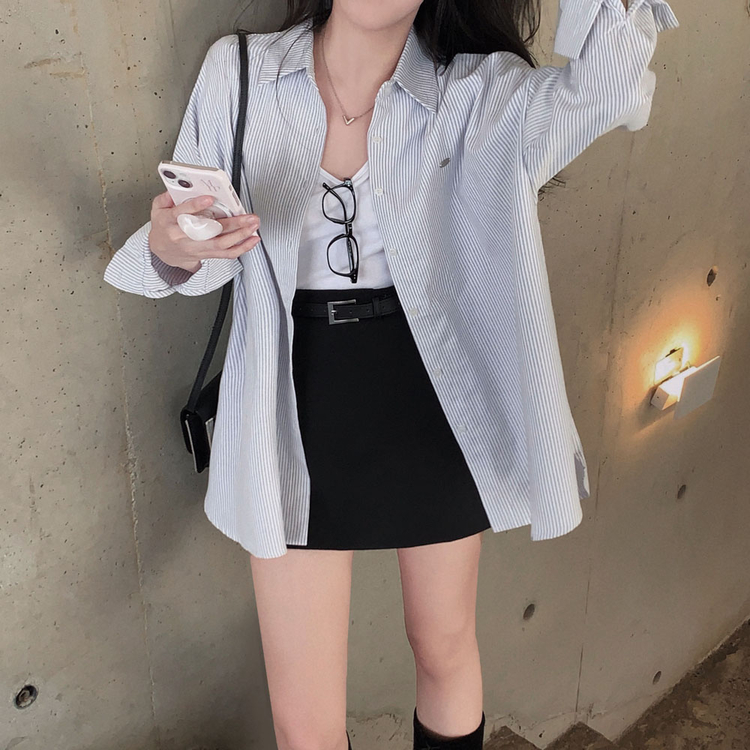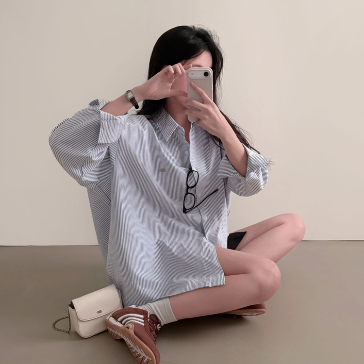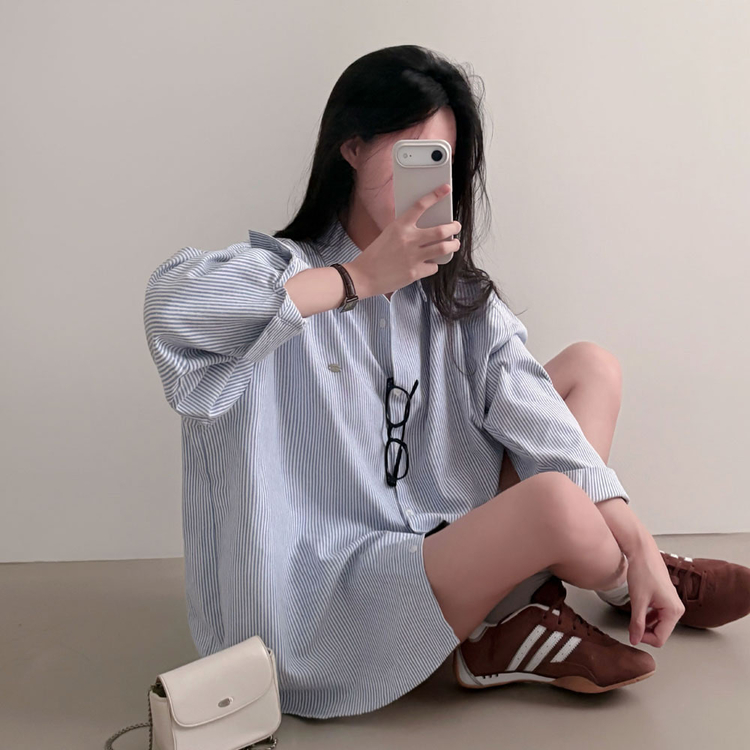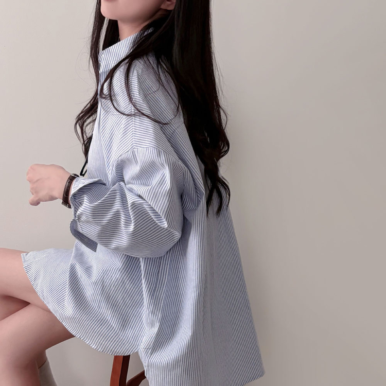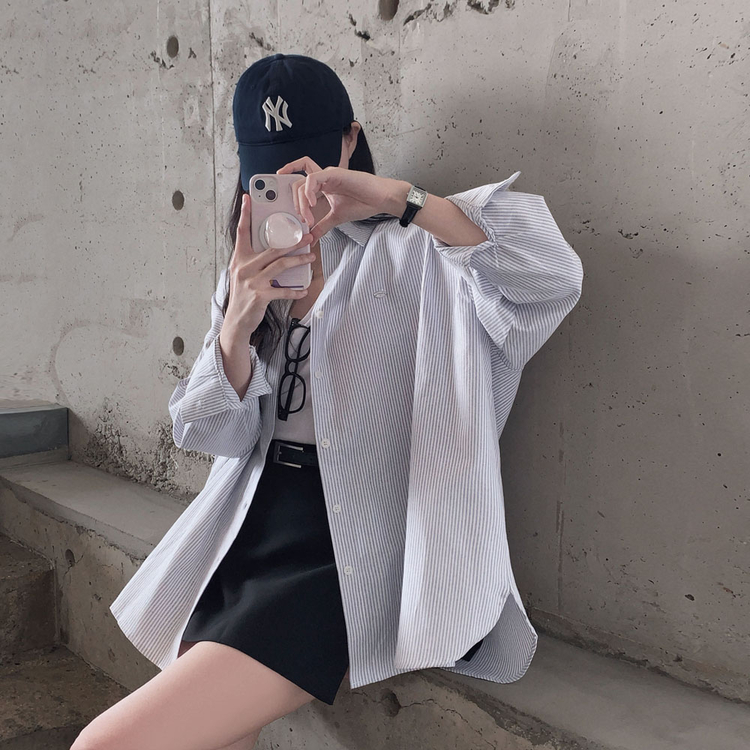 SBS29988 옥스포드 소재로 탄탄한스트라이프 왕오버핏 팬던트 셔츠 남방