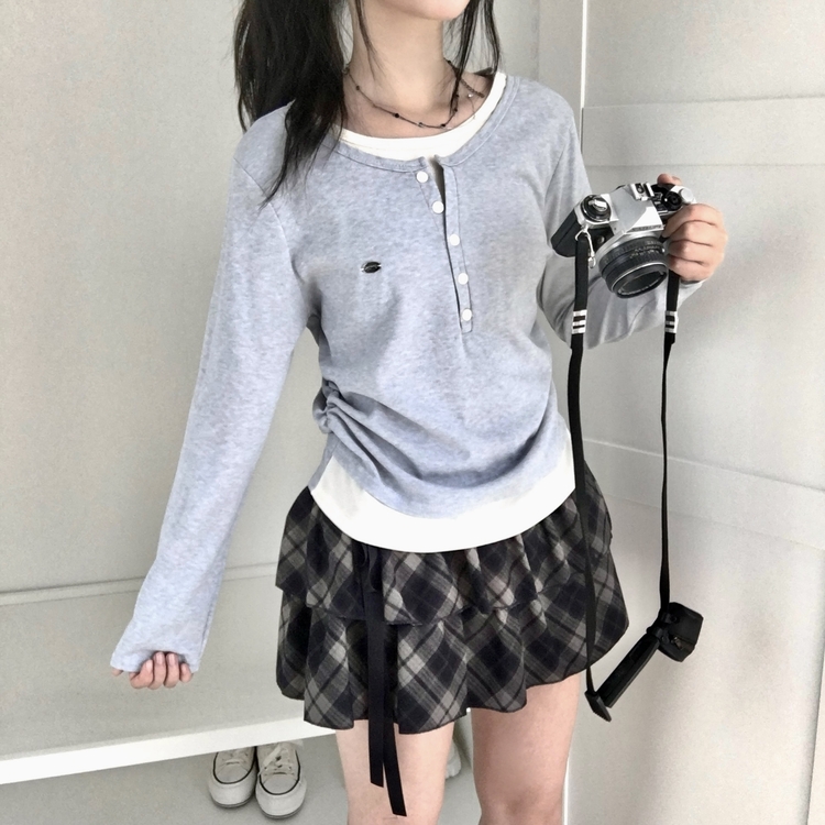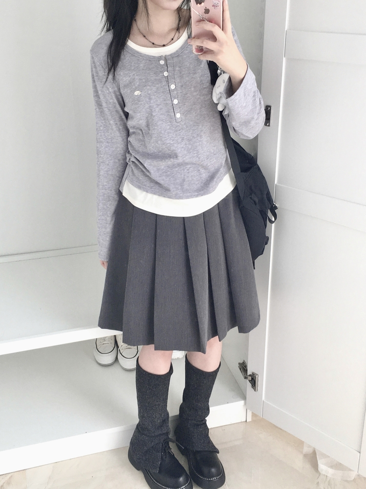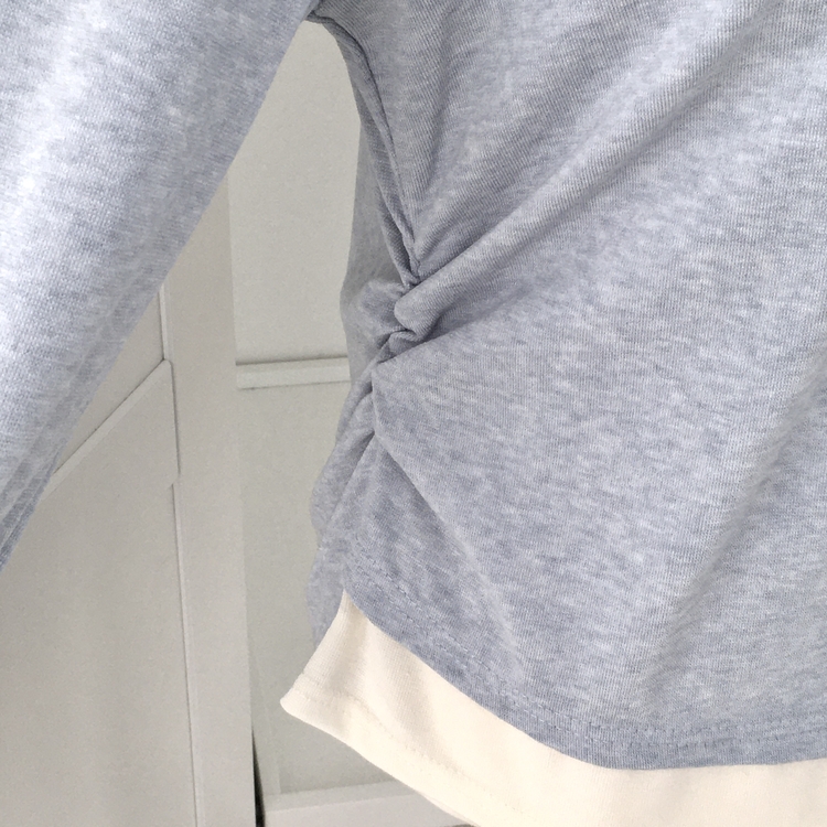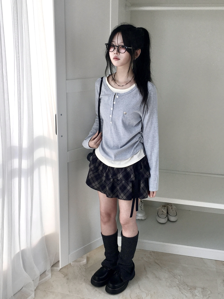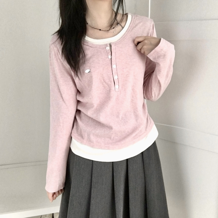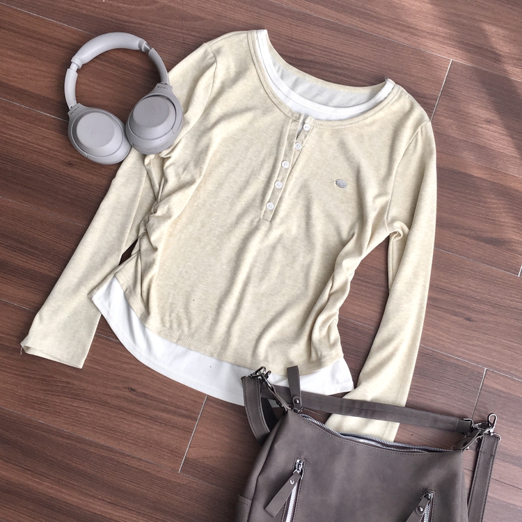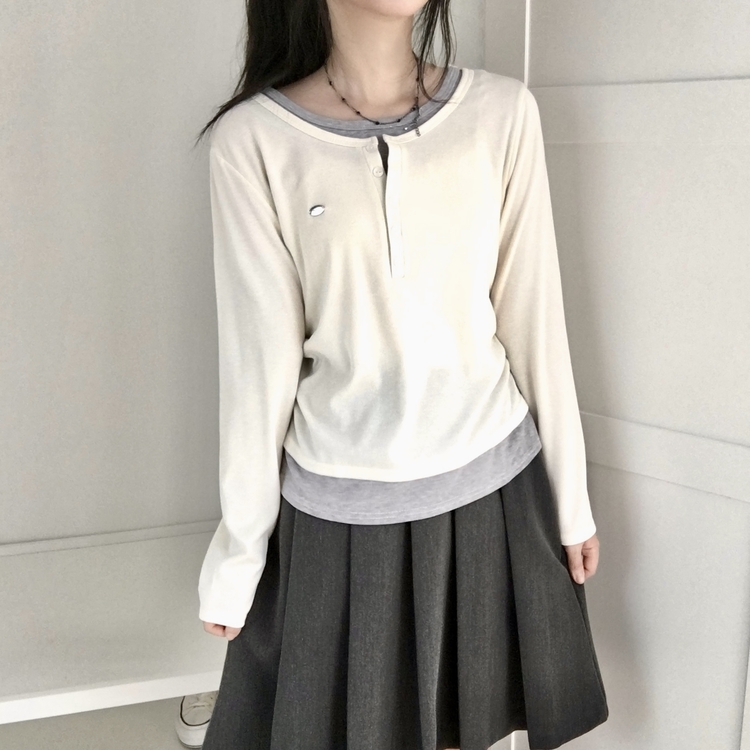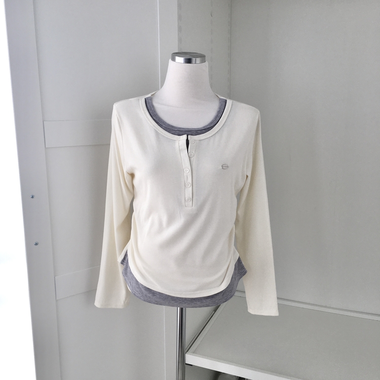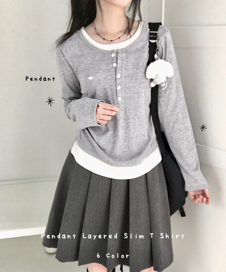 STS72548 말라보이는 사이드 셔링 팬던트 레이어드 버튼 긴팔티셔츠