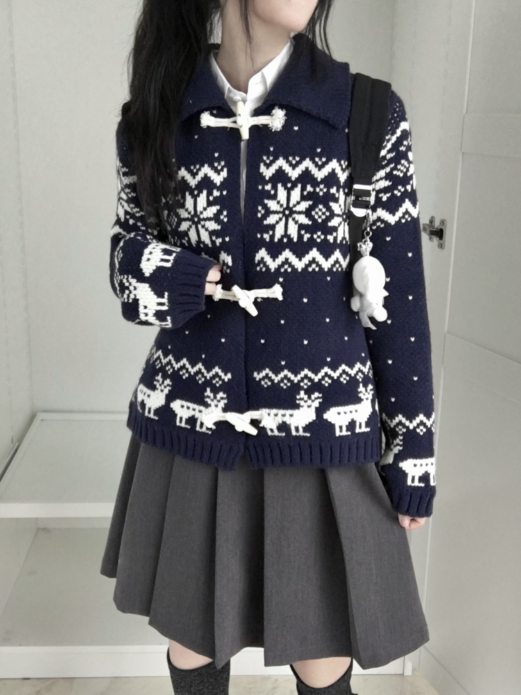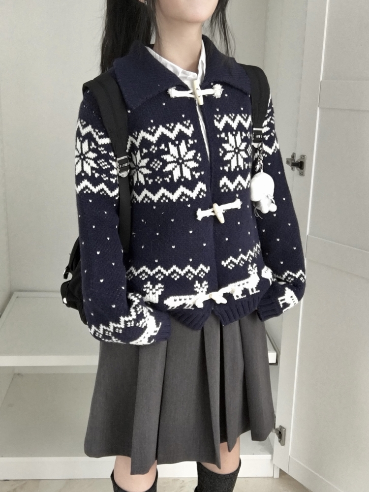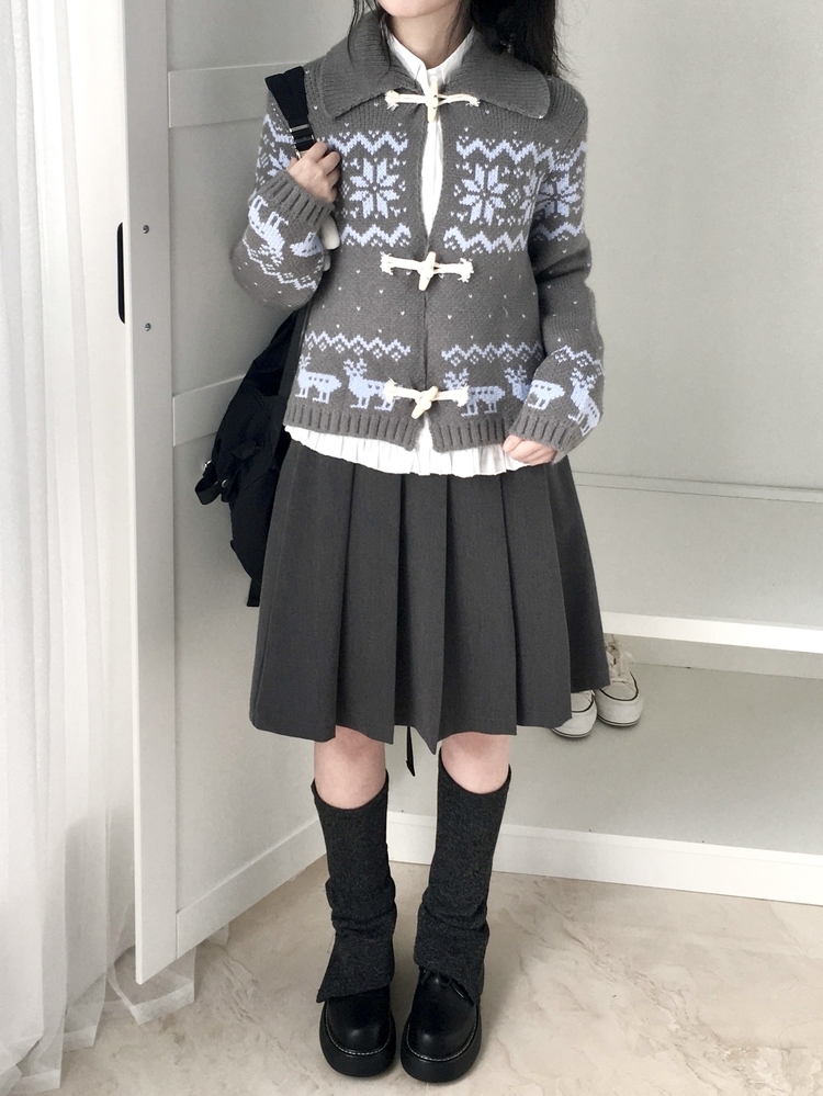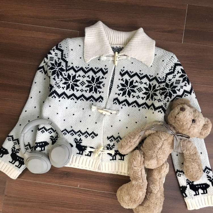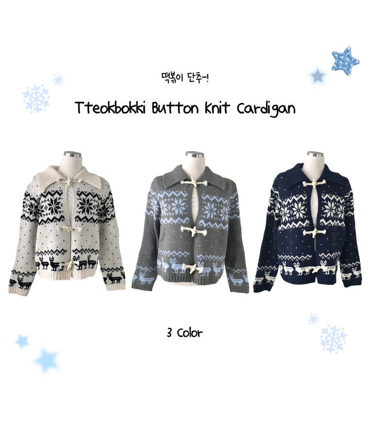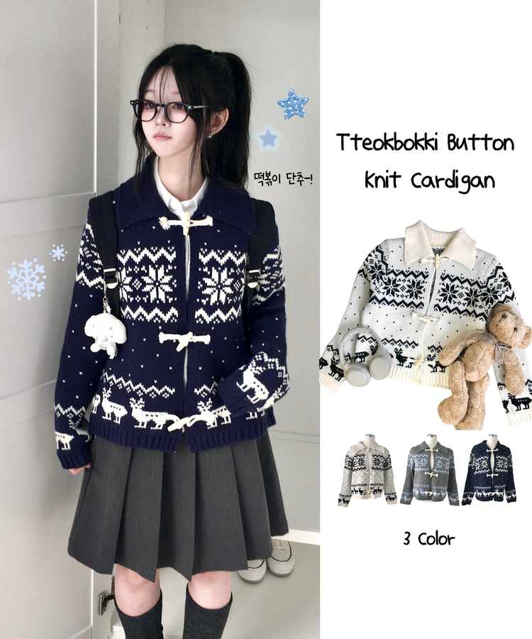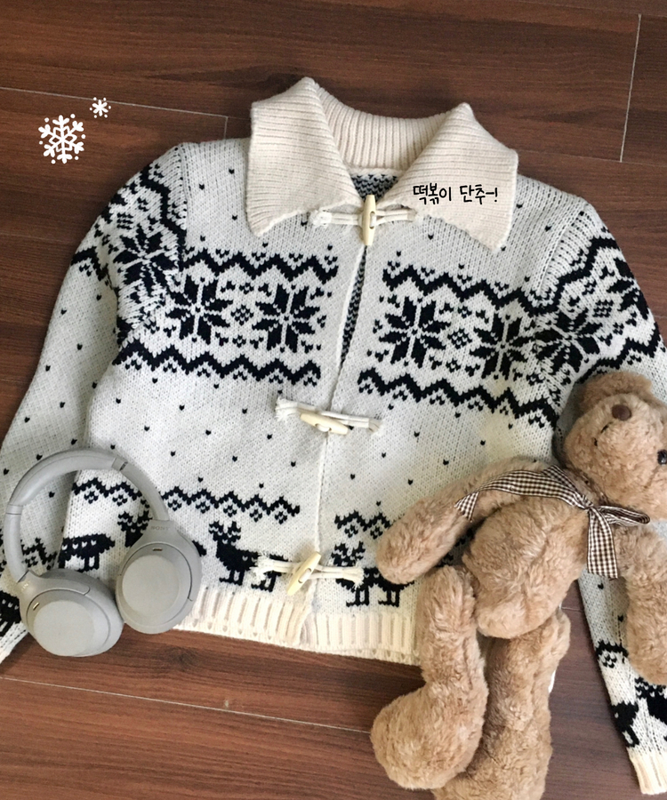 SGD28987 도톰 코위찬 떡볶이 버튼 노르딕 눈꽃 루돌프 카라 니트 가디건