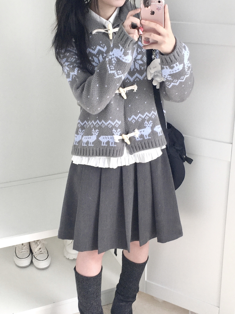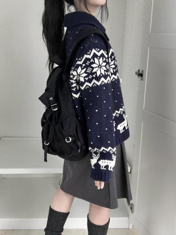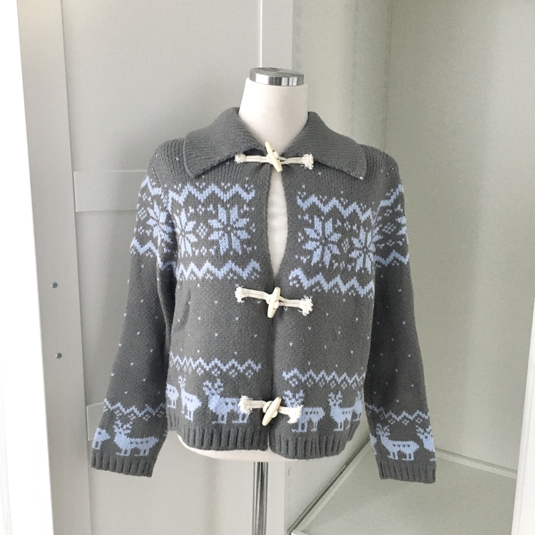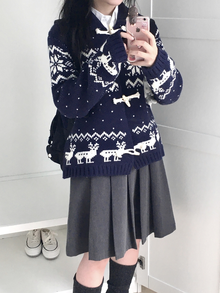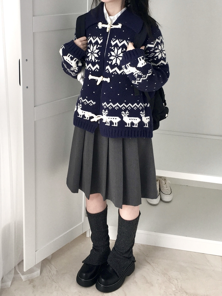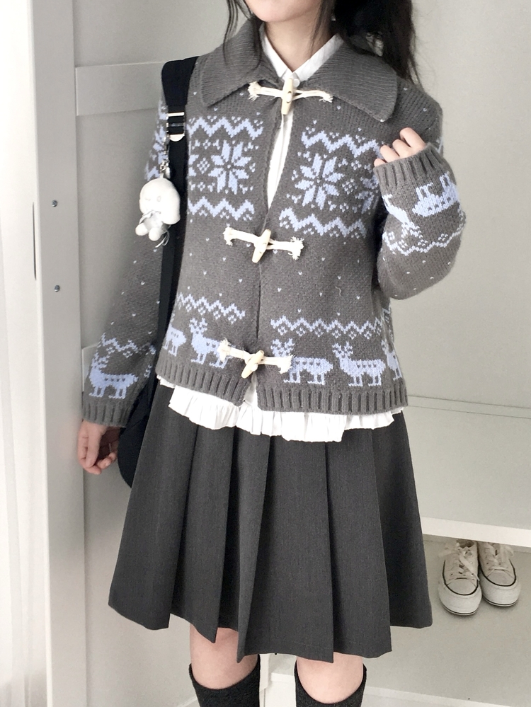 SGD28987 도톰 코위찬 떡볶이 버튼 노르딕 눈꽃 루돌프 카라 니트 가디건