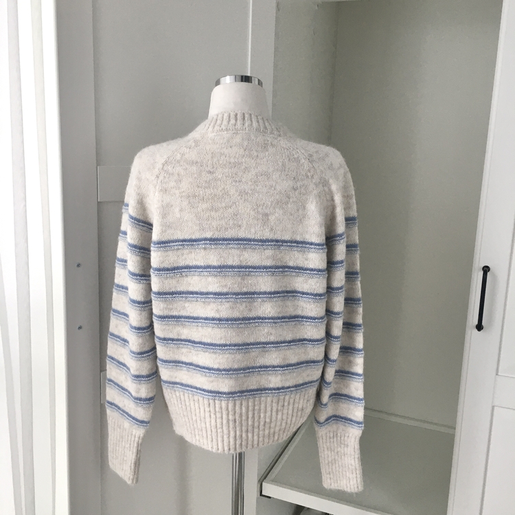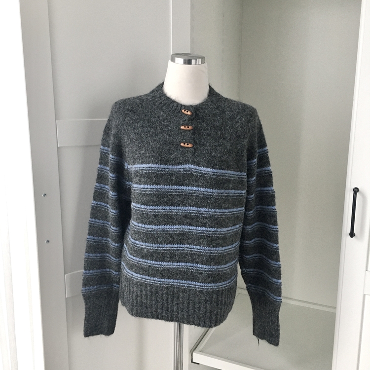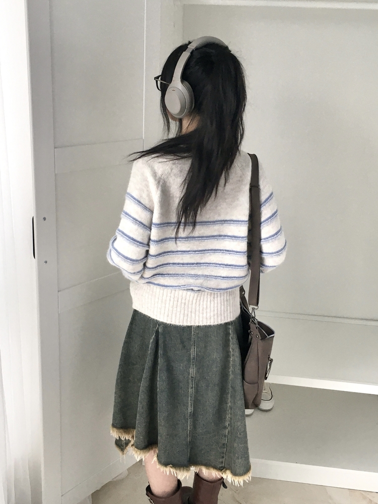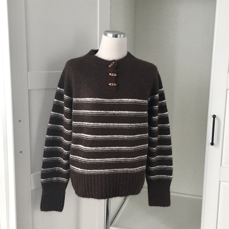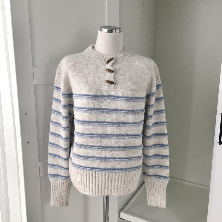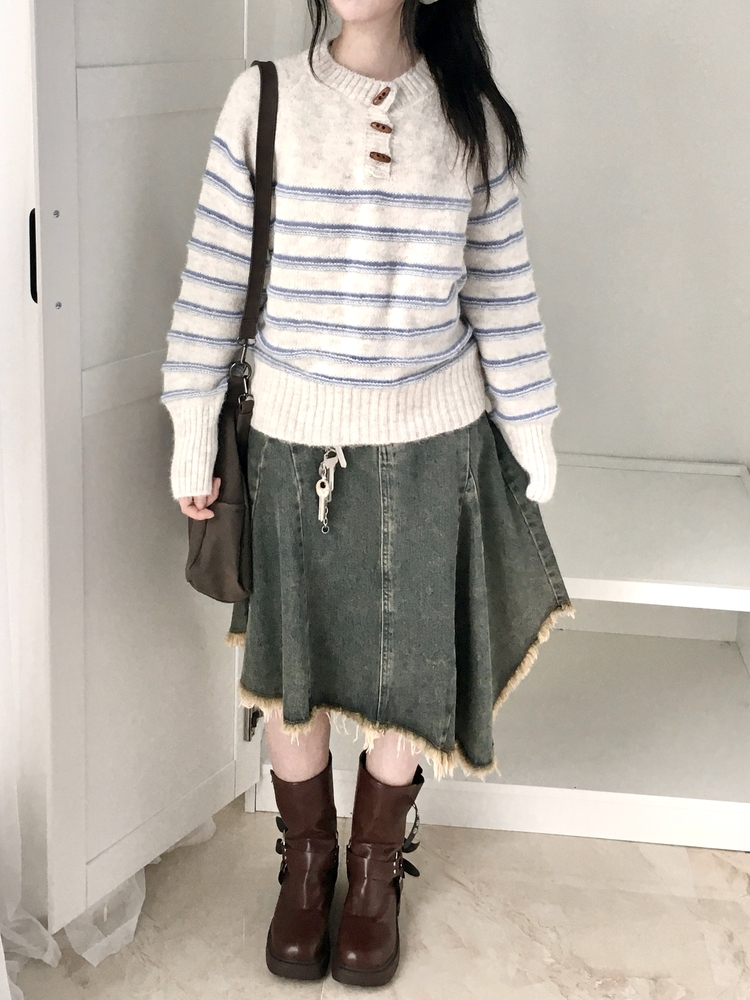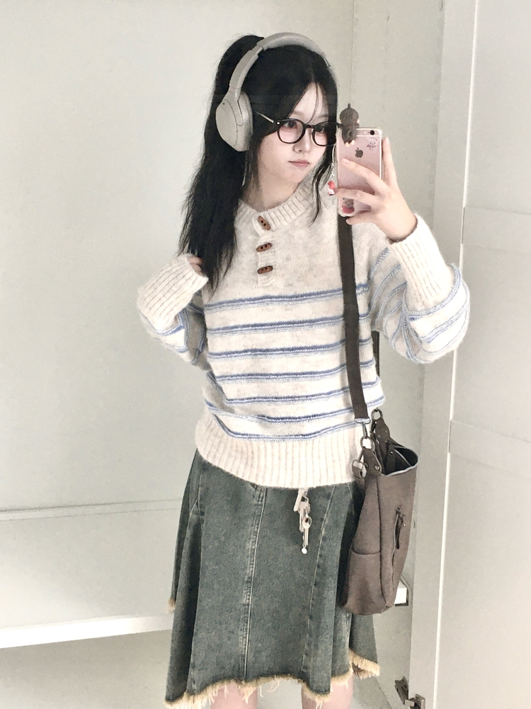 SNT32384 떡볶이 버튼 스트라이프 라운드넥 아방 루즈핏 니트