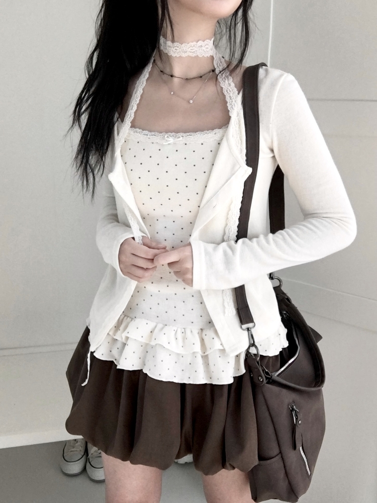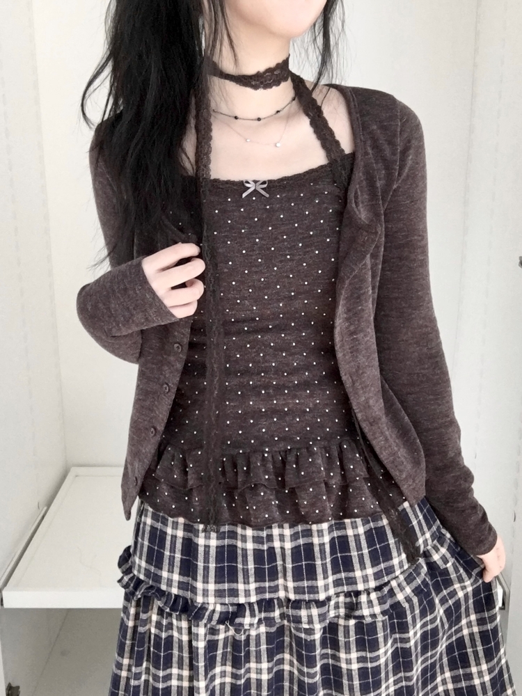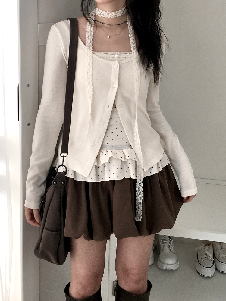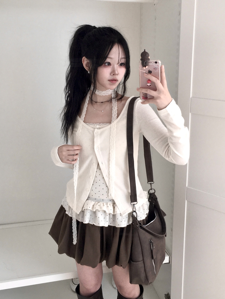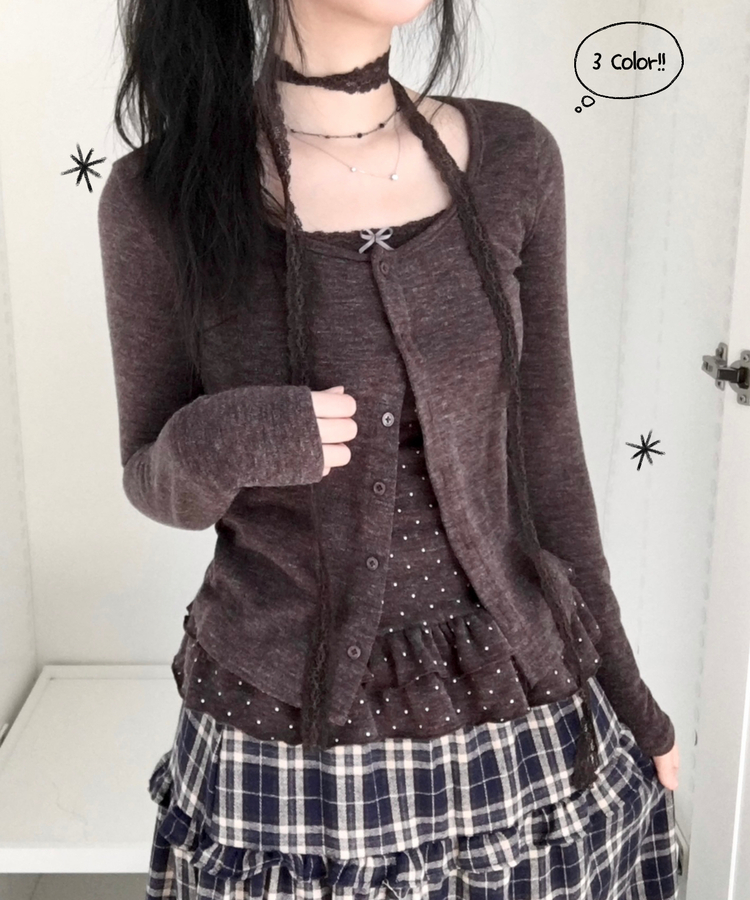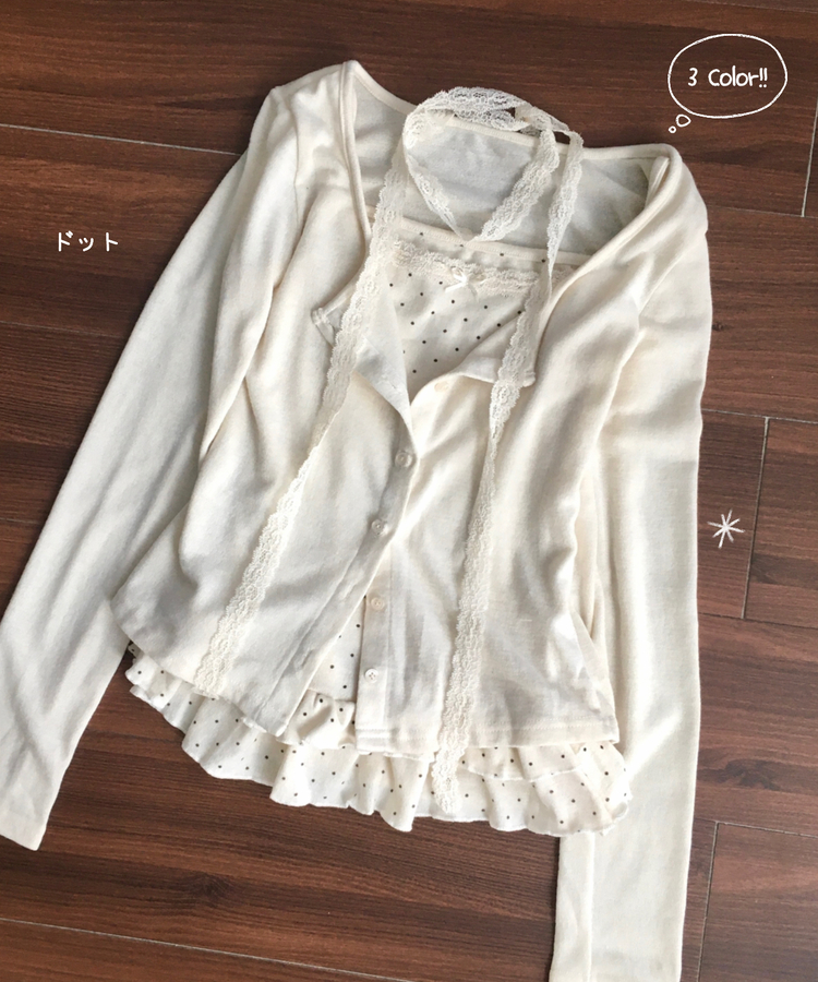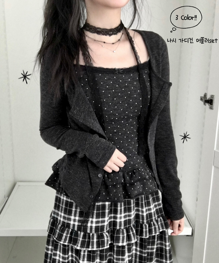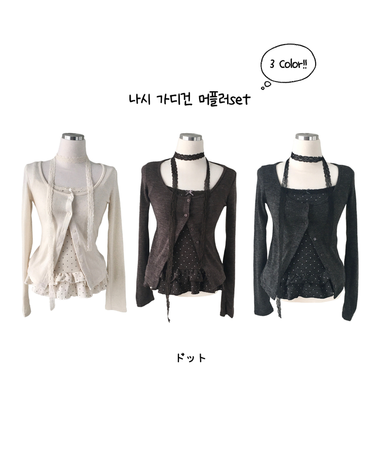SGD29034 빈티지 여리핏 프릴 가디건 도트 레이어드 나시 머플러 세트