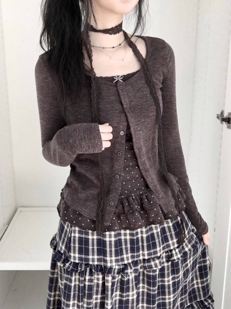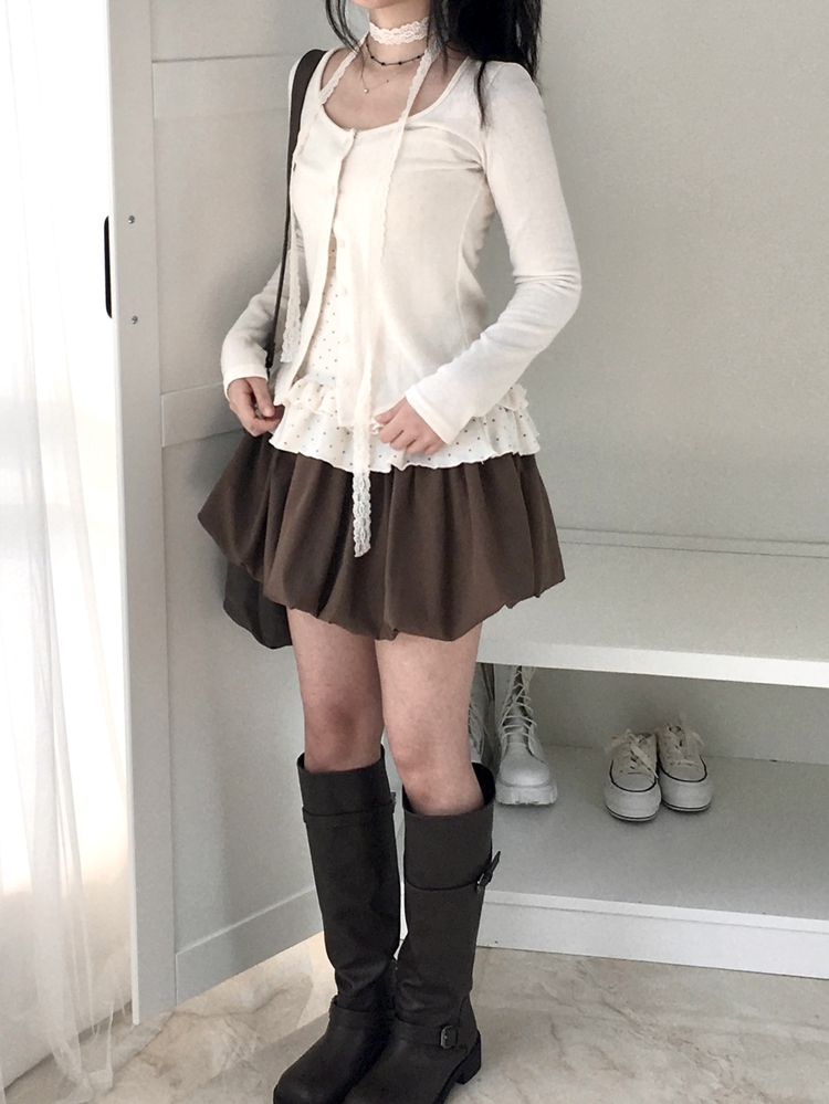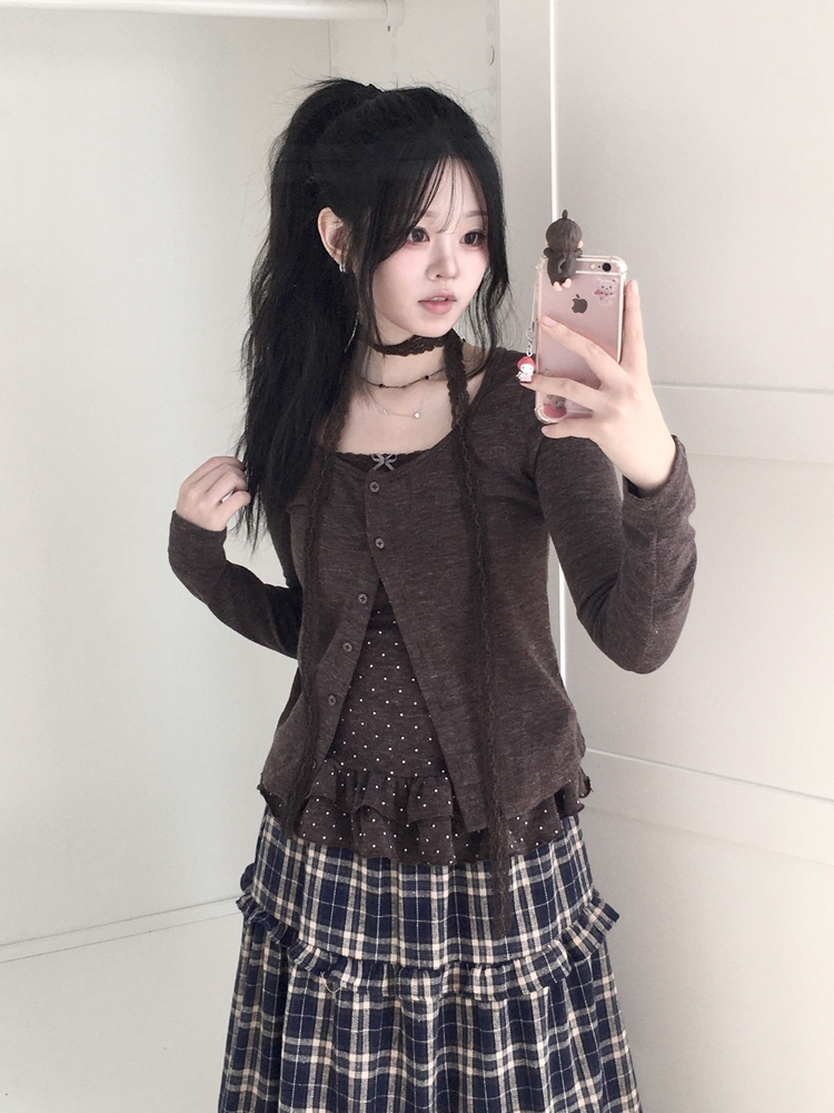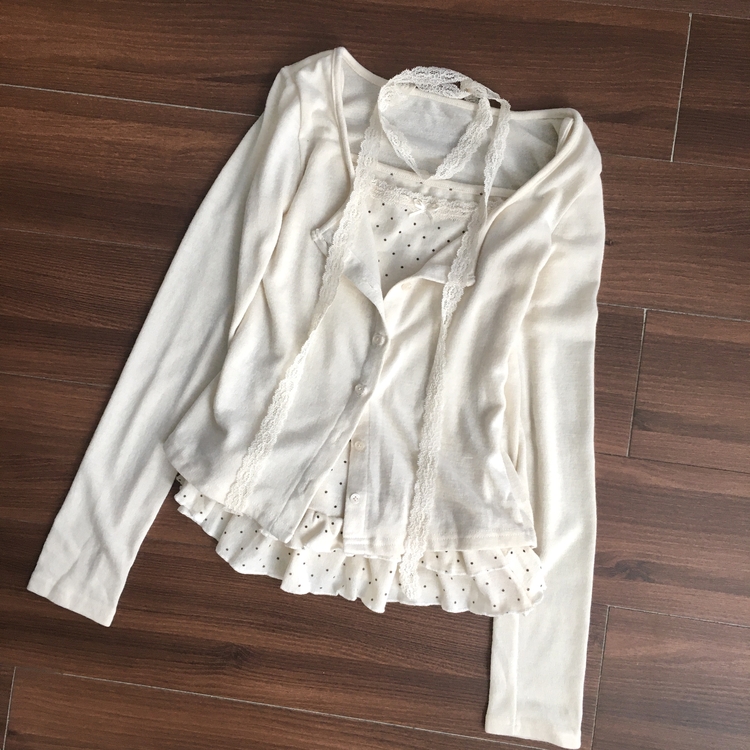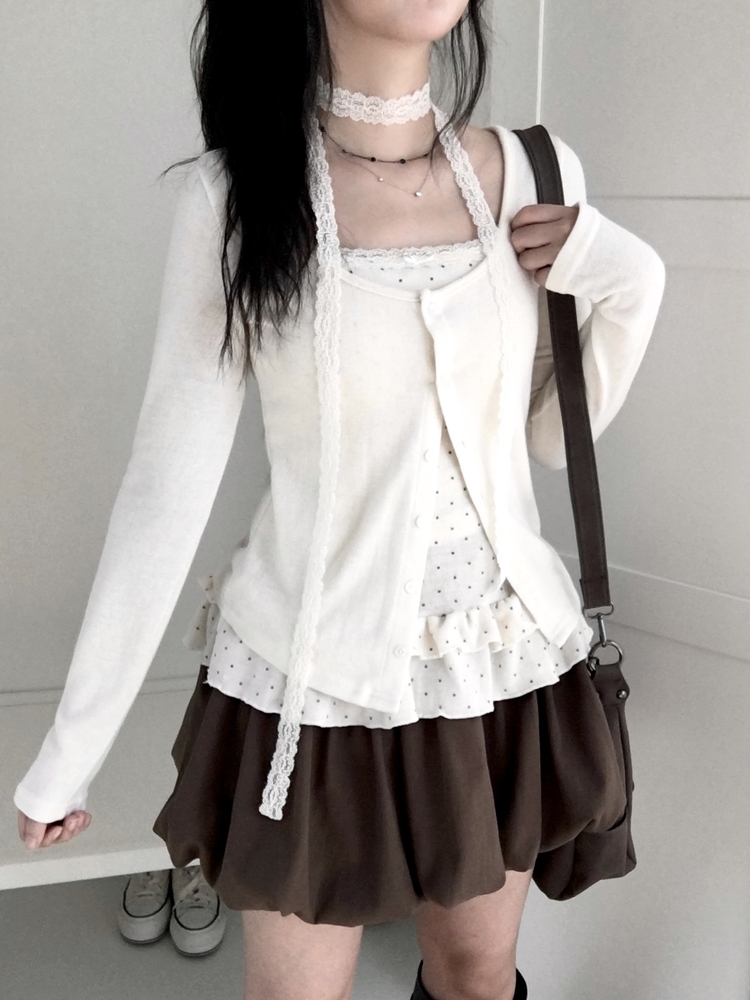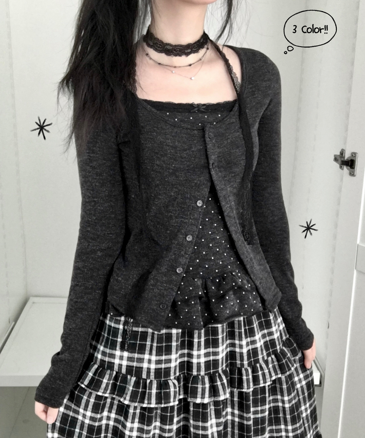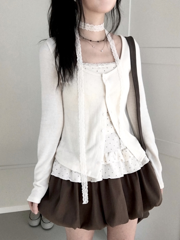 SGD29034 빈티지 여리핏 프릴 가디건 도트 레이어드 나시 머플러 세트