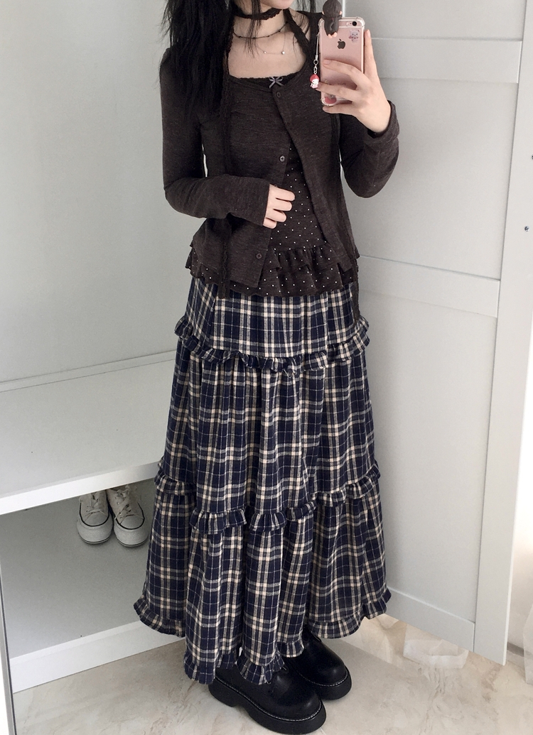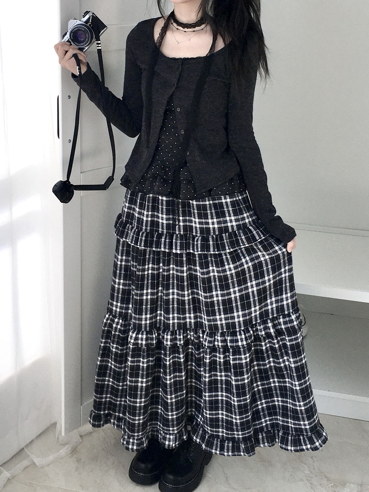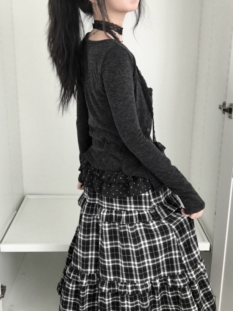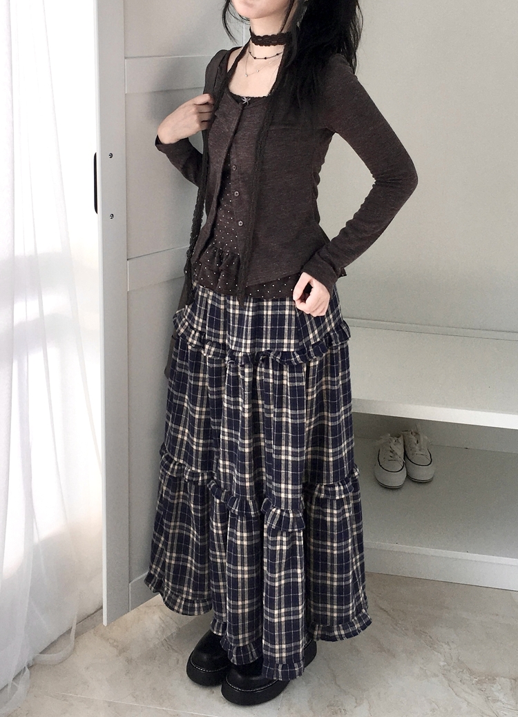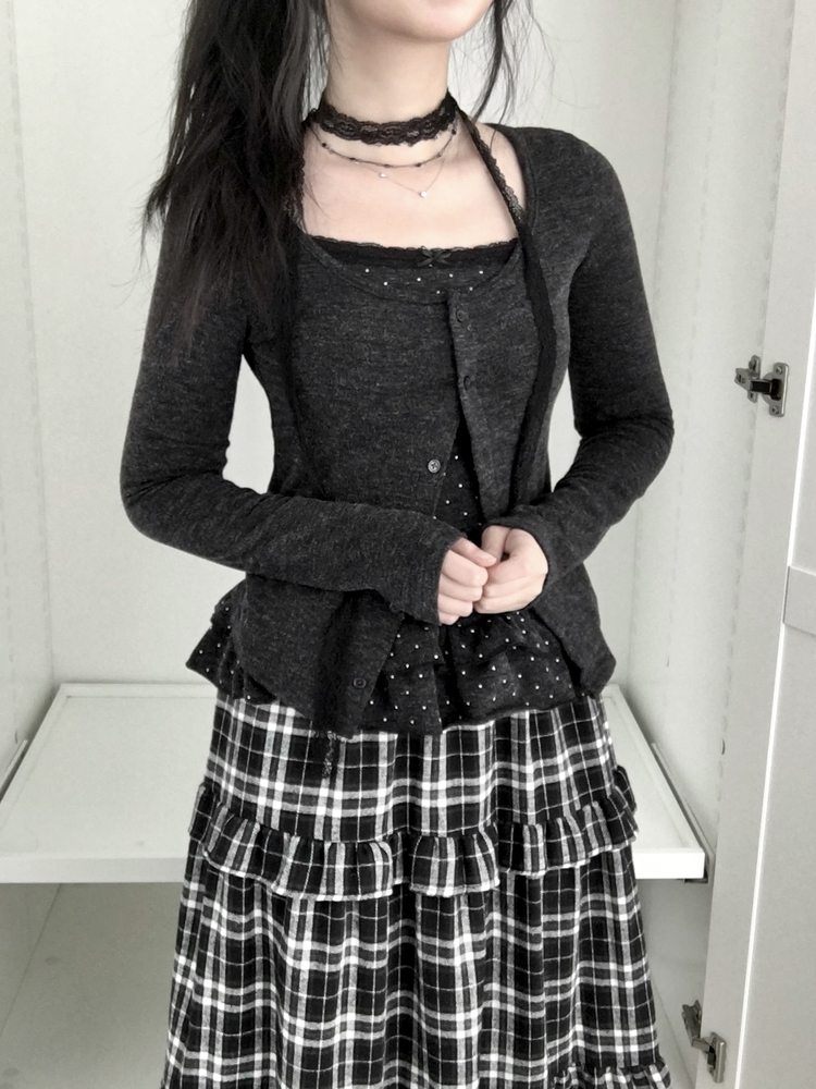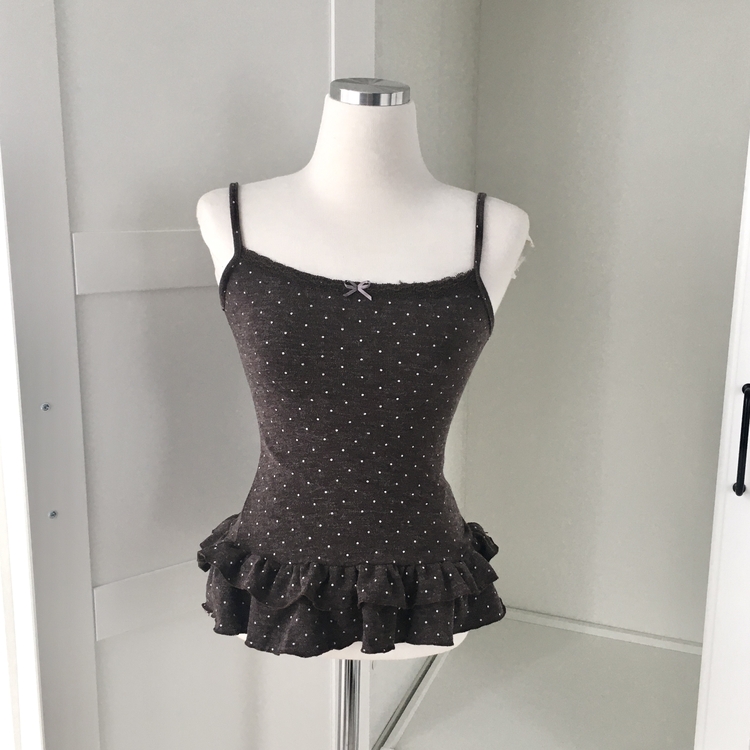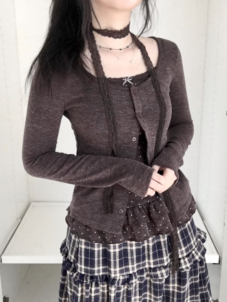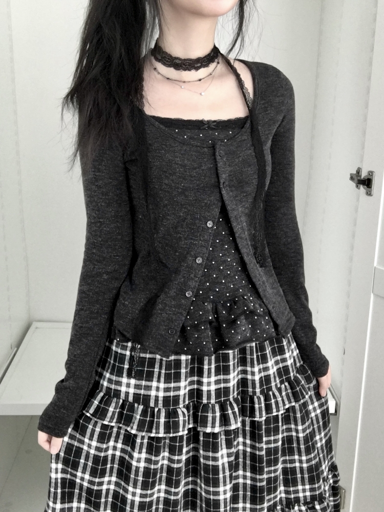 SGD29034 빈티지 여리핏 프릴 가디건 도트 레이어드 나시 머플러 세트