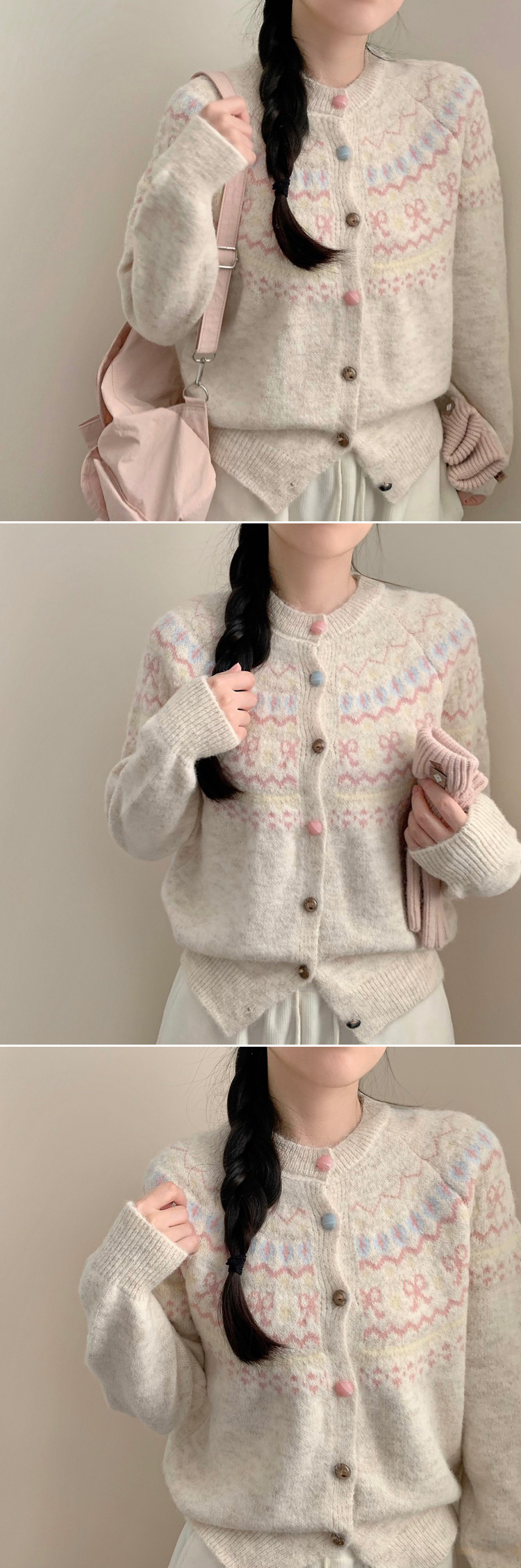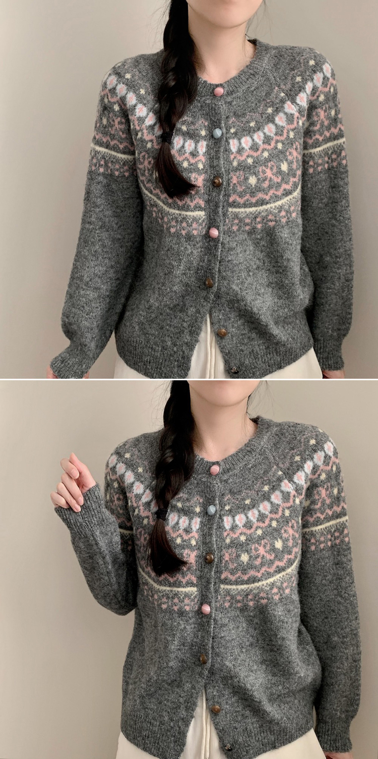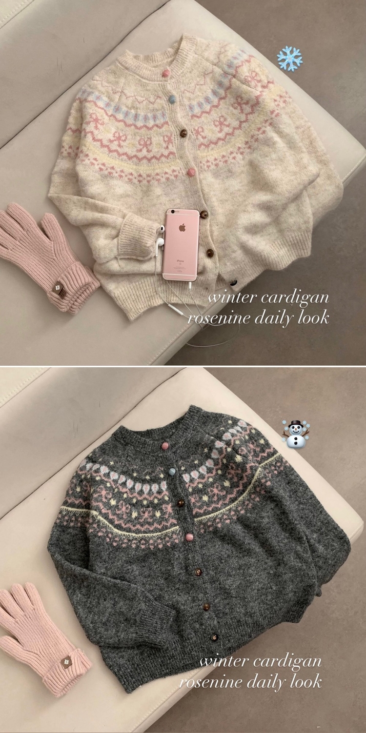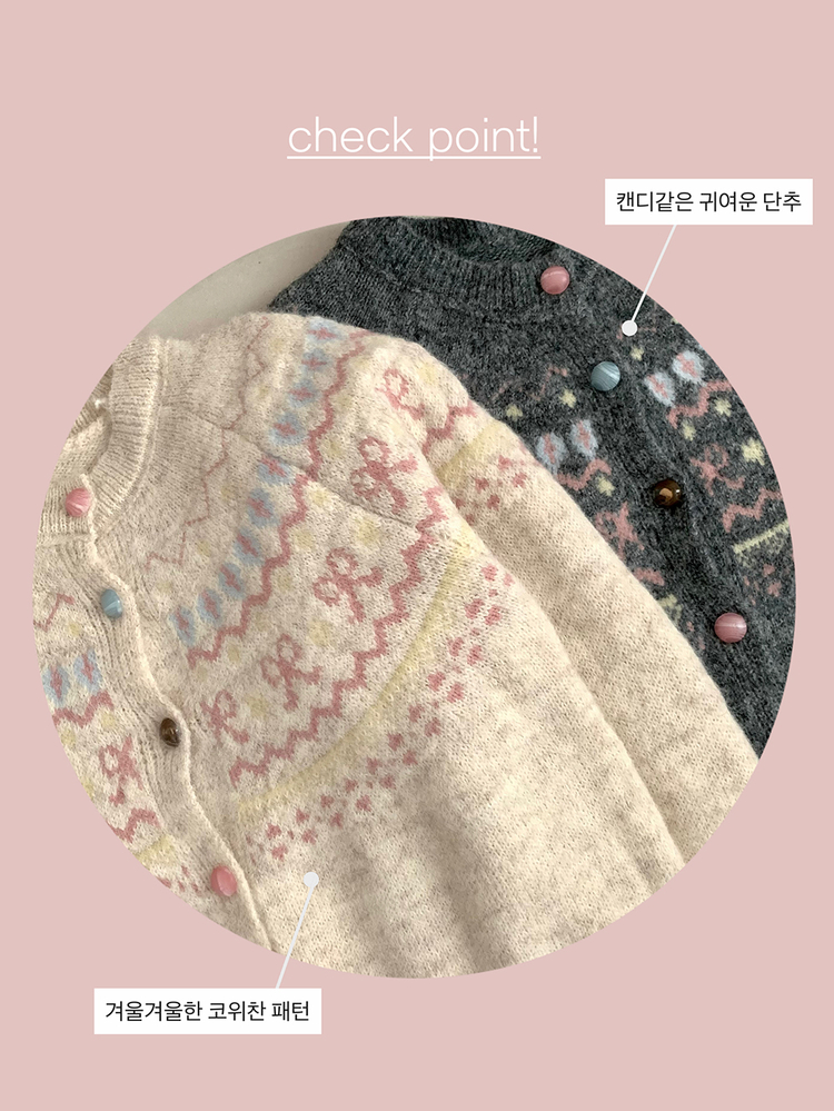 SGD28992 (귀요미) 핑크 캔디 코위찬 노르딕 패턴 겨울 니트 가디건 가을 가을옷 겨울옷 긴팔 아우터 (2color)
