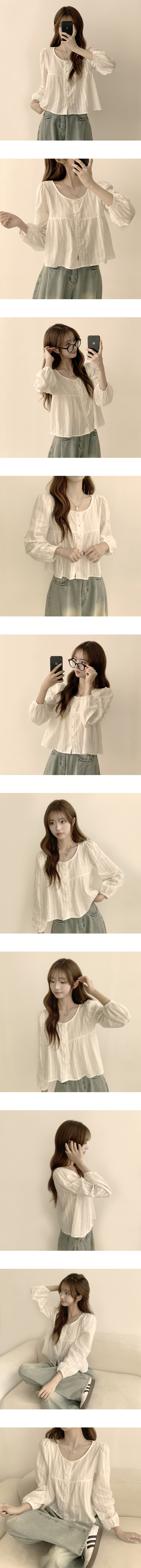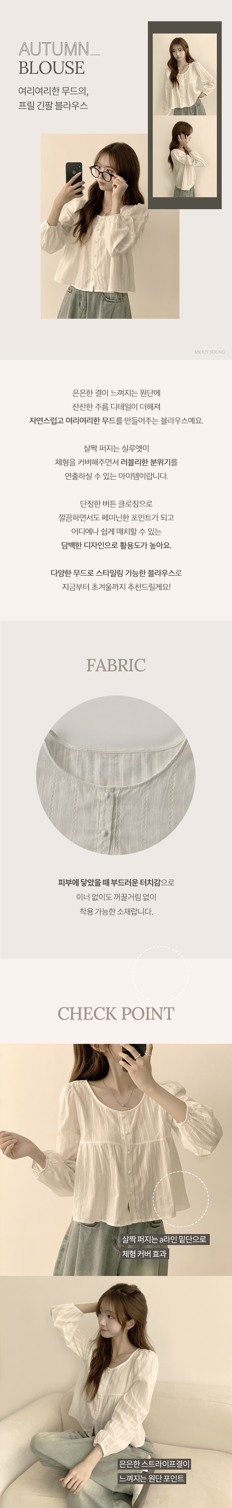 SBS30000 몽글 라운드 프릴 버튼 가을 긴팔 블라우스 소매 퍼프 하객룩 상의