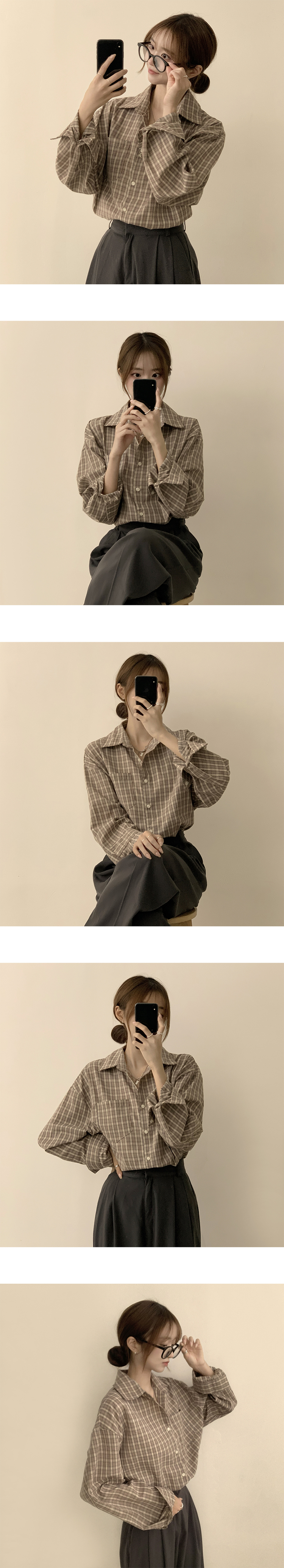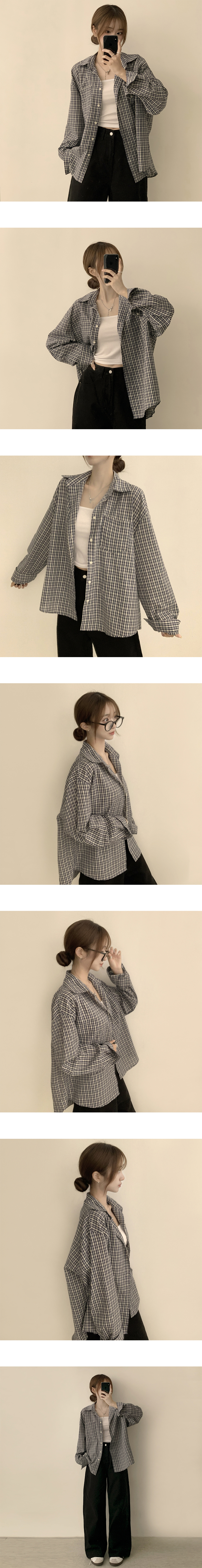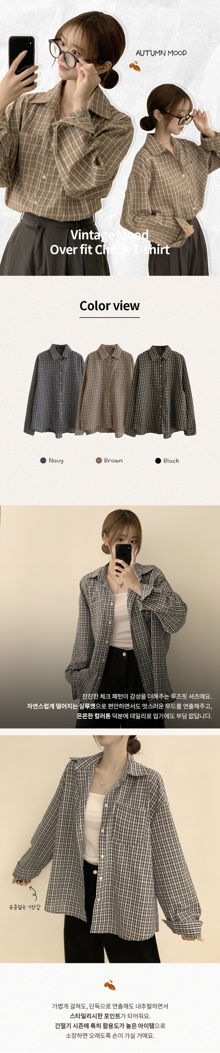 SBS30002 스미스 가을 카라 오버핏 빈티지 포켓 체크 셔츠 루즈핏 남방 긴팔