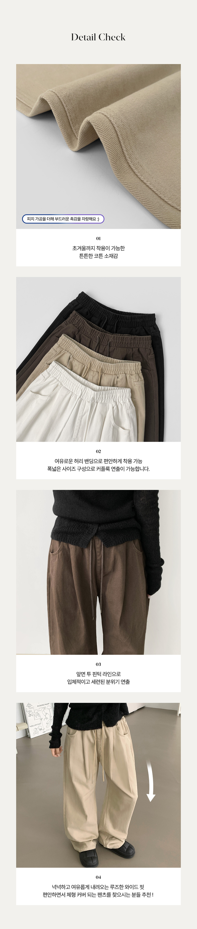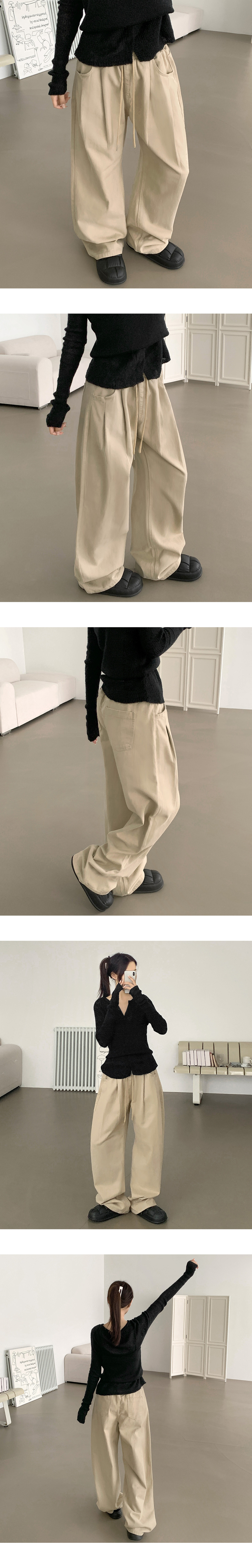 SPS36750 3XL어텀 피치 가공 핀턱 루즈 와이드핏 밴딩 면팬츠