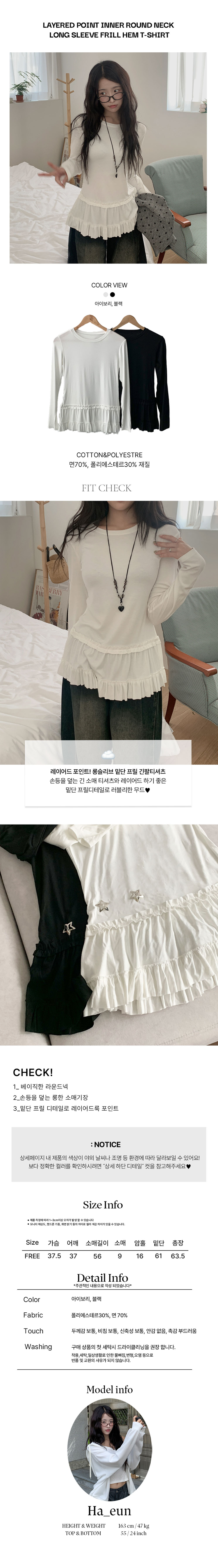 STS72640 레아틴 밑단 프릴 실키 긴팔 티셔츠