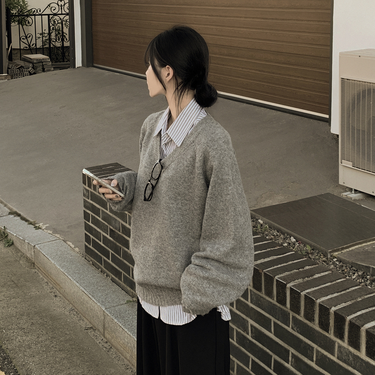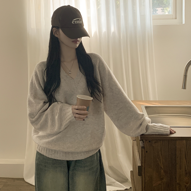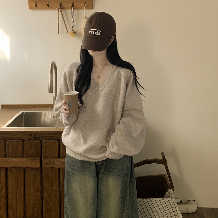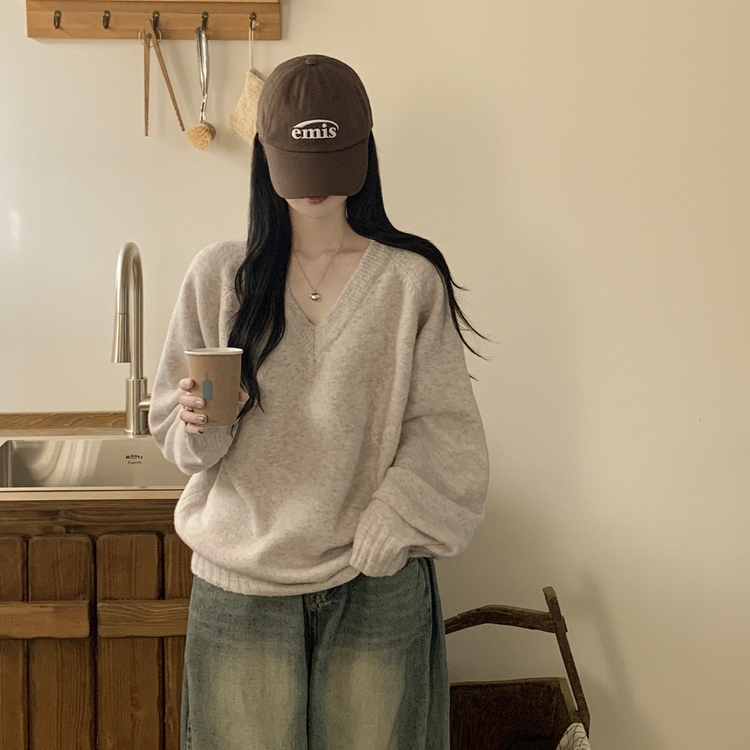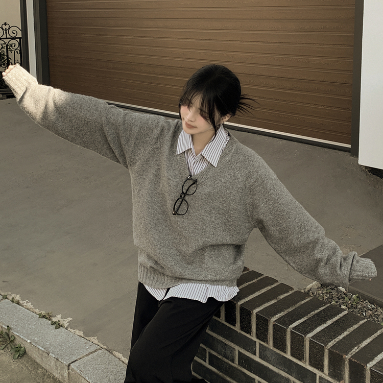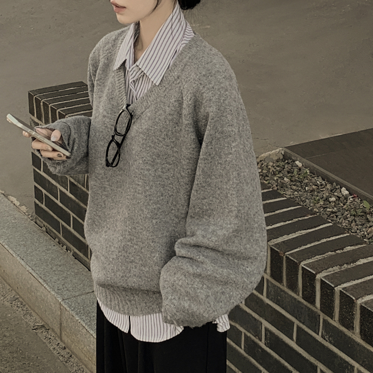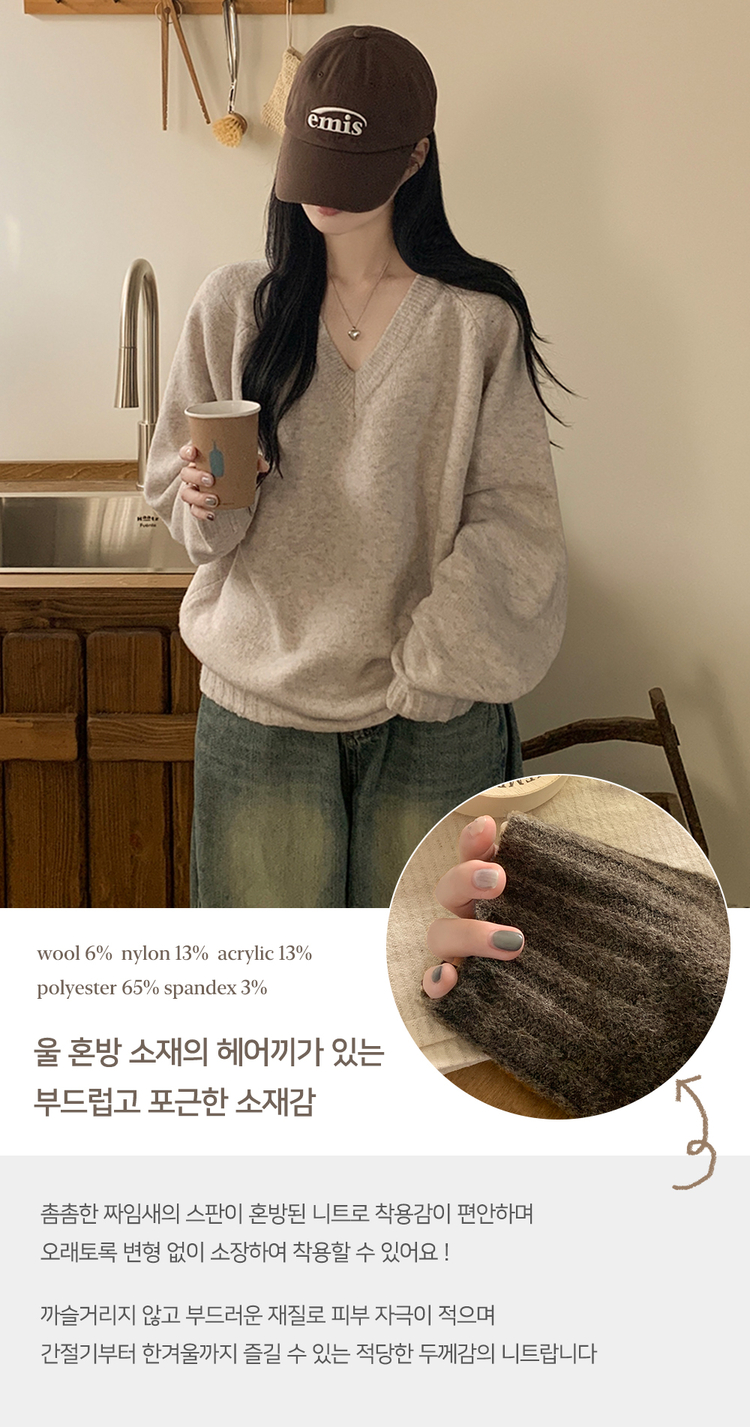 SNT32474 사이즈선택 도톰 나그랑 여리여리 오버핏 가을 겨울 오버핏 브이넥 니트