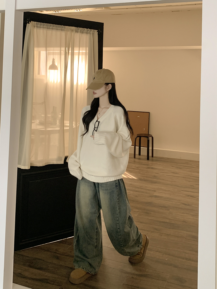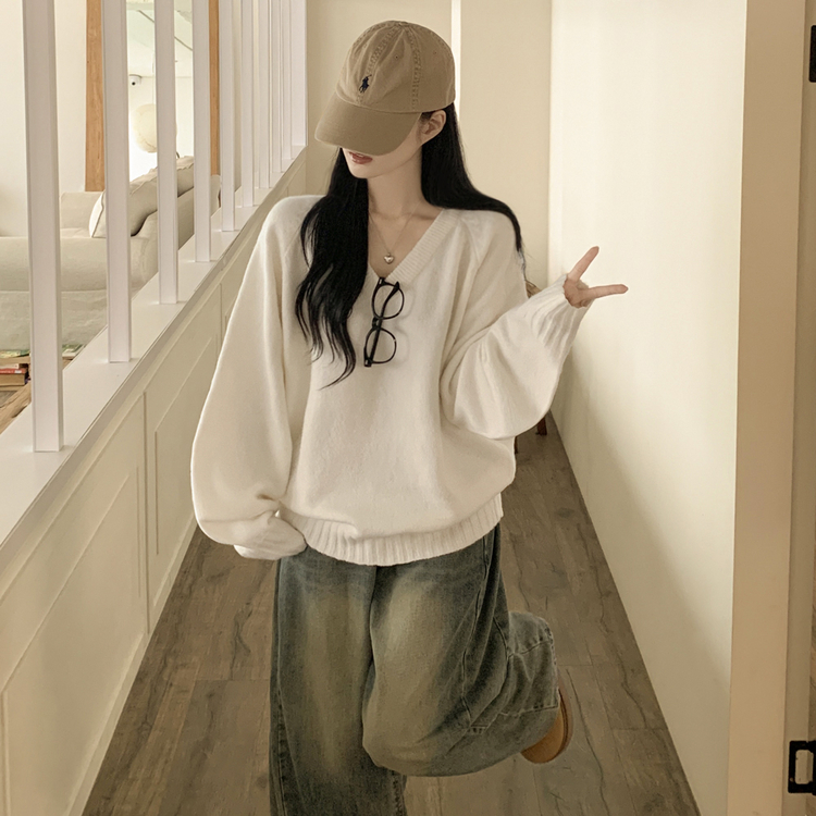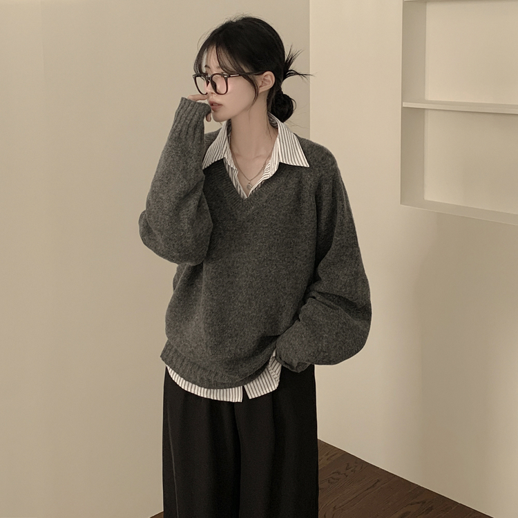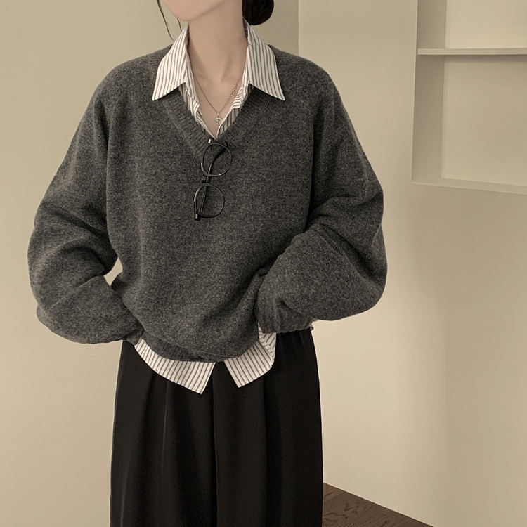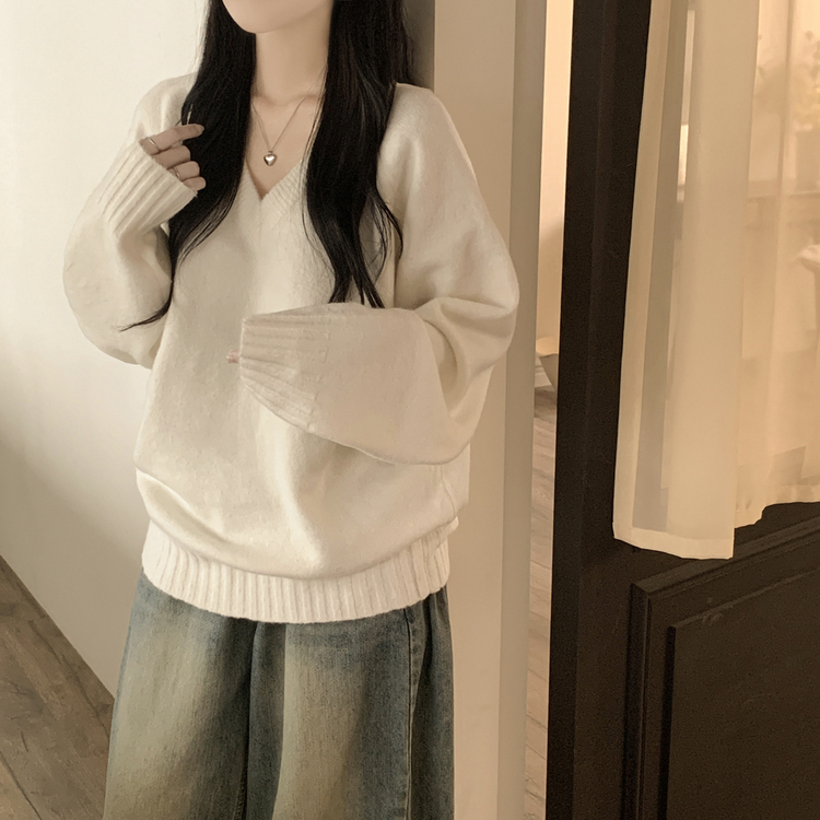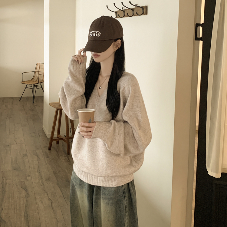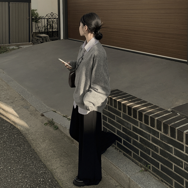 SNT32474 사이즈선택 도톰 나그랑 여리여리 오버핏 가을 겨울 오버핏 브이넥 니트