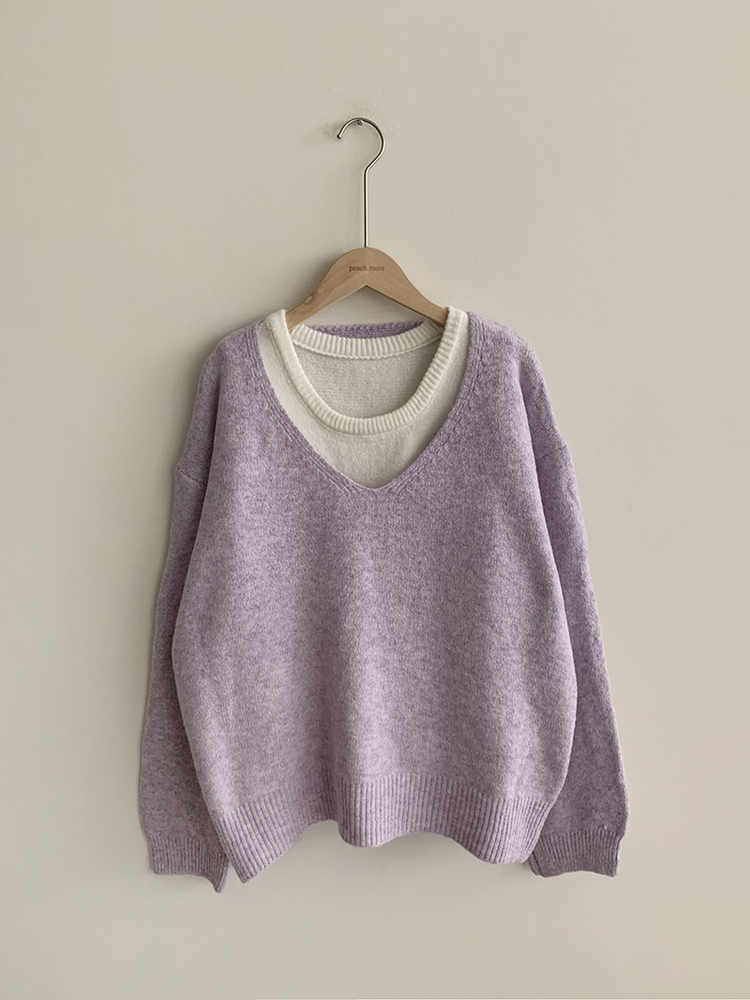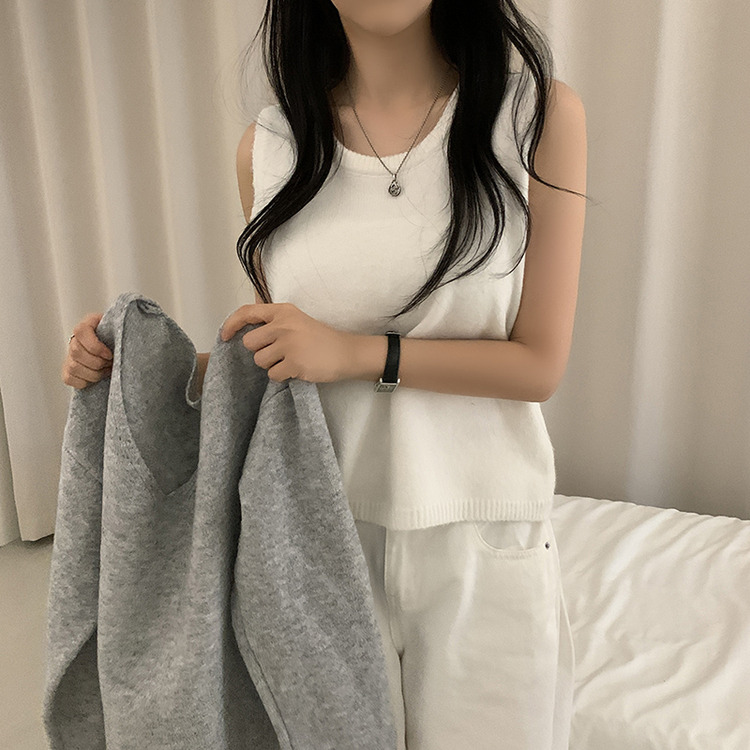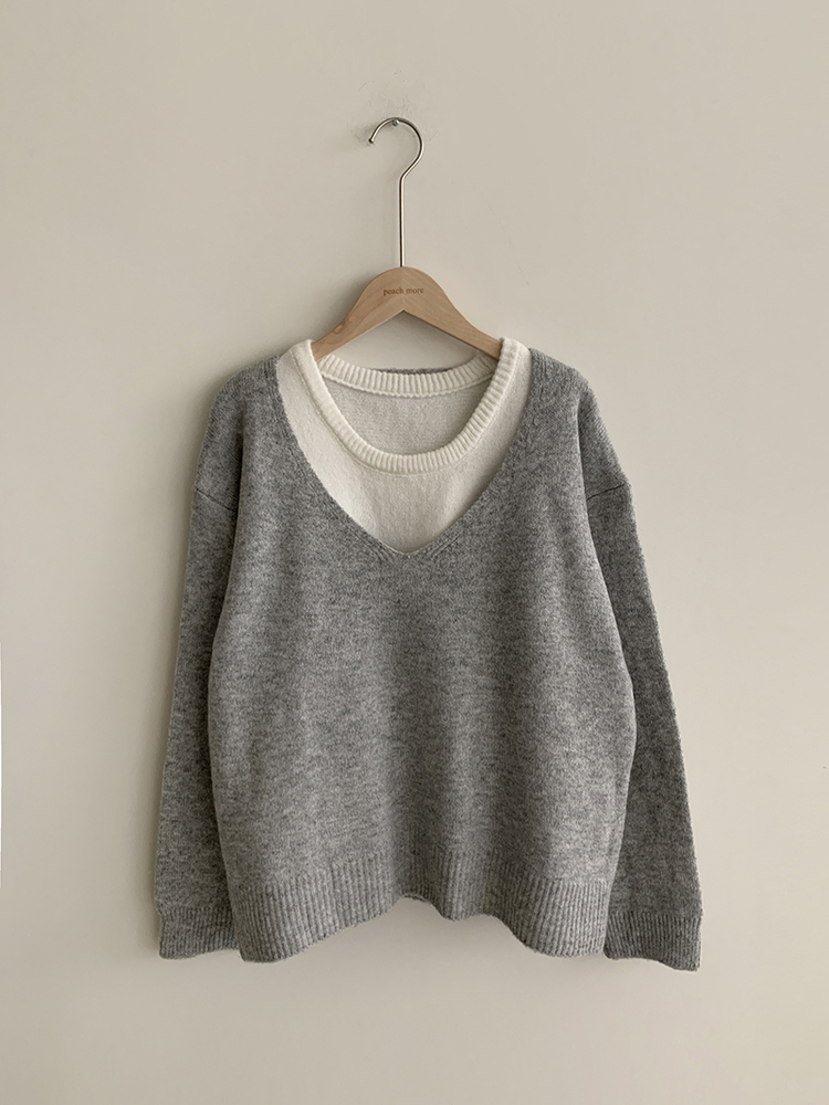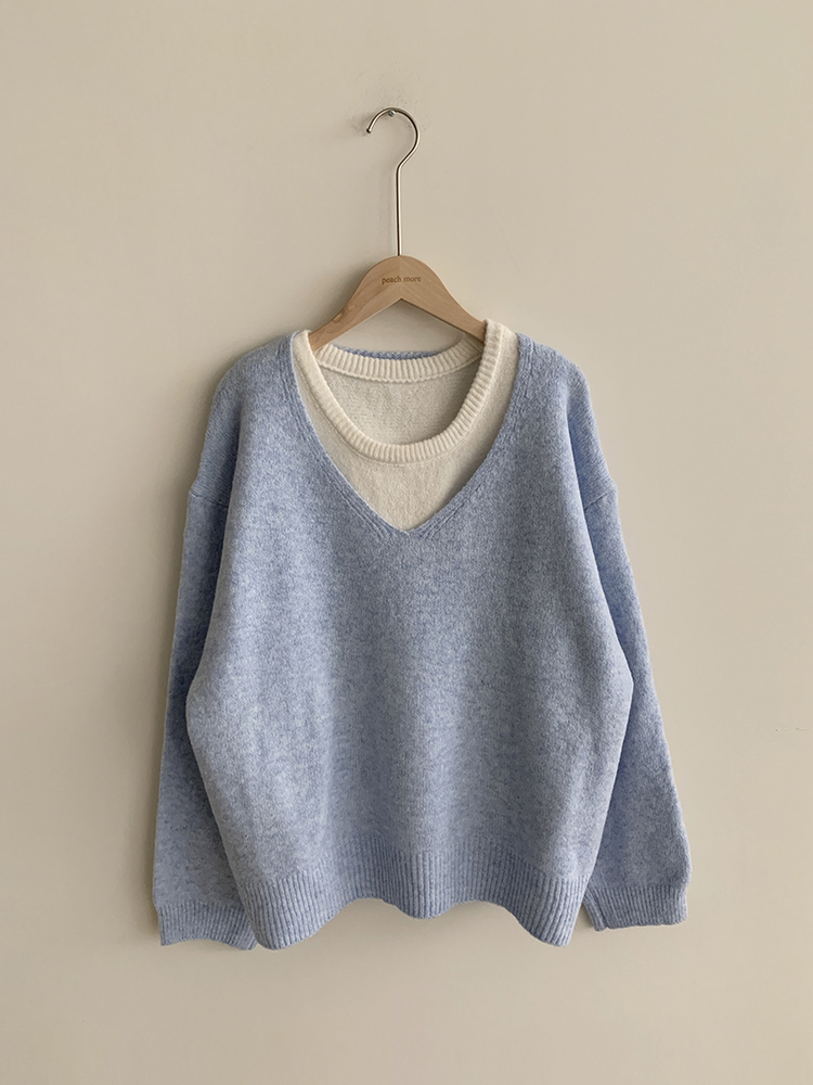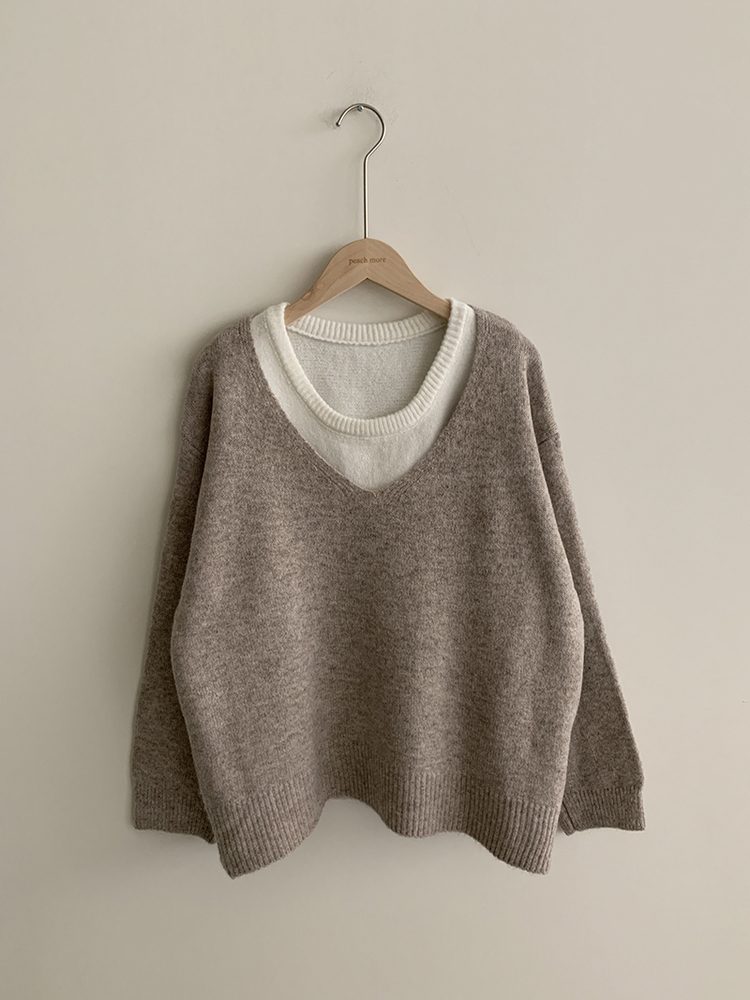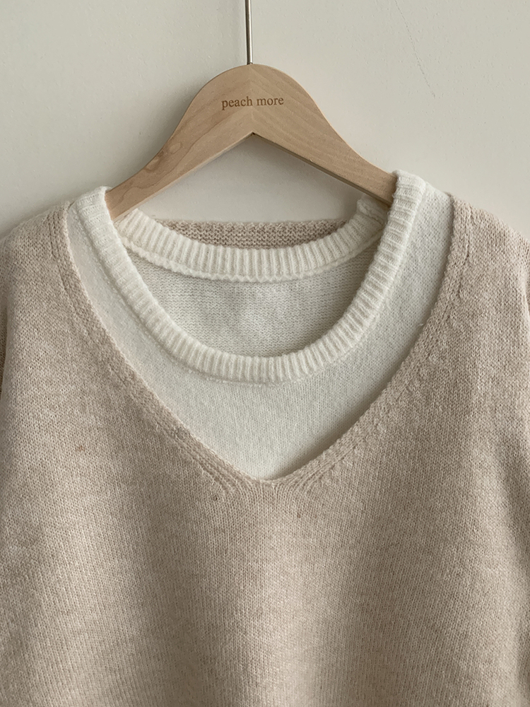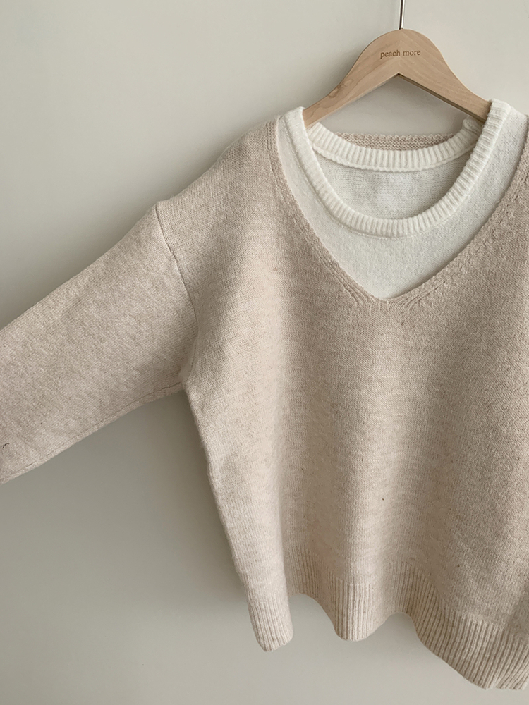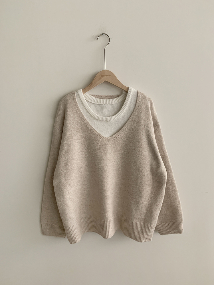 SNT32475 레이블 루즈핏 브이넥 니트 나시 세트 긴팔 니트