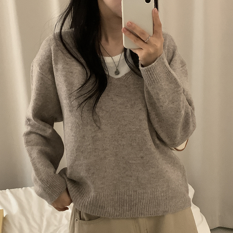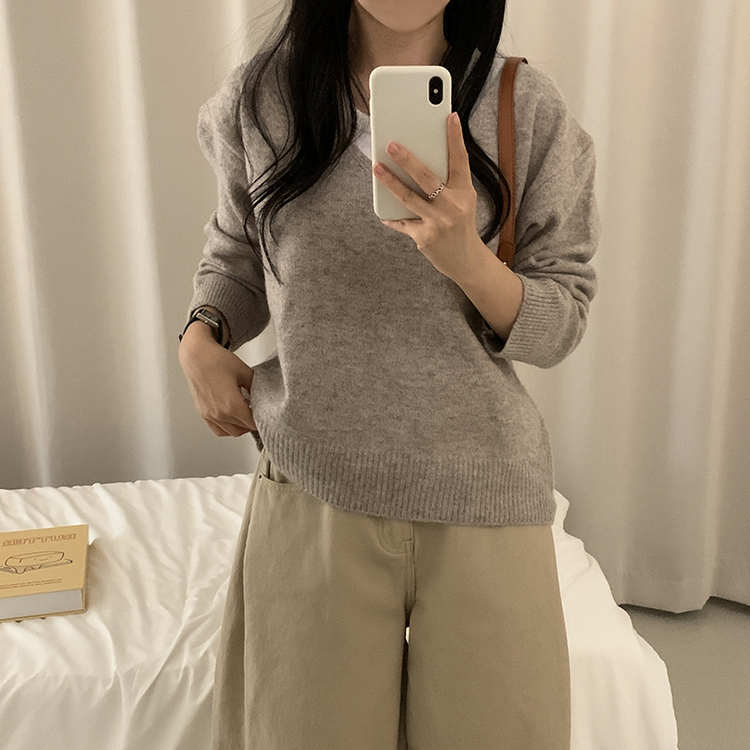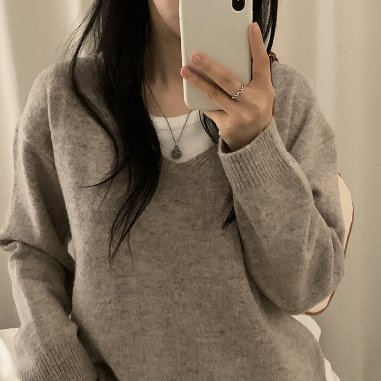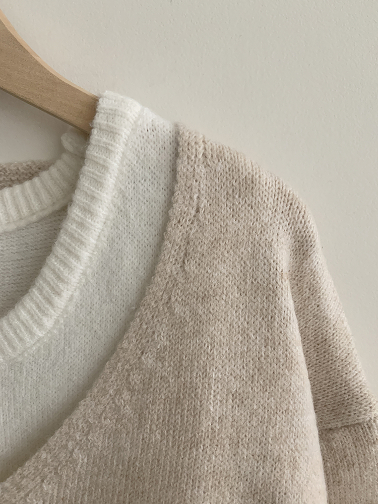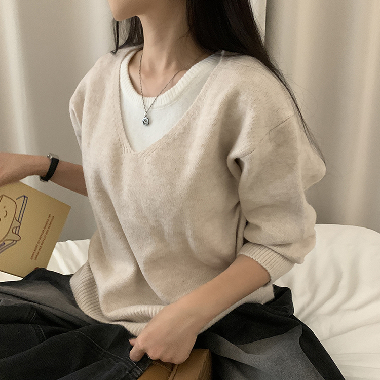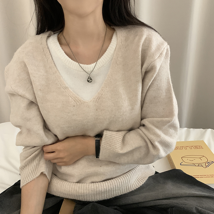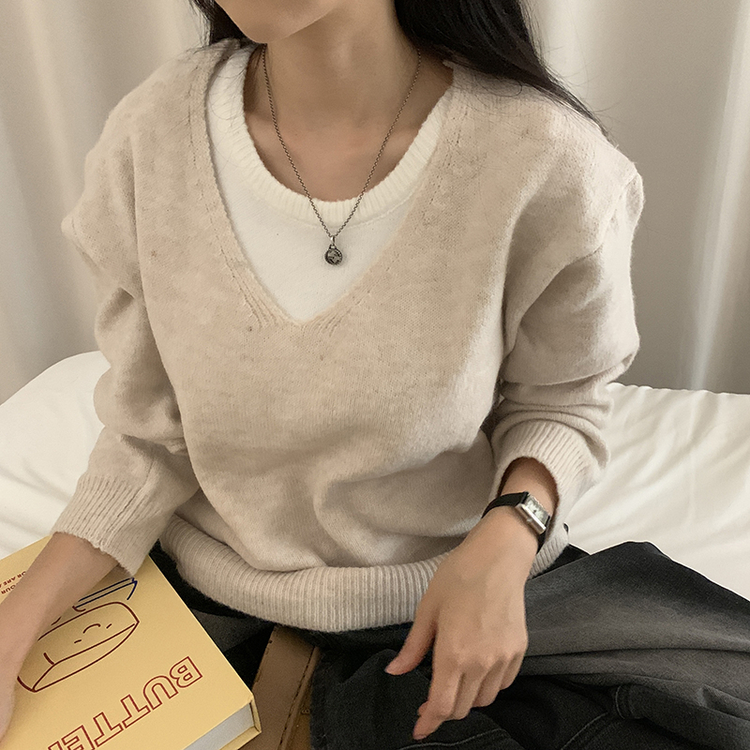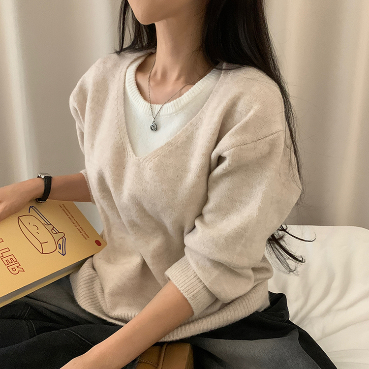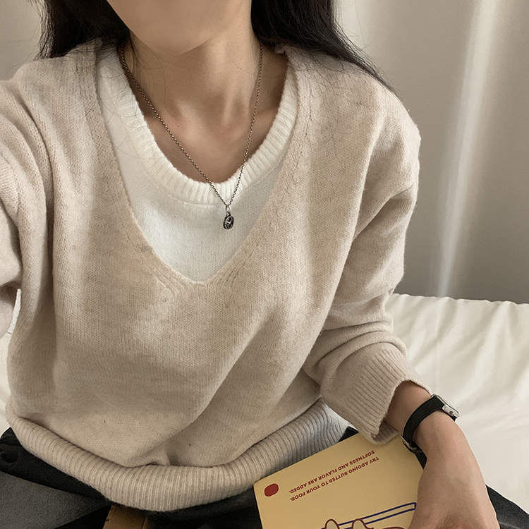 SNT32475 레이블 루즈핏 브이넥 니트 나시 세트 긴팔 니트