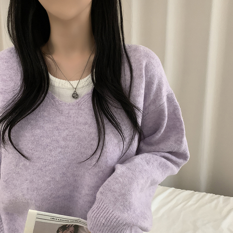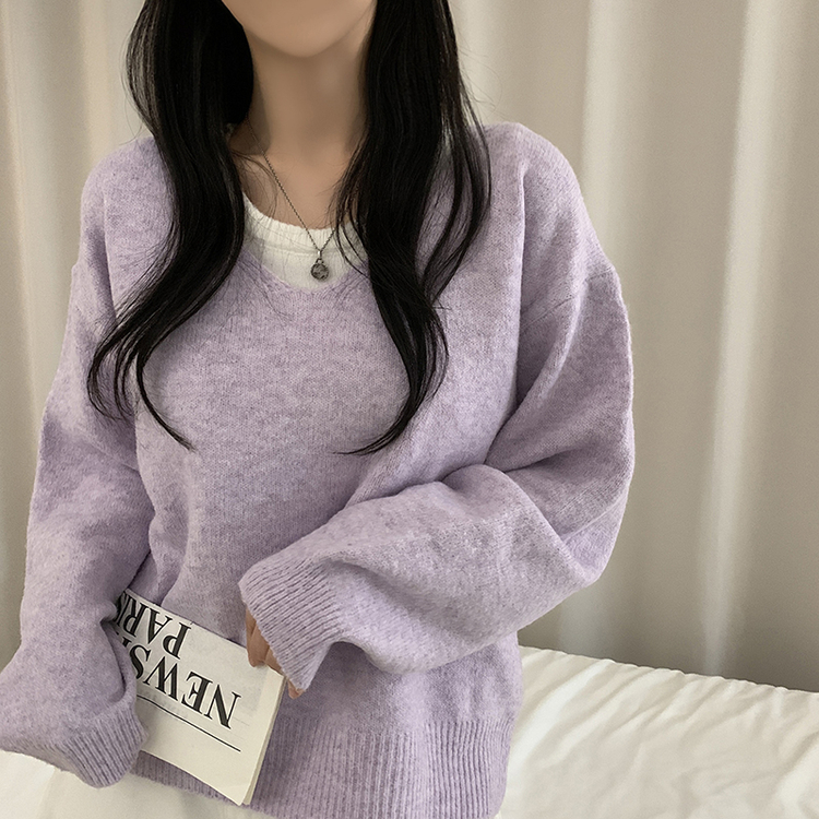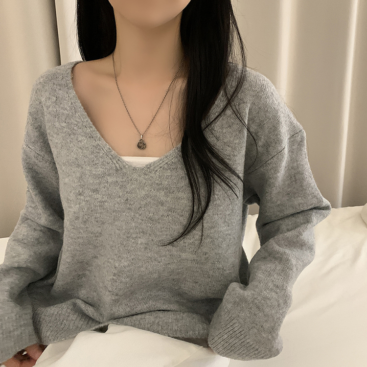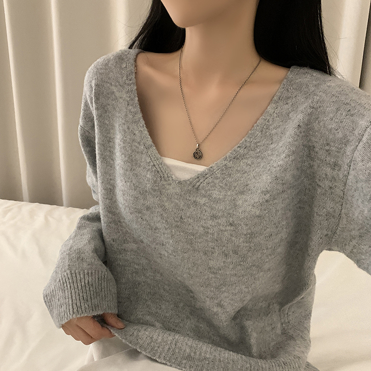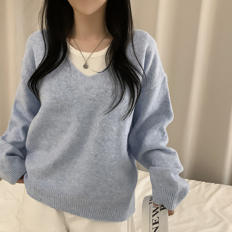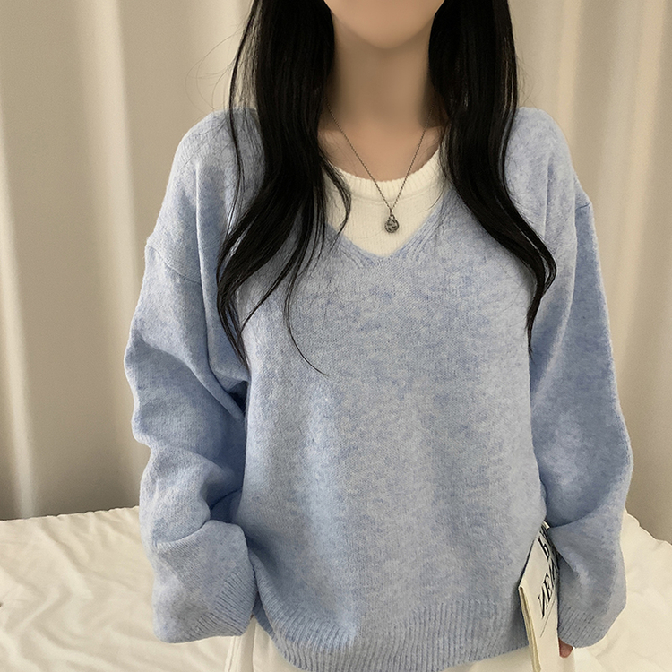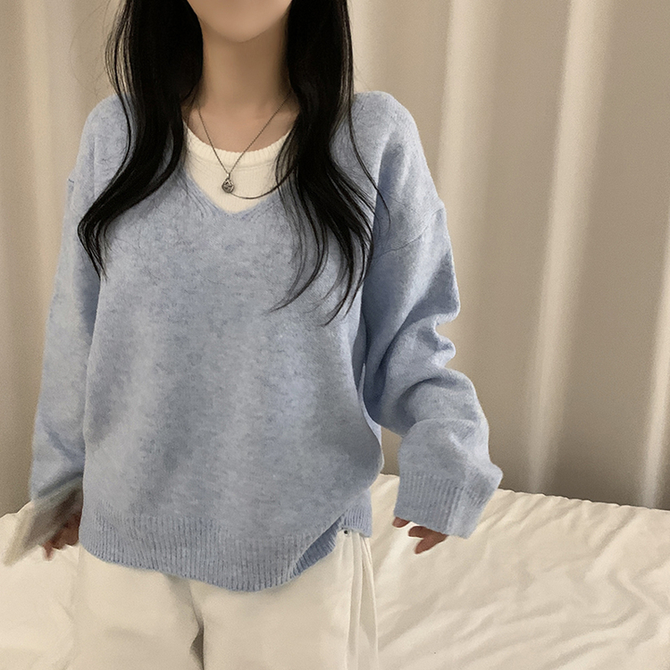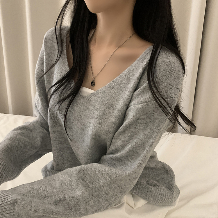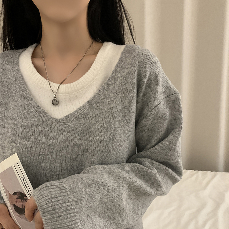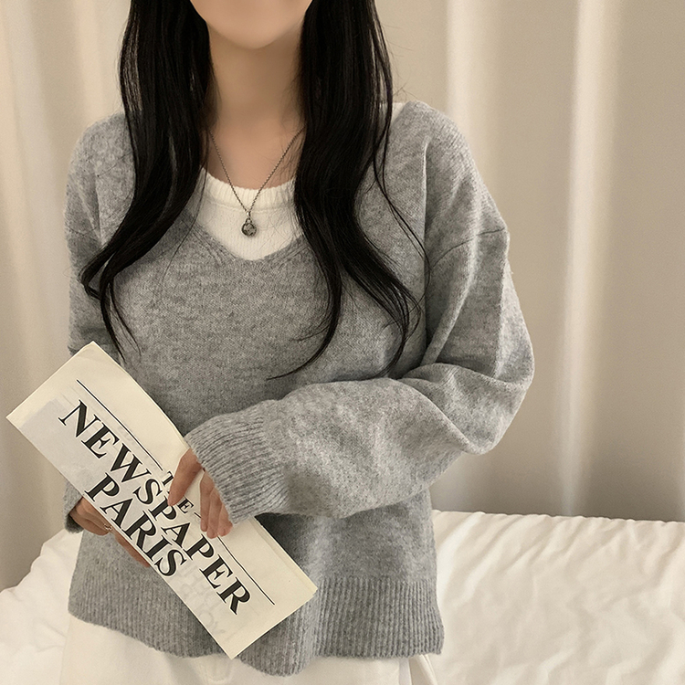 SNT32475 레이블 루즈핏 브이넥 니트 나시 세트 긴팔 니트