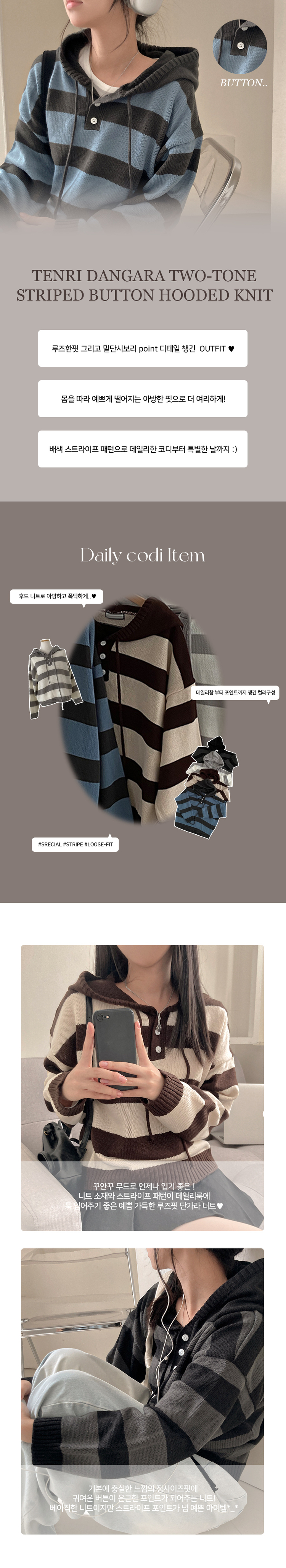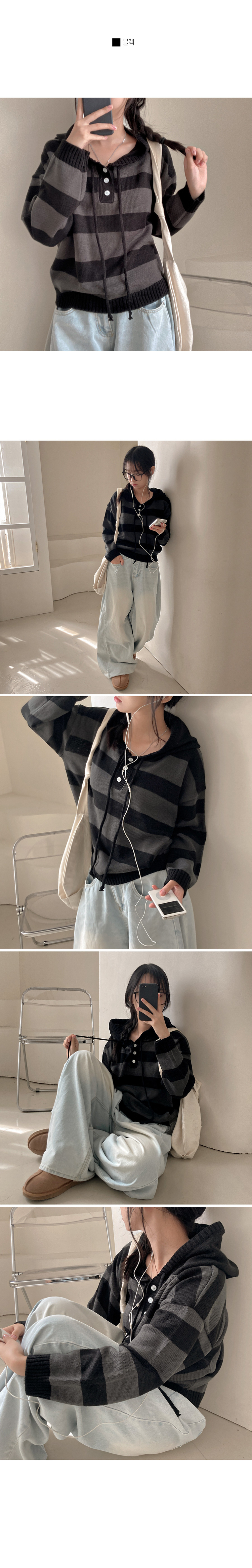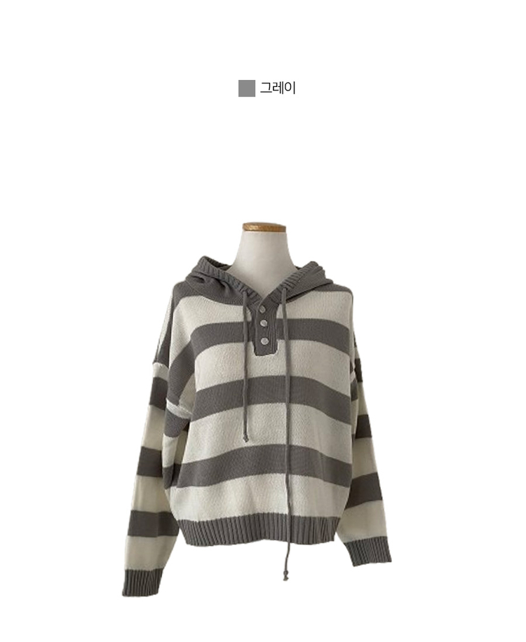 SNT32492 텐리 단가라 배색 스트라이프 버튼 후드 니트