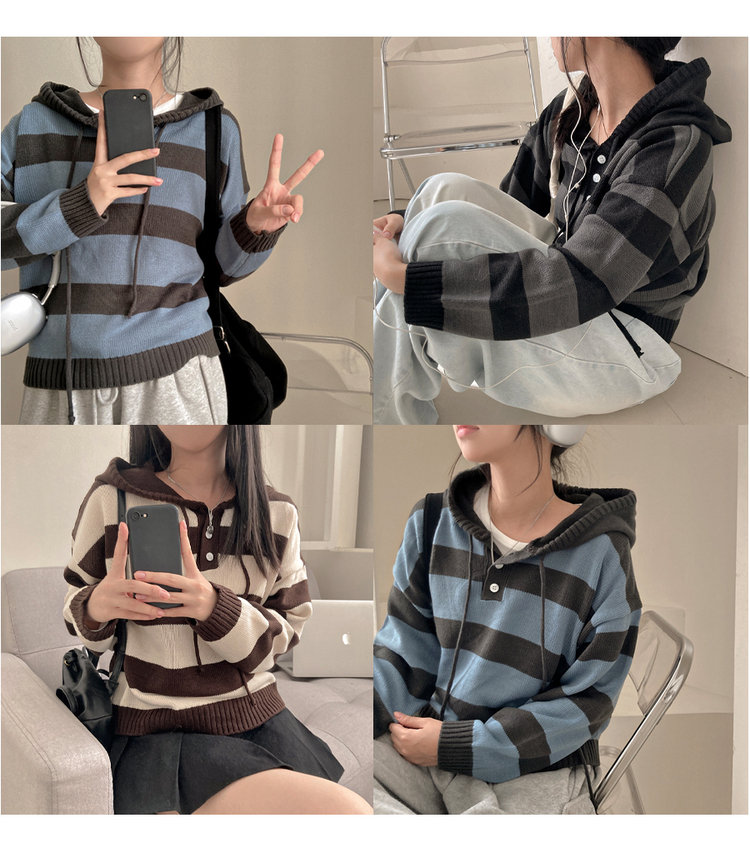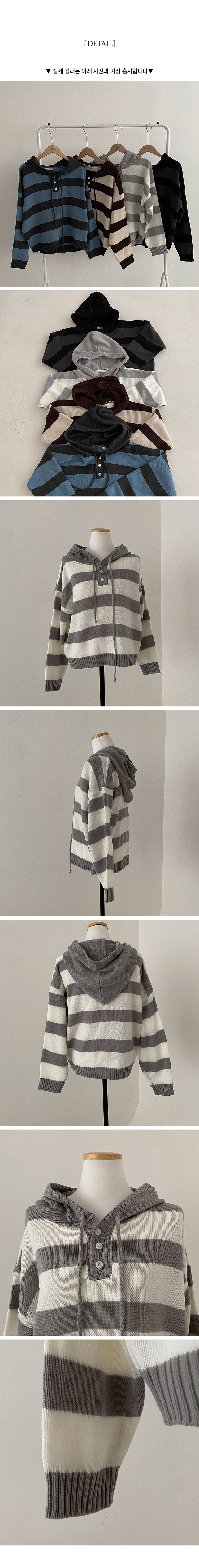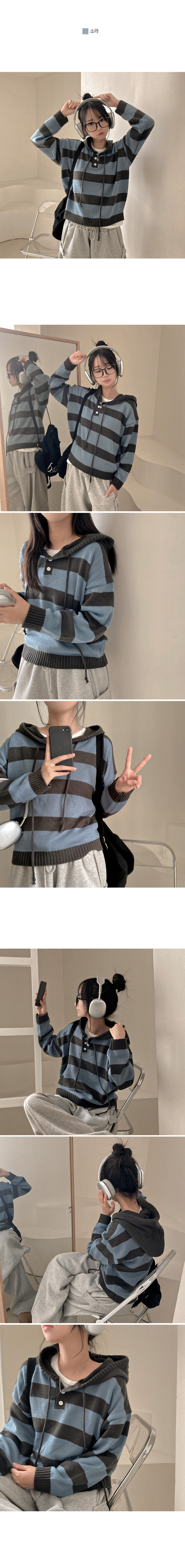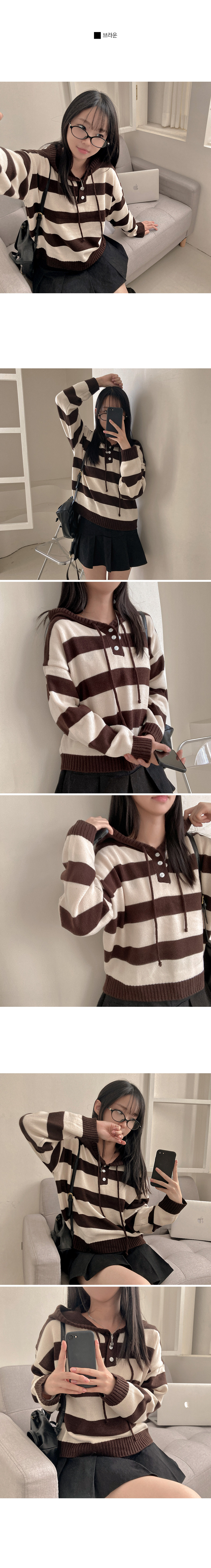 SNT32492 텐리 단가라 배색 스트라이프 버튼 후드 니트