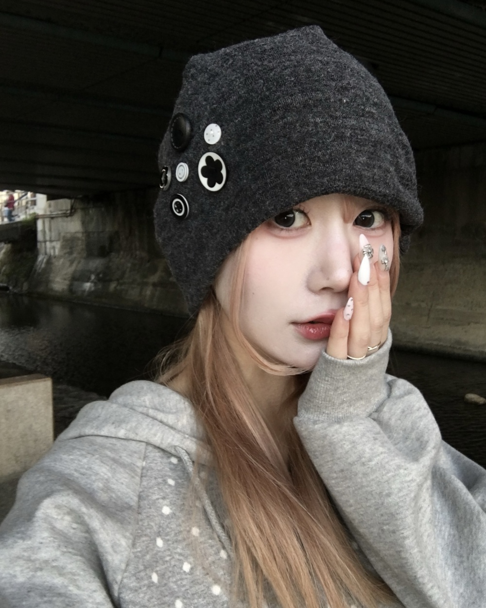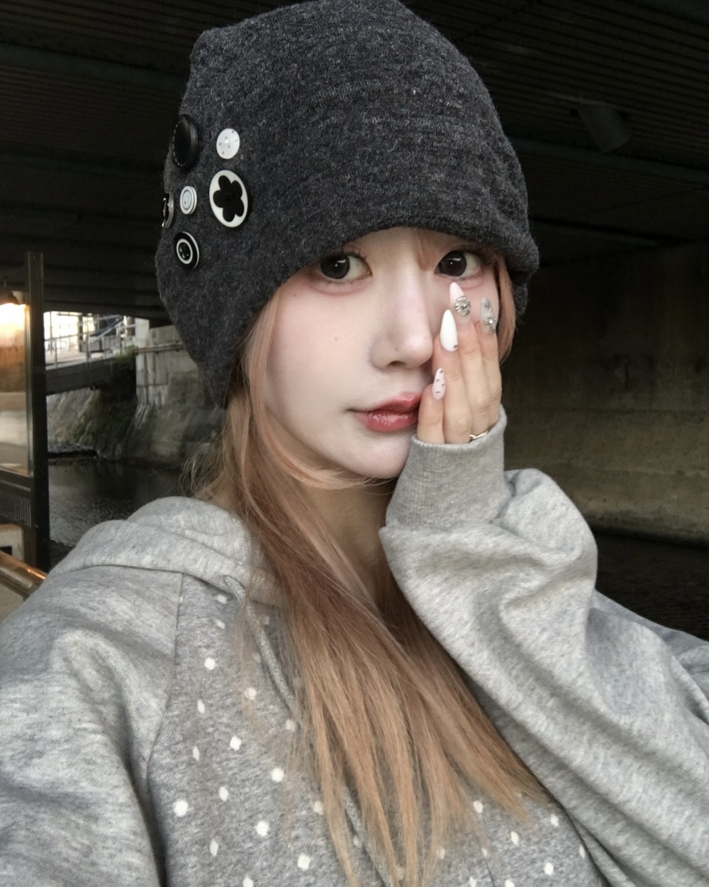SAC8391 단추 포인트 비니