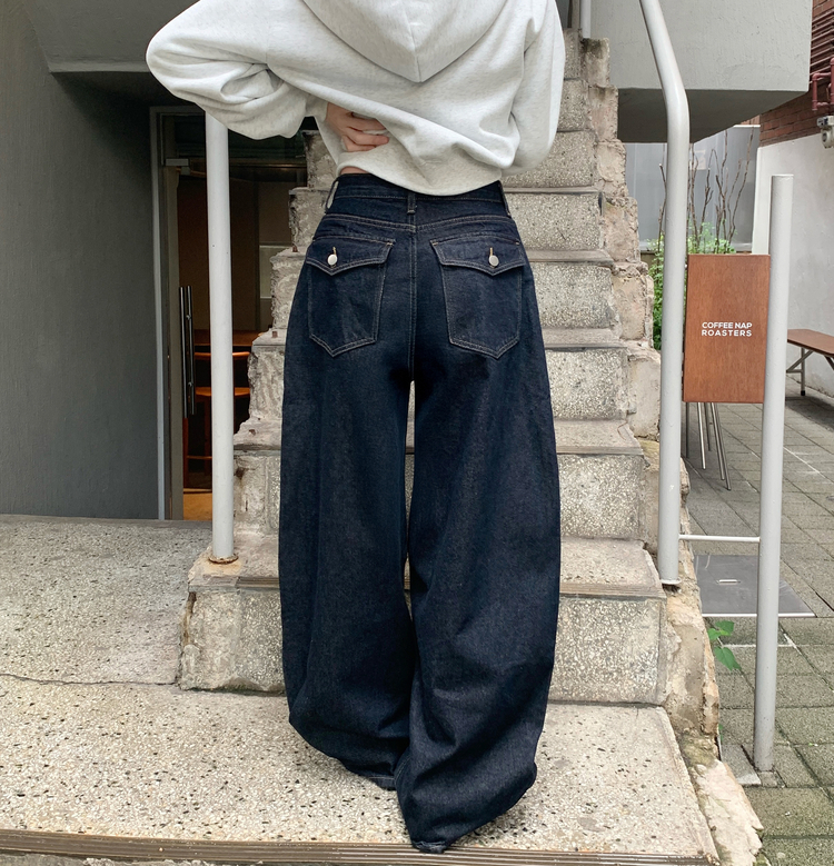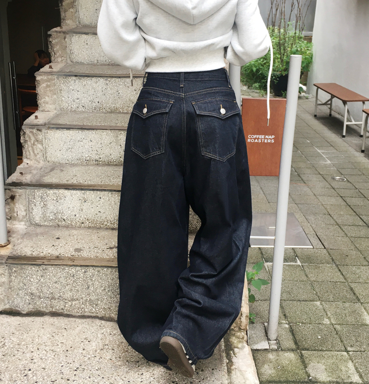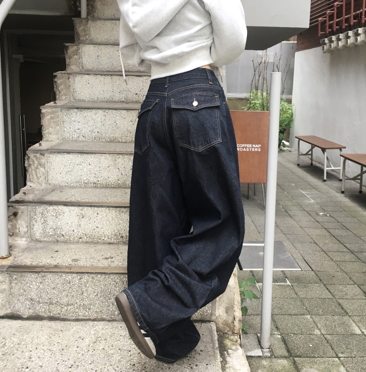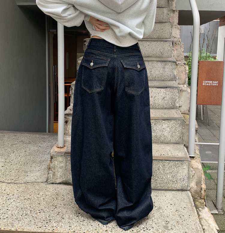 SJE13098 쏘드 백포켓 빅포켓 숏 롱 와이드 벌룬 생지 데님 팬츠