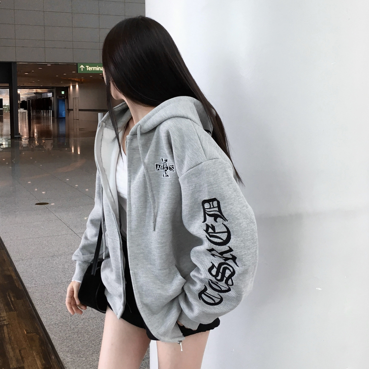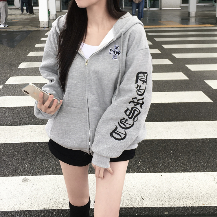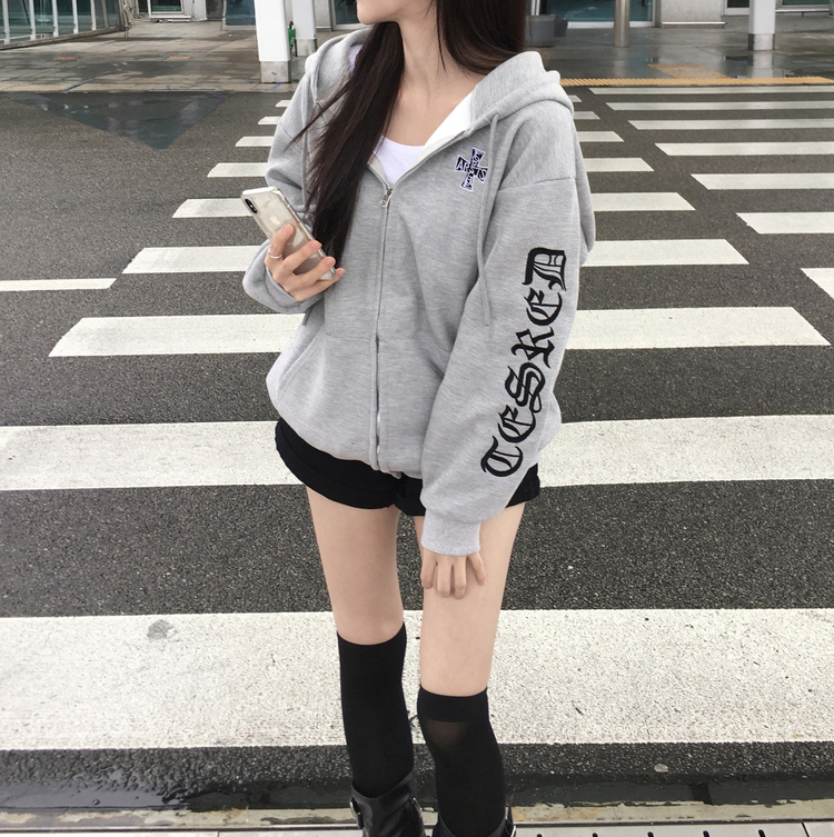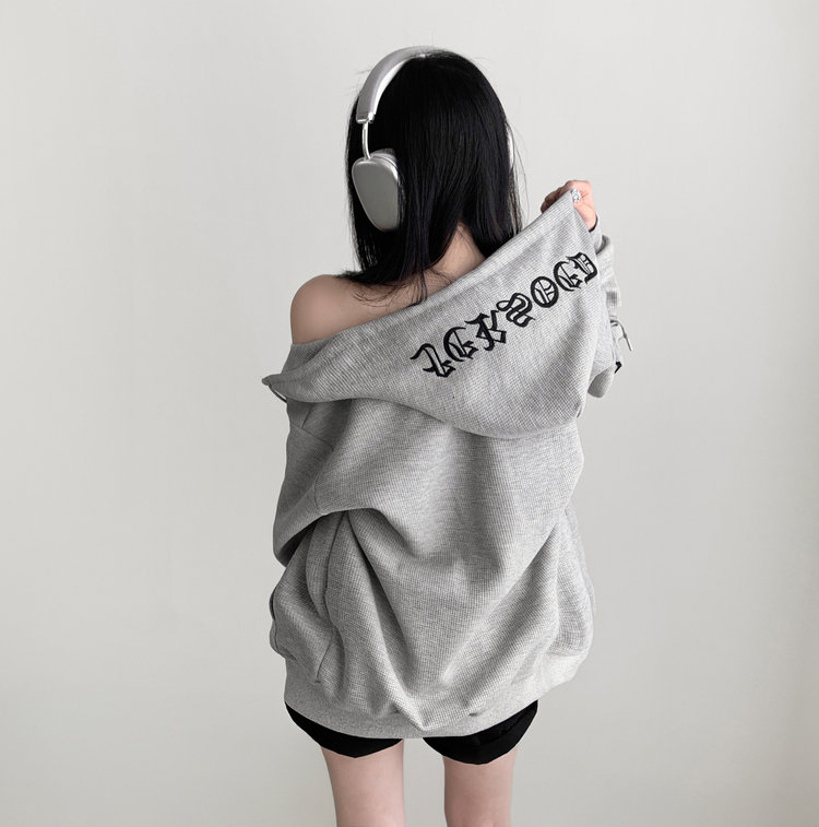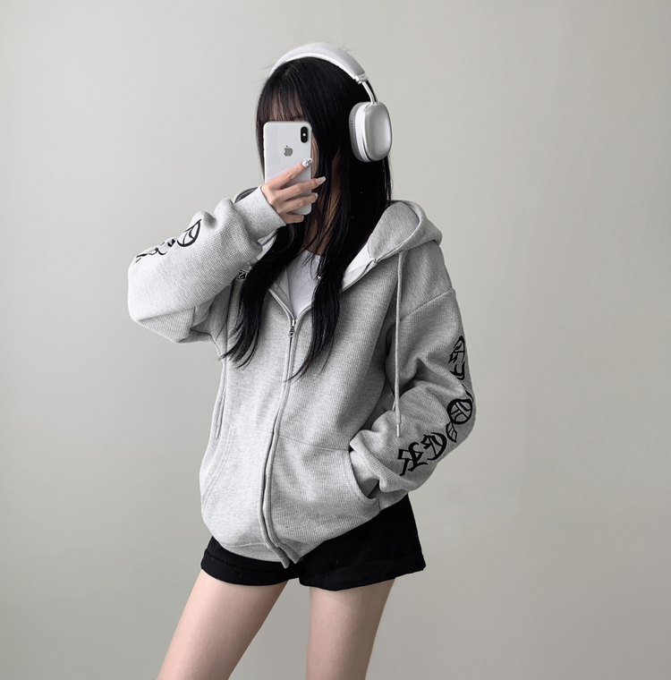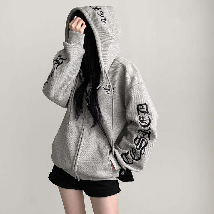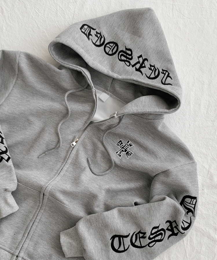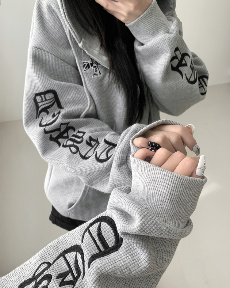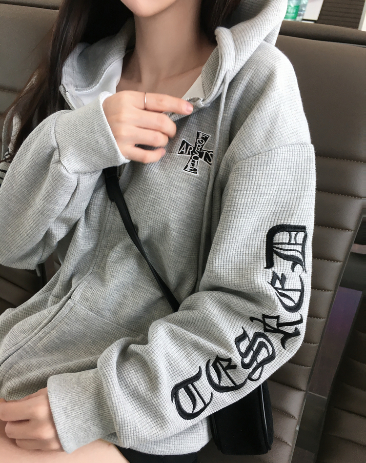 SJP17979 레프 와플 자수 레터링 십자가 오버핏 루즈 스트릿 후드 집업