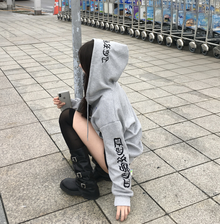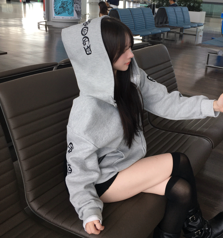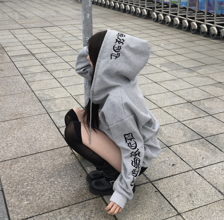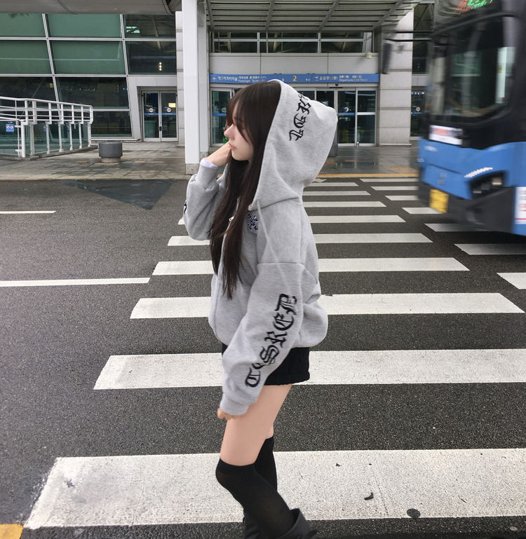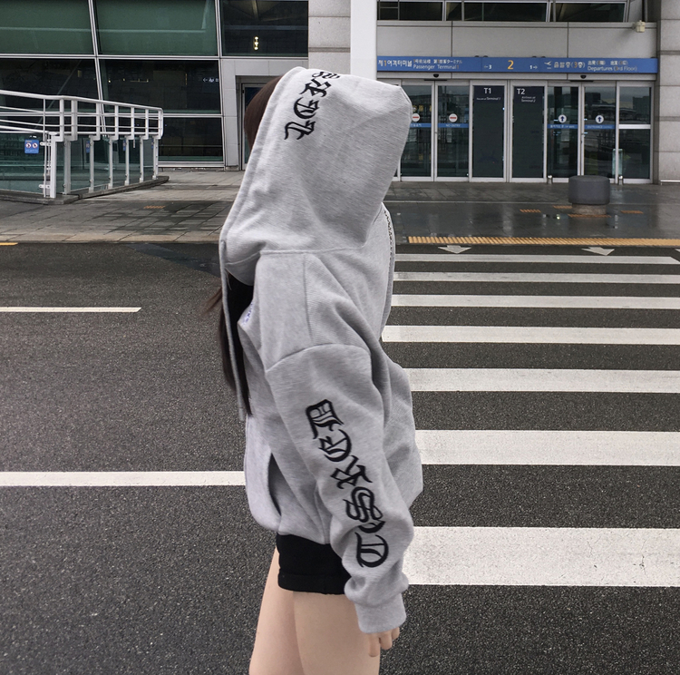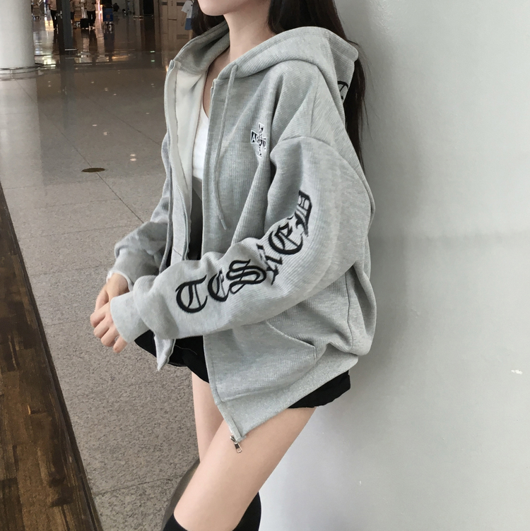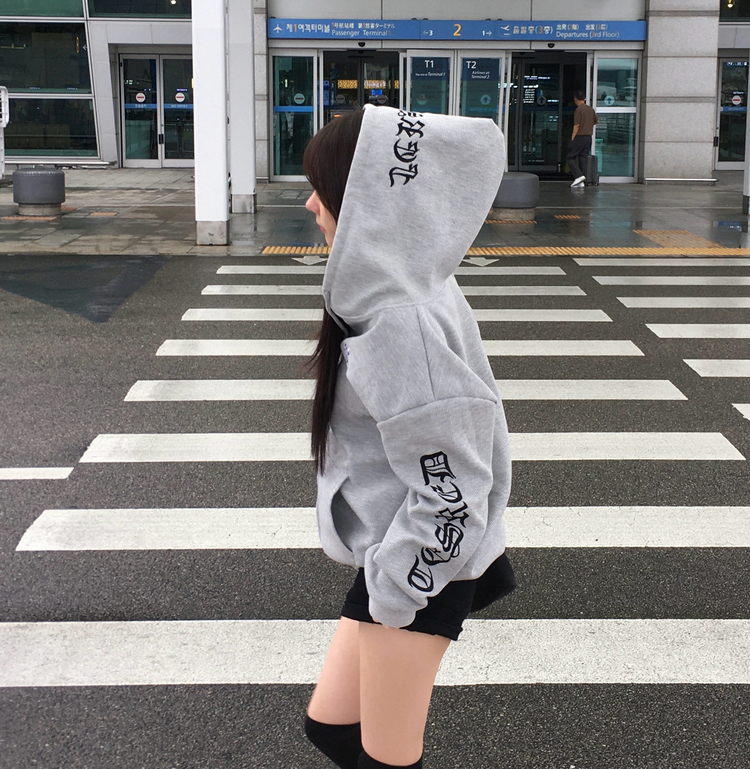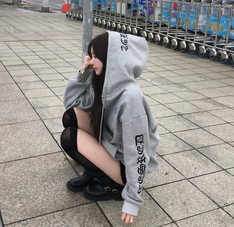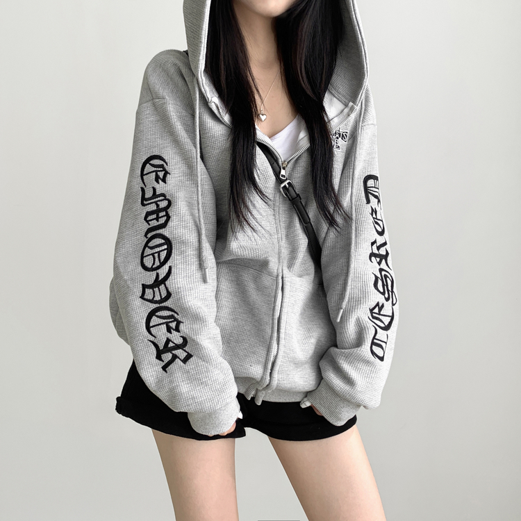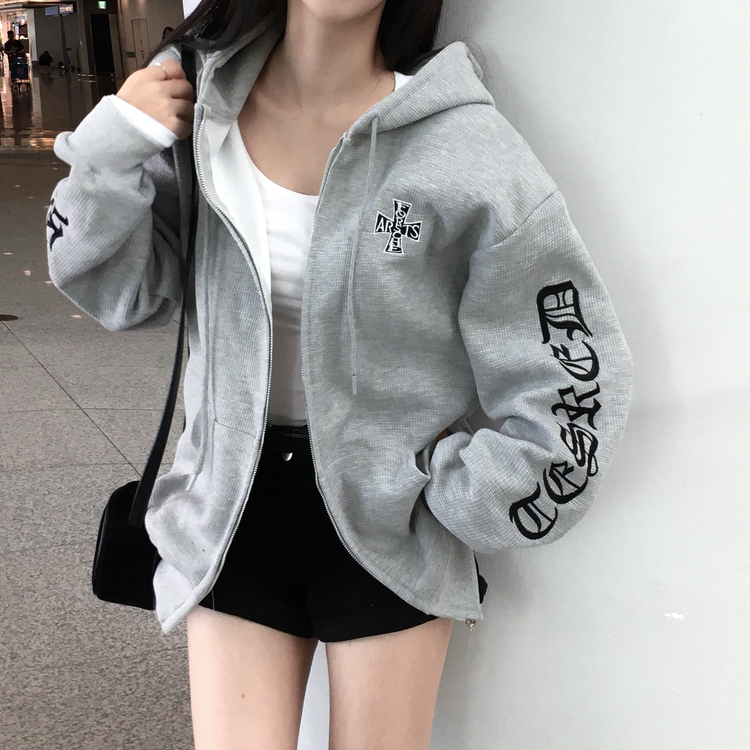 SJP17979 레프 와플 자수 레터링 십자가 오버핏 루즈 스트릿 후드 집업