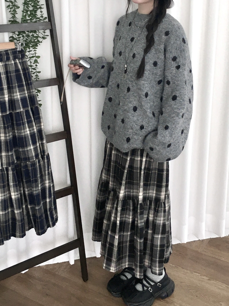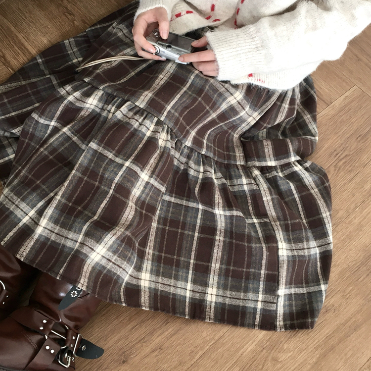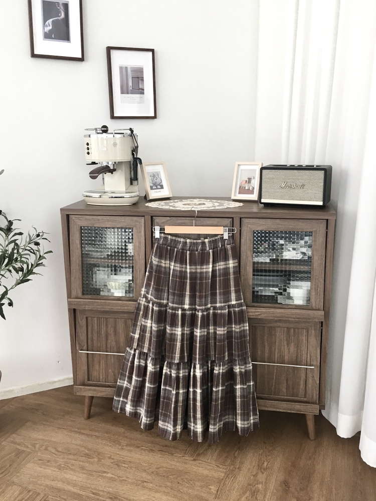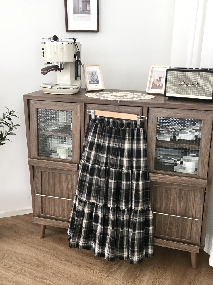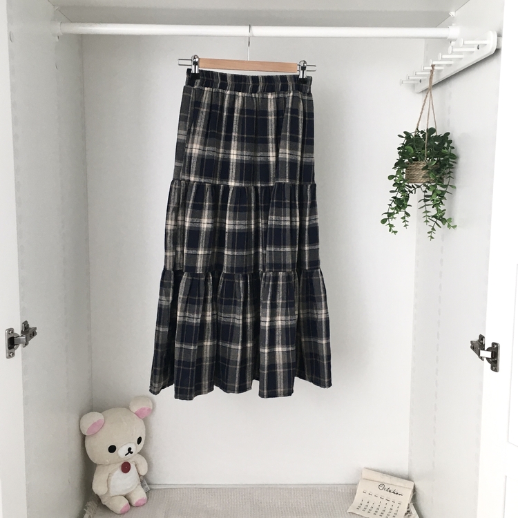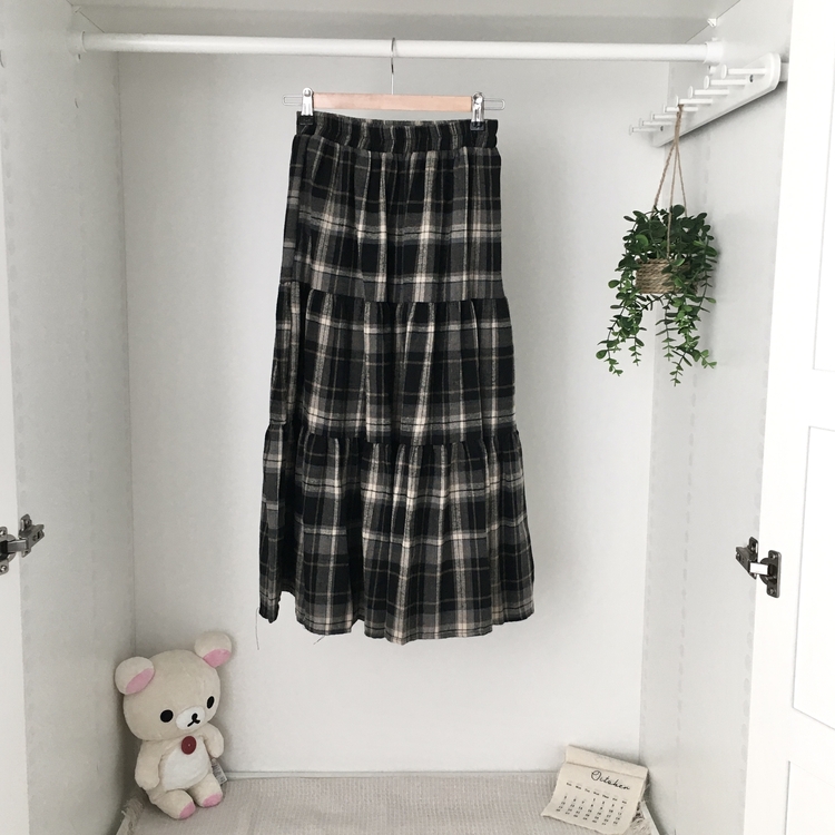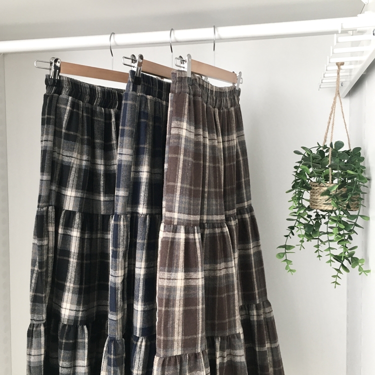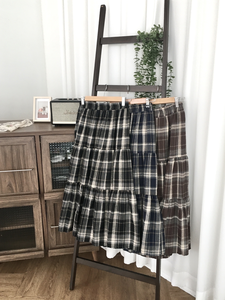SSK24614 가을겨울 부들 모리걸 체크 캉캉 밴딩 롱스커트