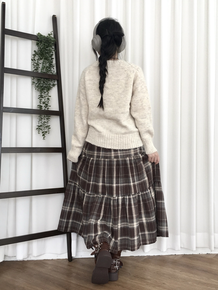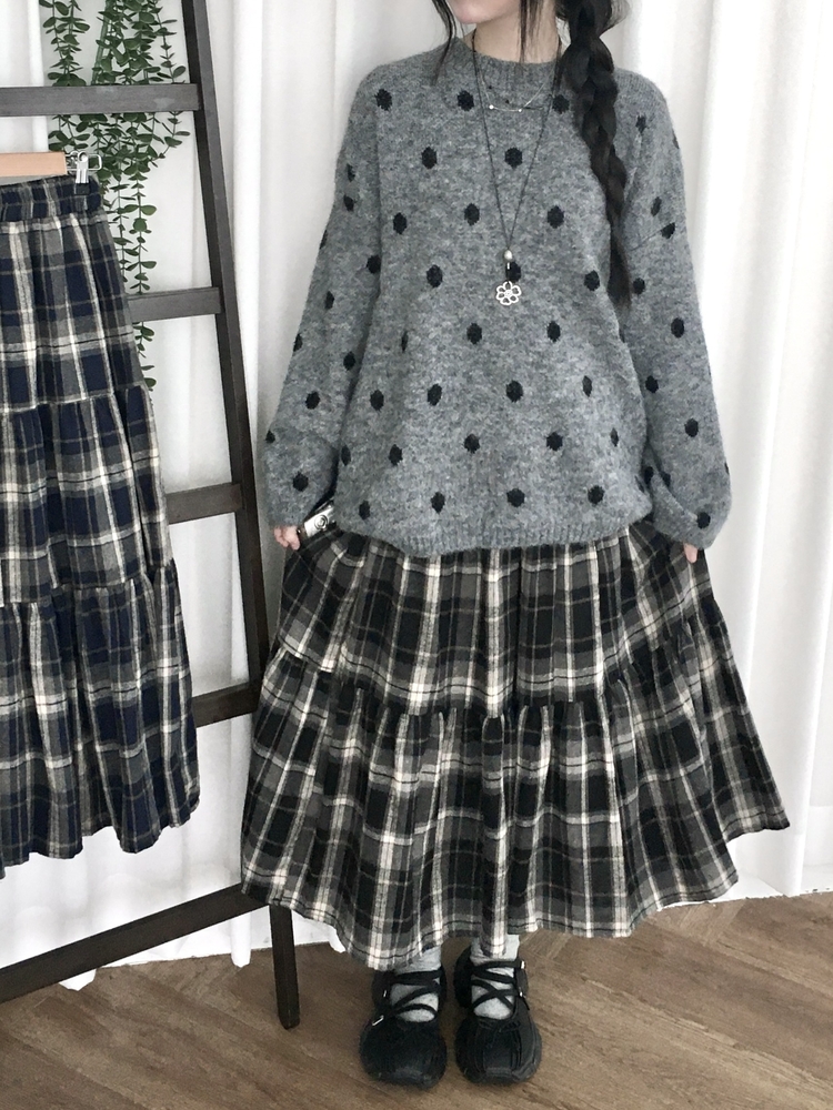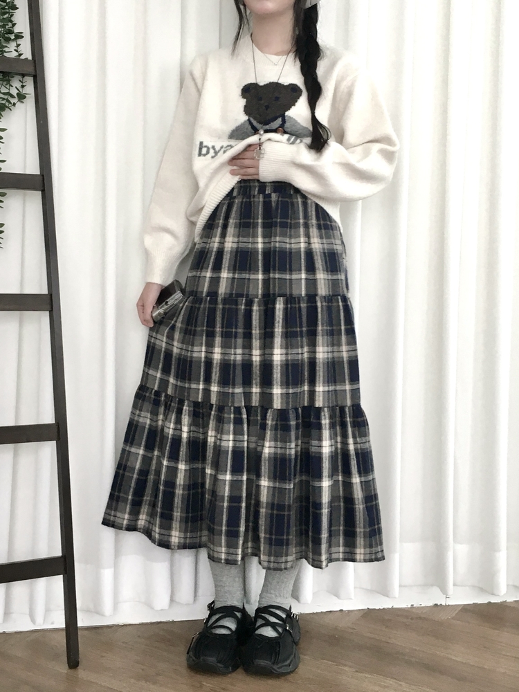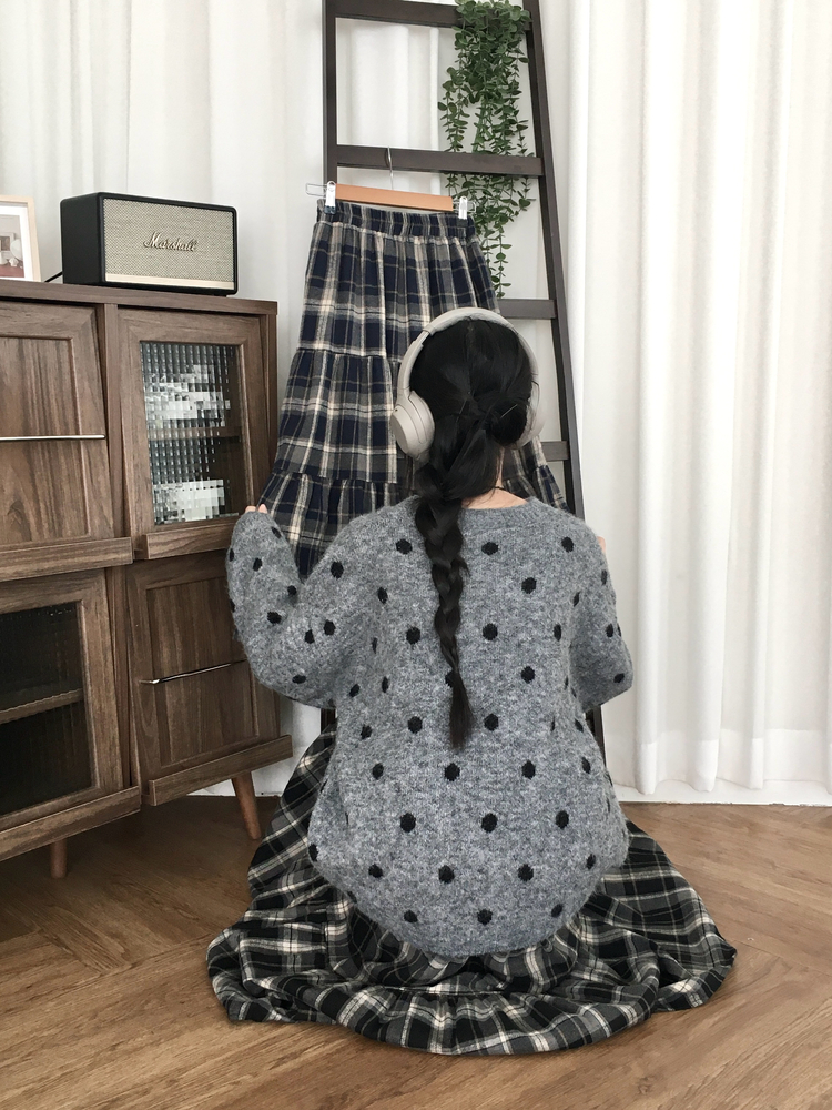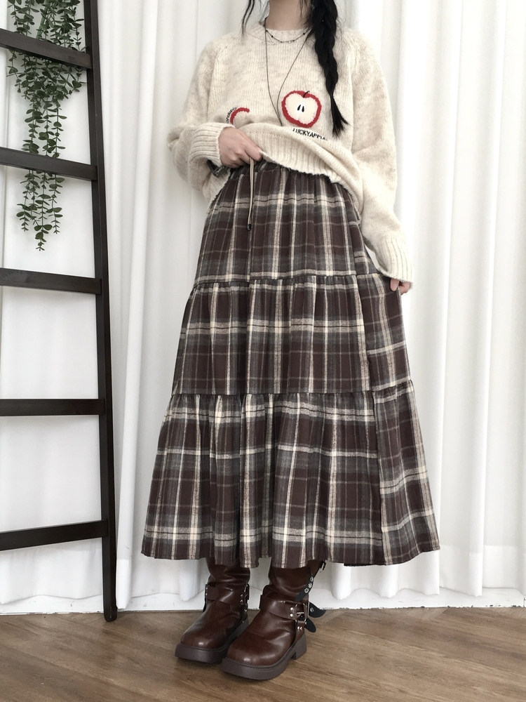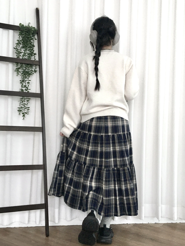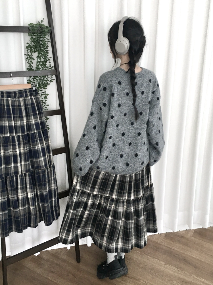SSK24614 가을겨울 부들 모리걸 체크 캉캉 밴딩 롱스커트