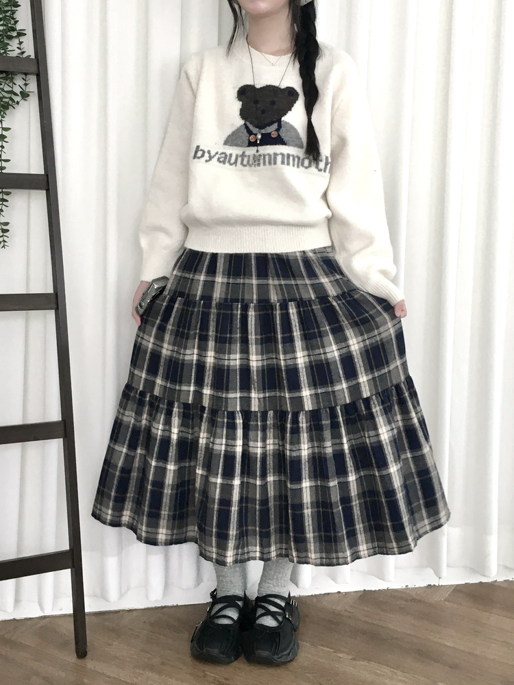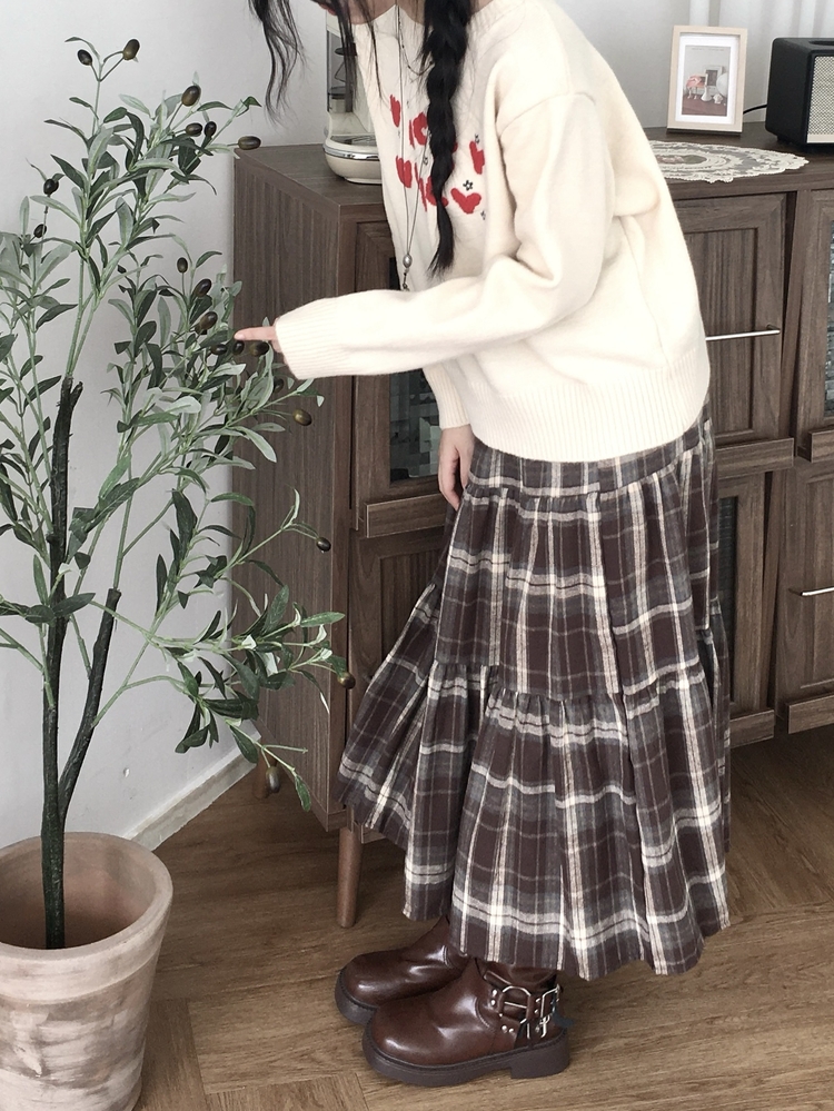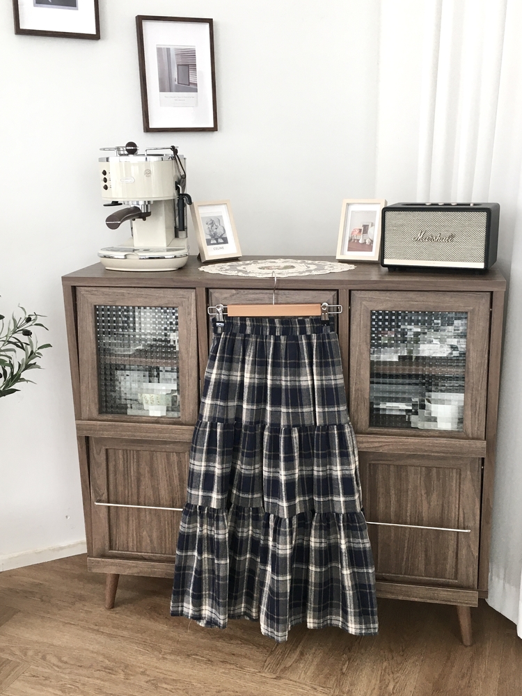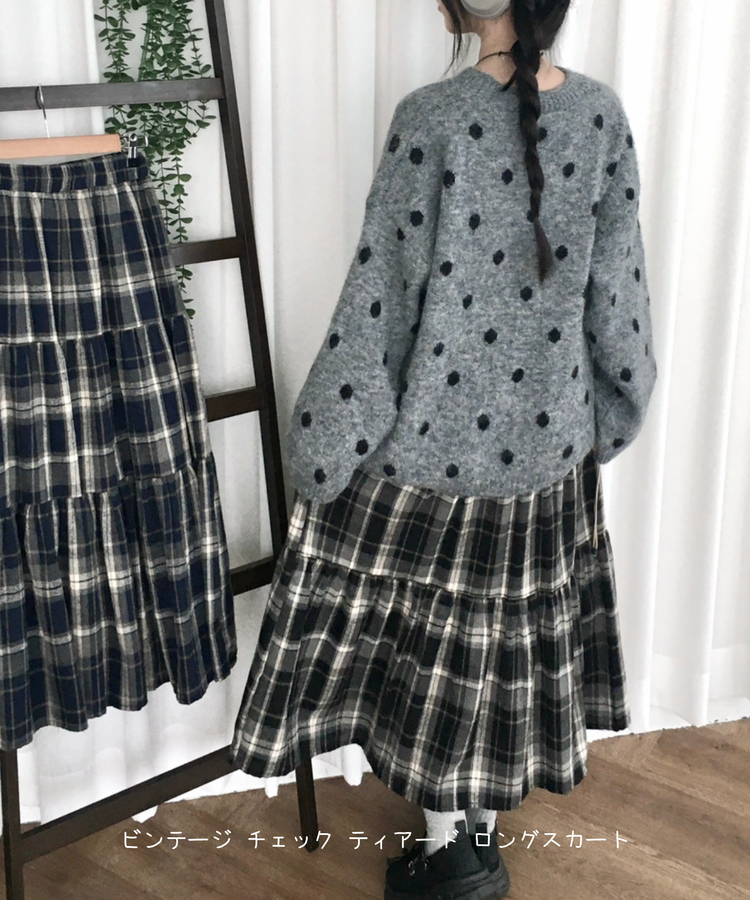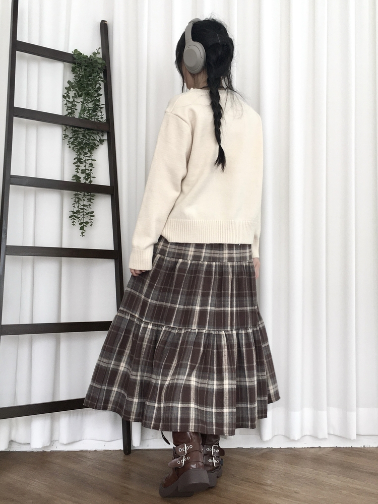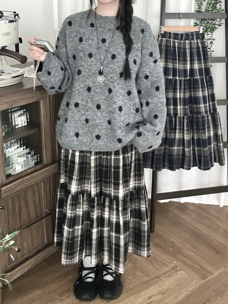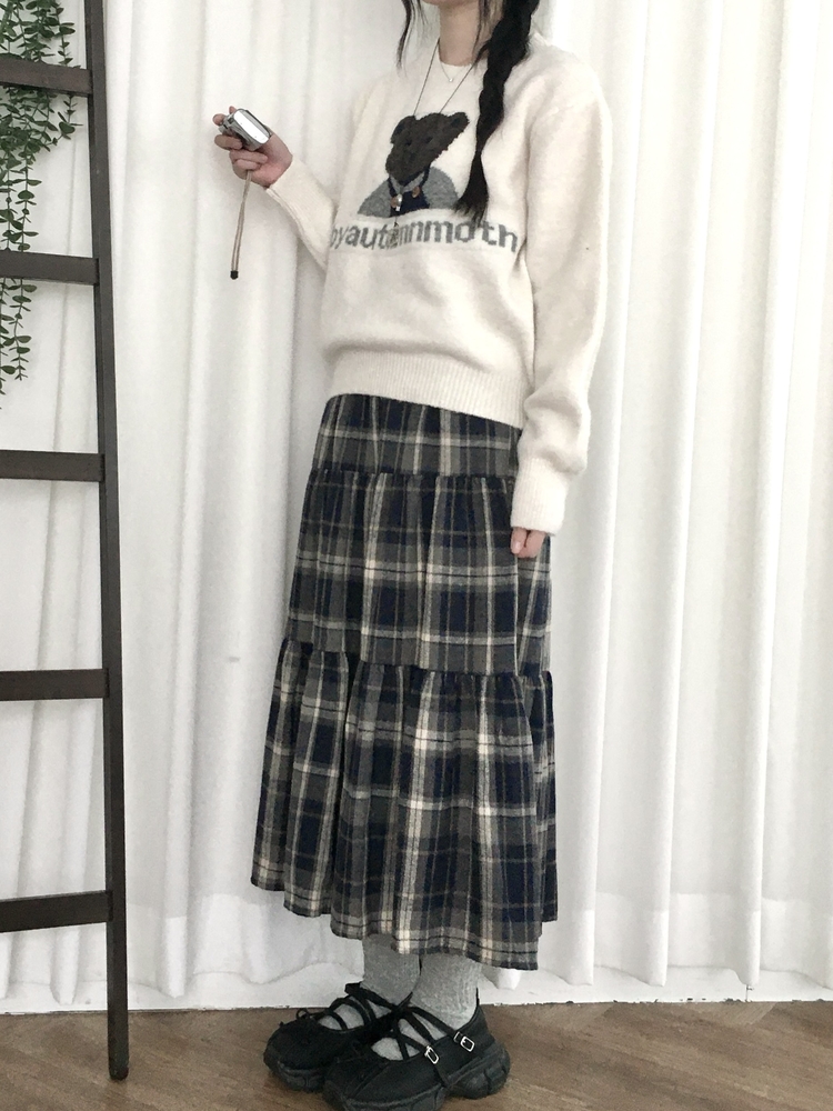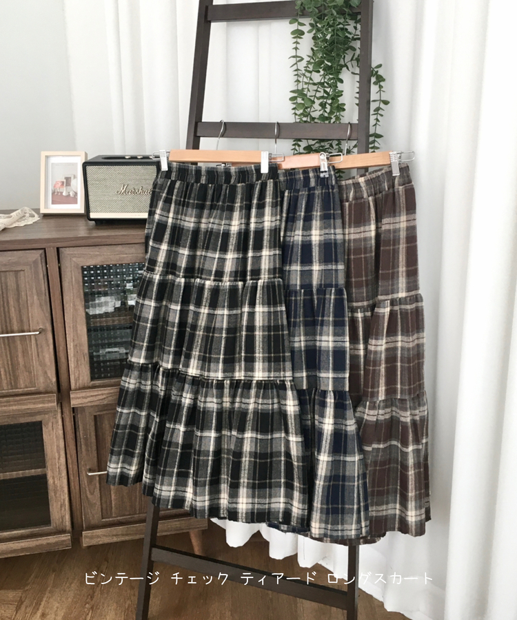 SSK24614 가을겨울 부들 모리걸 체크 캉캉 밴딩 롱스커트