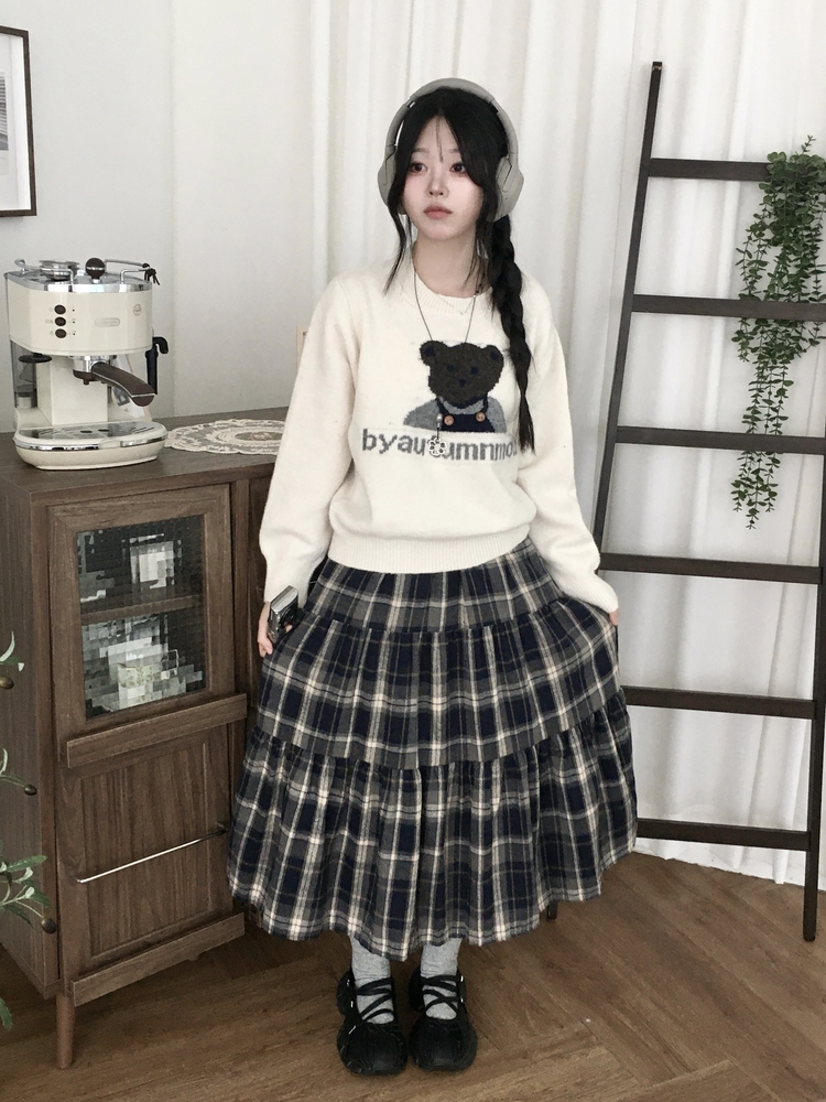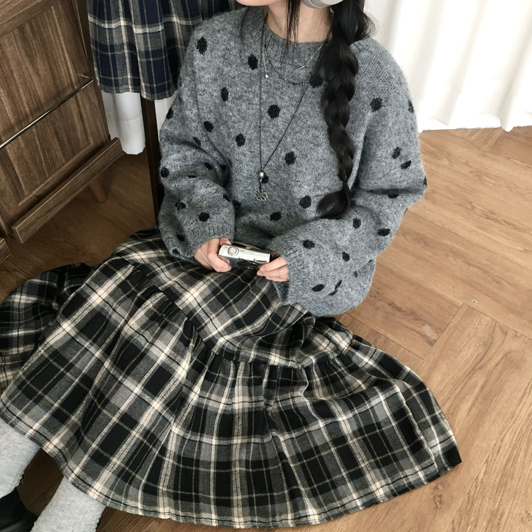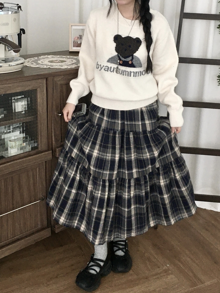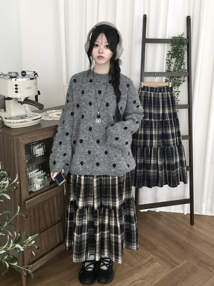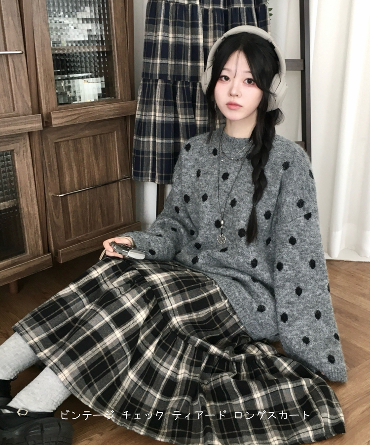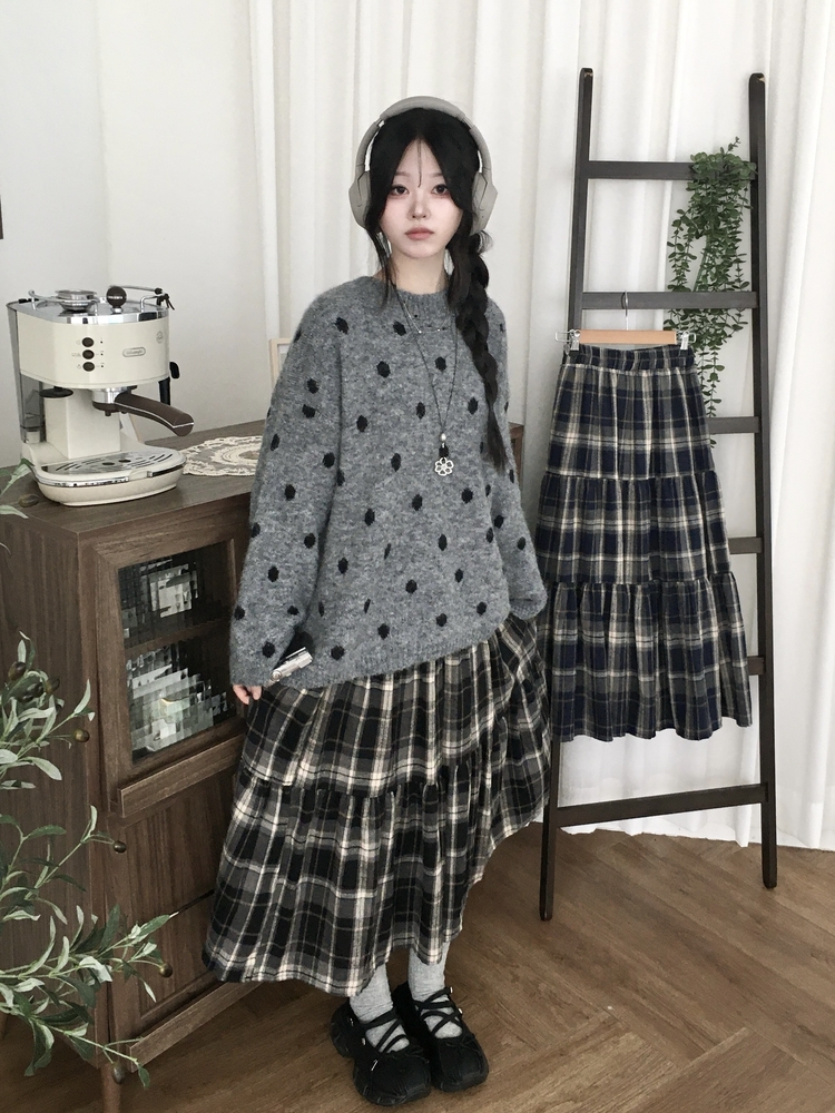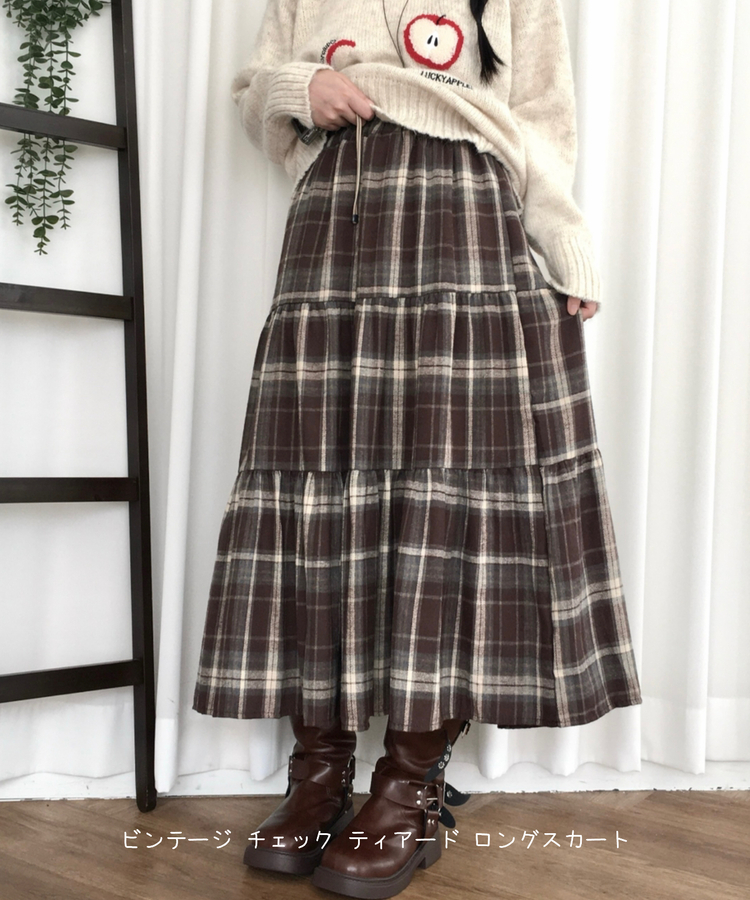 SSK24614 가을겨울 부들 모리걸 체크 캉캉 밴딩 롱스커트