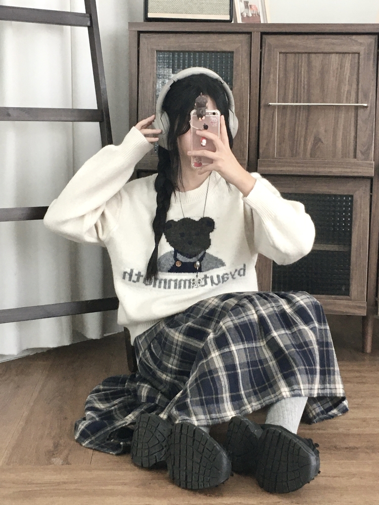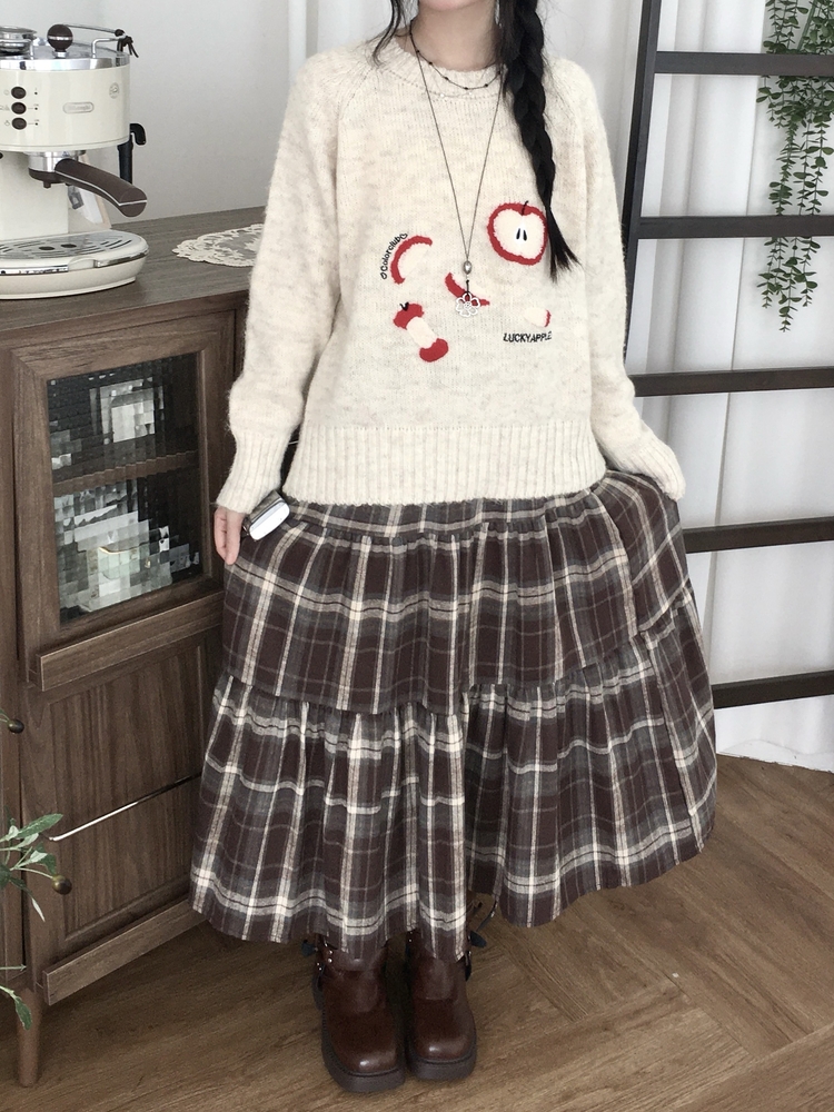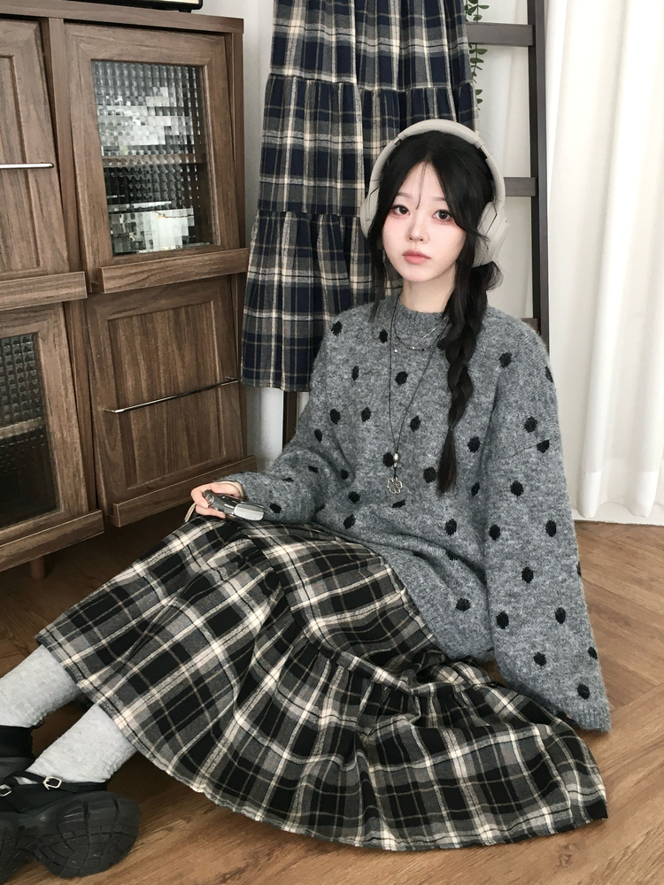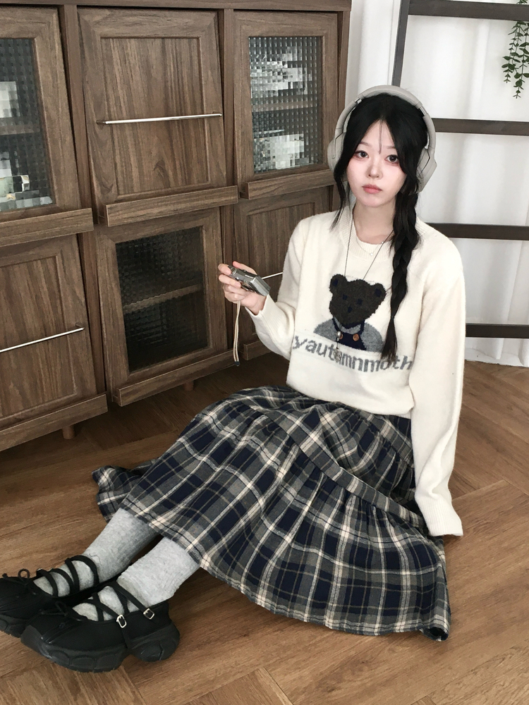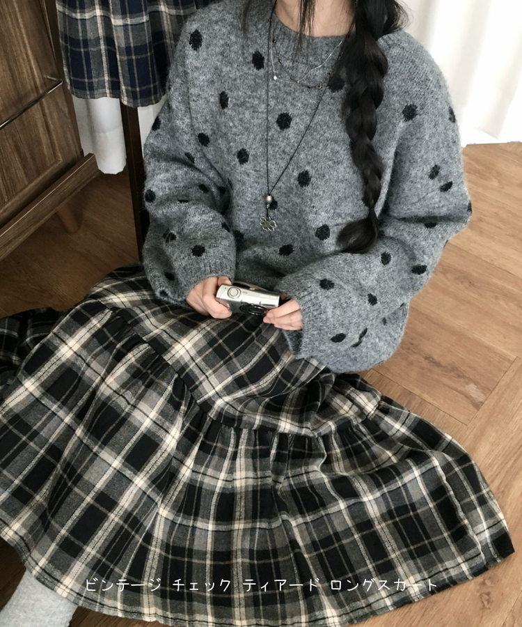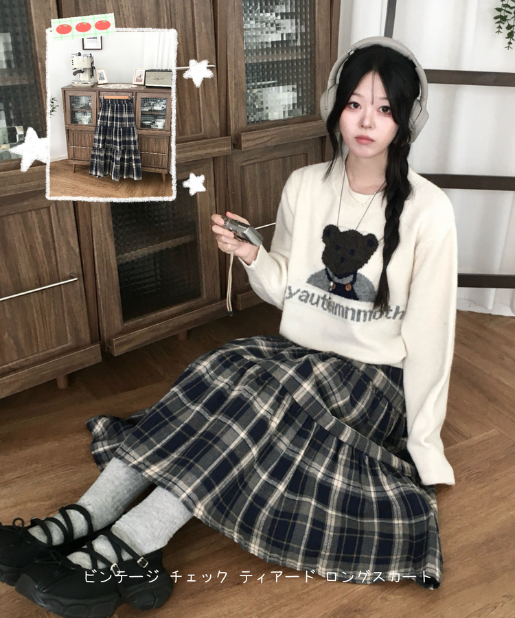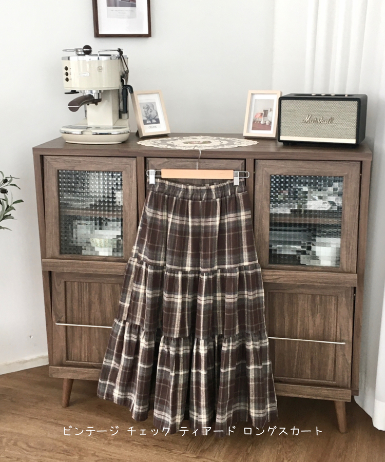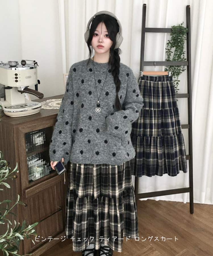 SSK24614 가을겨울 부들 모리걸 체크 캉캉 밴딩 롱스커트