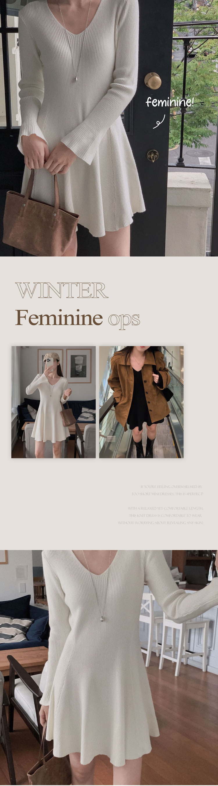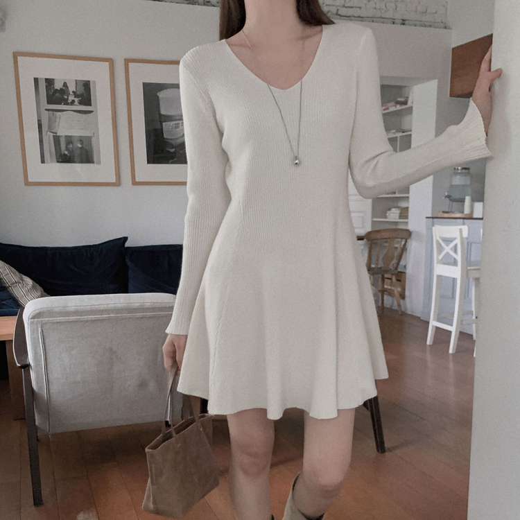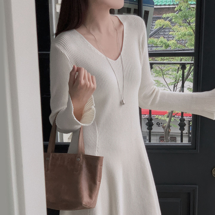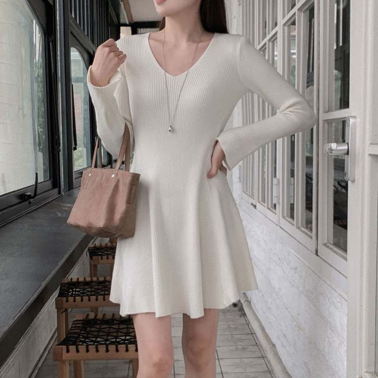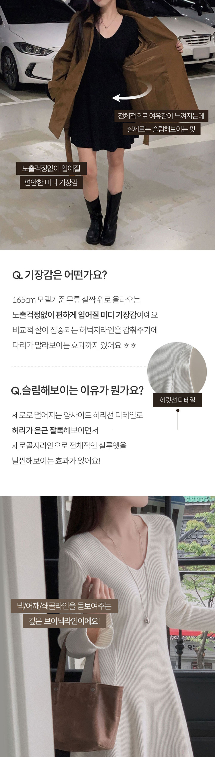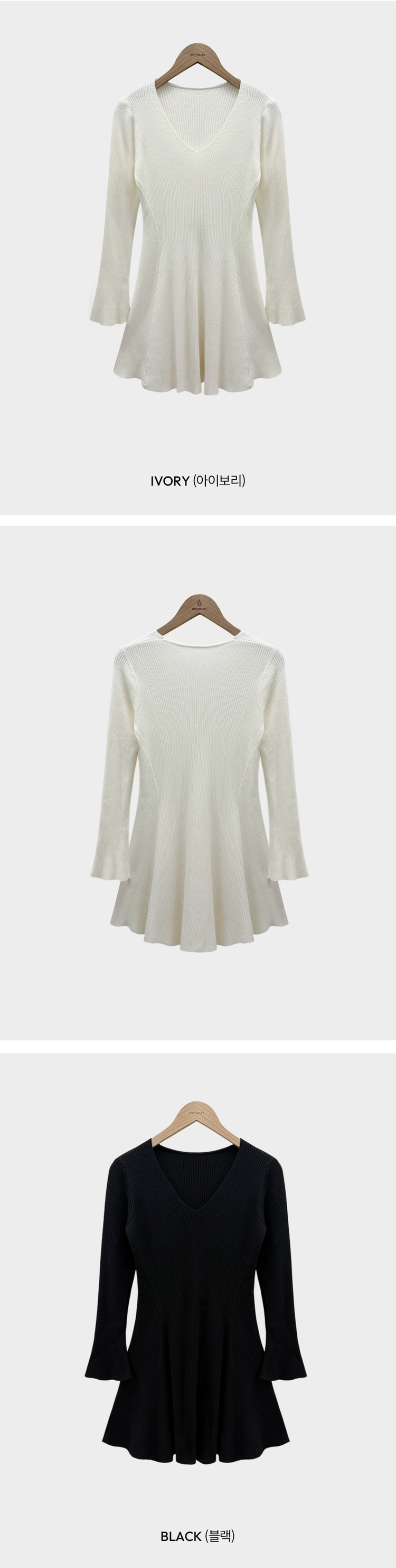 SOP30254 스위트 골지 브이넥 플레어 미디 원피스